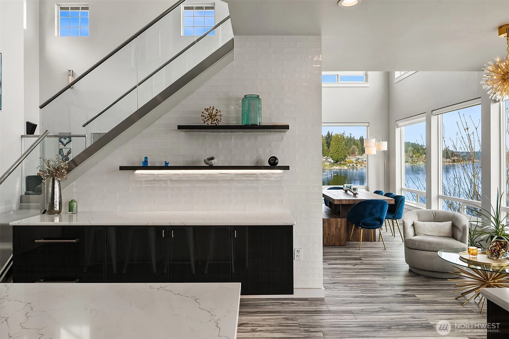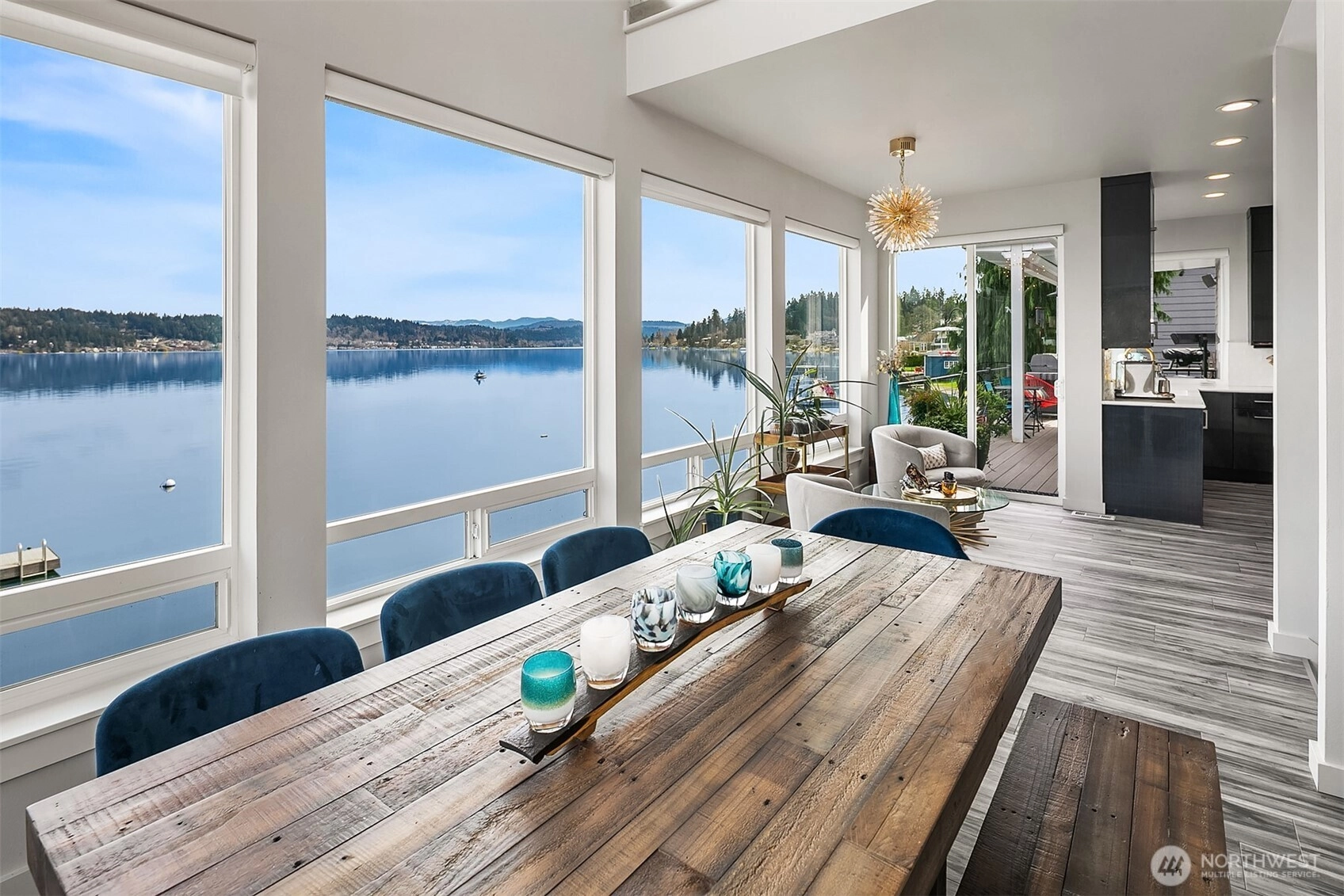 A rare offering on approximately 80 feet of coveted Lake Sammamish shoreline, this fully reimagined waterfront residence pairs refined design with seamless indoor-outdoor living and sweeping lake and mountain views from nearly every principal room. Set at the water’s edge, walls of glass frame the landscape and draw in natural light, while expansive living and entertaining spaces open effortlessly to terraces and the shoreline beyond. At the heart of the home, a chef’s kitchen anchors the main level with generous scale, thoughtful detailing, and effortless functionality. The primary suite is a private retreat with its own view balcony, heated floors in the bath, and an oversized dressing room with dedicated washer and dryer. On the walk-out waterfront level, secondary bedrooms open directly to an expansive deck designed for entertaining, with a spa, custom tiki bar, koi pond, and private dock with an 8,000-pound boat lift. A fully integrated smart-home system controls automated shades, whole-home, outdoor, and dock audio, security, climate, smart entry, and garage access, while generator backup adds year-round comfort and peace of mind. Private, turnkey, and exceptionally rare, this distinguished Lake Sammamish waterfront offering is designed for effortless entertaining, easy boating, and an intimate connection to the water in every season.