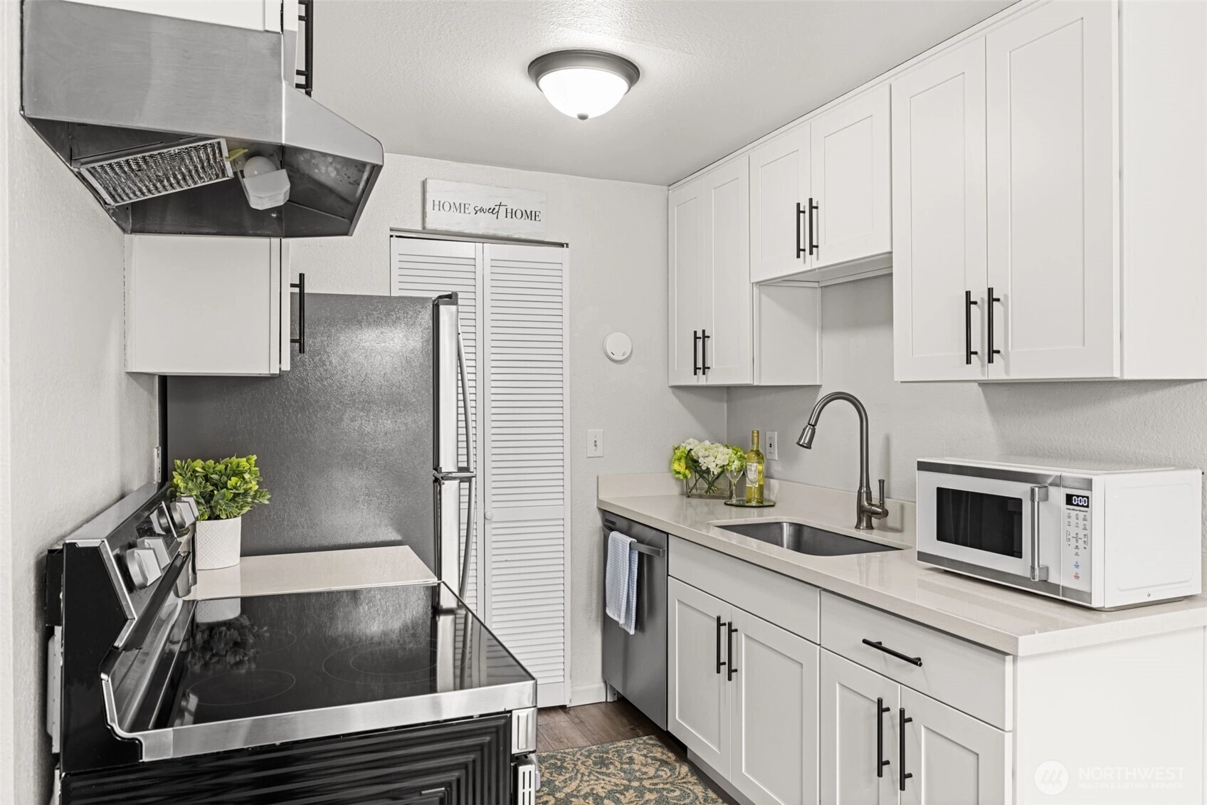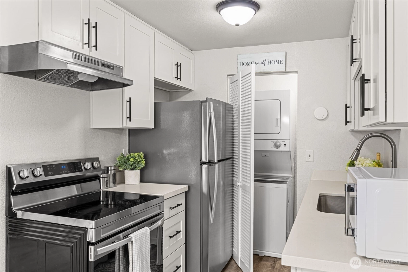 Move-in ready, updated condo at Southcenter View featuring beautiful quartz countertops, white cabinets, stainless steel appliances, and luxury vinyl plank flooring throughout for easy upkeep and a seamless look. Enjoy a spacious bedroom and an updated full bathroom, a dedicated dining area, a cozy wood-burning fireplace in the living room, a balcony perfect for grilling, and in-unit laundry. Comes with reserved parking space #59. Just a short drive to Westfield Shopping Center, Seafood City, Target, Costco, US Chef Store, Lam’s Seafood, Walmart, Uwajimaya, Ikea, and countless restaurants like Din Tai Fung, Duke’s Seafood, Marugame Udon, Moctezuma’s, Mr. Dim Sum, Grazie Ristorante, Shinya Shokudo, Sumi Korean Grill, Pier 88 Boiling Seafood, Bai Tong Thai, and Northwest Landing. Nearby parks and recreation include Angle Lake for canoeing, paddleboarding, and picnics. Plenty to do with bowling at Round 1 and Bowlero, indoor skydiving at iFly, Family Fun Center, Topgolf, golf courses, and more. Conveniently located near I-405, I-5, HWY 99, HWY 518, Seatac Airport and transit options.
