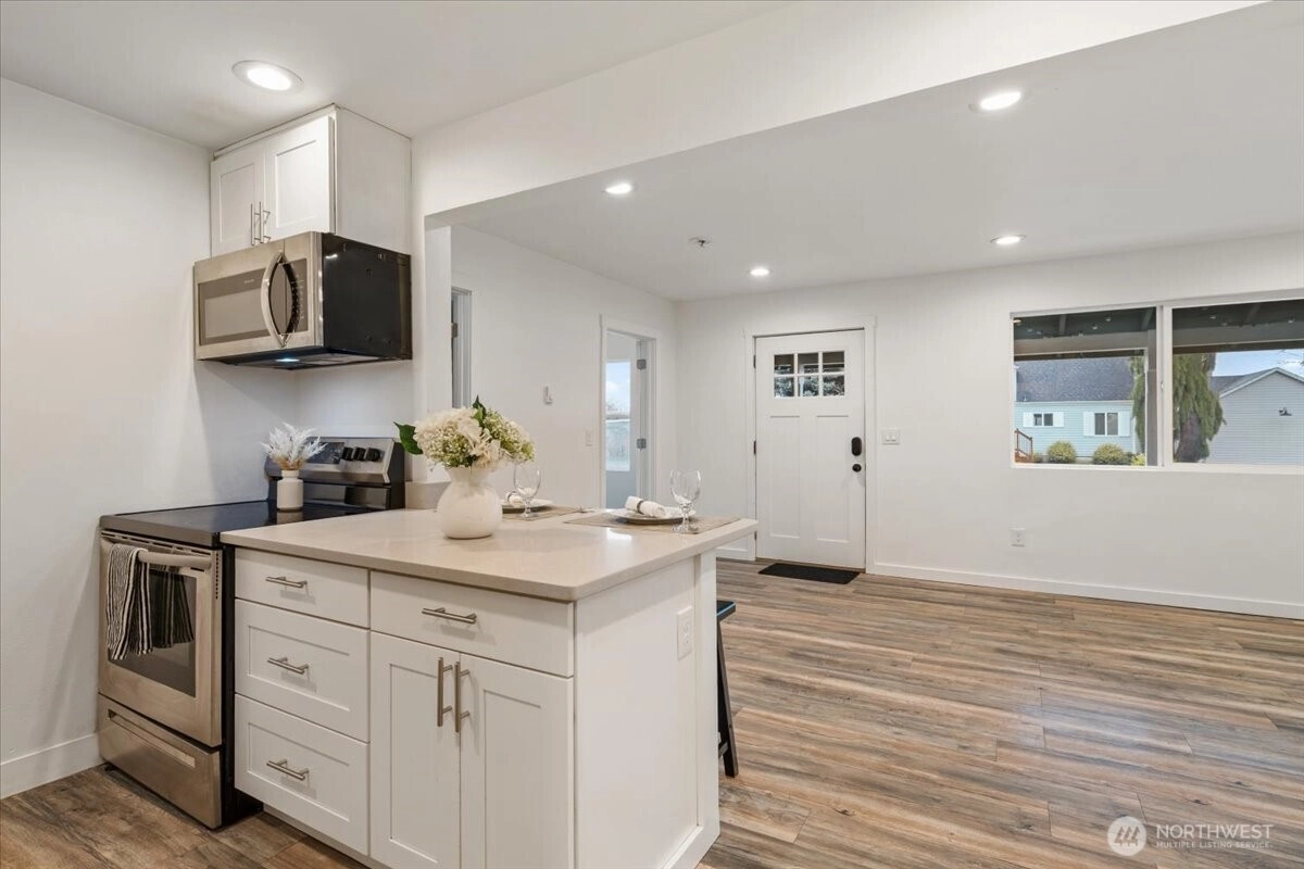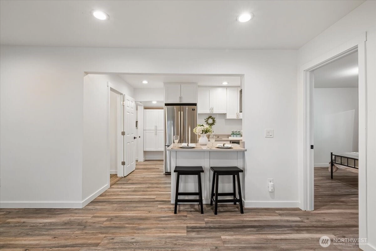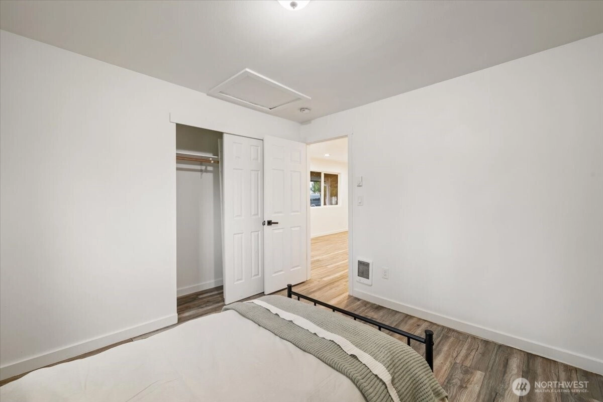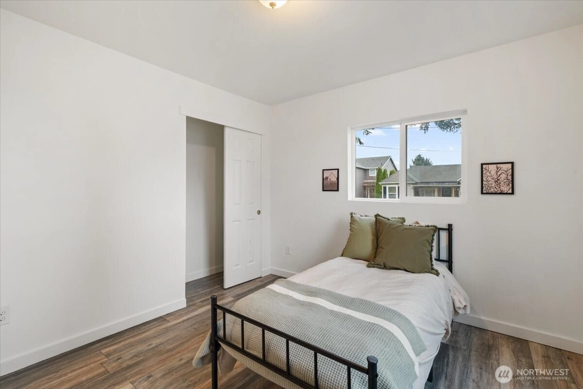 Great opportunity to own a charming 3 bed 1.75 bath rambler in the heart of Buckley! This 1,120 sq ft home has been tastefully updated. Light and bright living area greets you when you walk in. Kitchen includes SS appliances, quartz counters and adorable lighting. Spacious, primary suite with vaulted ceilings and two closets. Updated ensuite bath features beautiful tile and spa like ambiance. Newer laminate flooring in primary, updated wiring and panel, updated plumbing. Fresh interior paint and newer roof. Close to walking, hiking, shopping, schools and parks. Don't miss this wonderful opportunity to call this home!