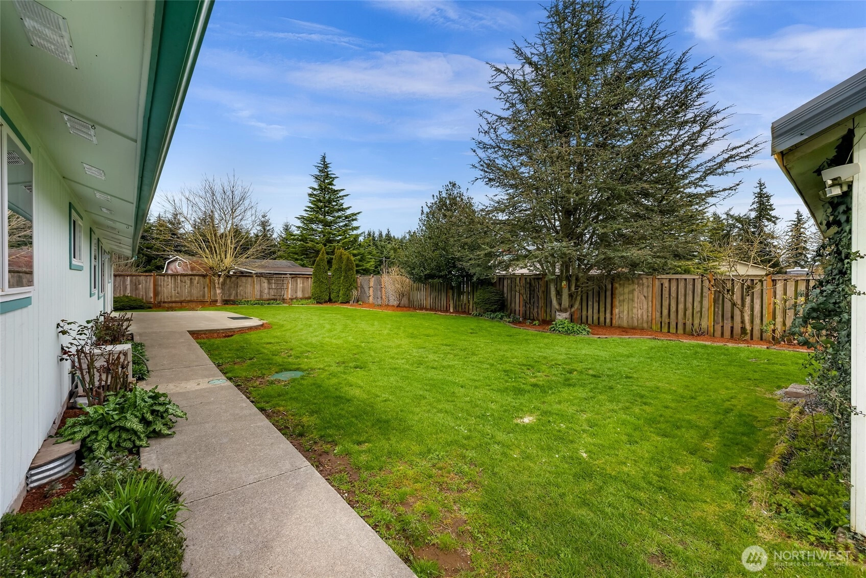 Tucked into a quiet, peaceful neighborhood with easy access to I-5, this charming single-level home offers comfort, convenience, and a beautifully cared-for setting. Fresh new paint and thoughtful updates shine throughout, including a fully remodeled full bathroom that blends style and functionality. Step outside to a large, fully fenced backyard that has been lovingly maintained and manicured, perfect for relaxing evenings, gardening, or gathering with friends. An additional outbuilding provides extra storage or space for hobbies, while the spacious two-car garage adds everyday convenience. With a durable metal tile roof and a layout designed for easy living, this home is as practical as it is inviting. Whether you’re looking to settle in or simplify, this gem of a property offers a warm and welcoming place to call home.