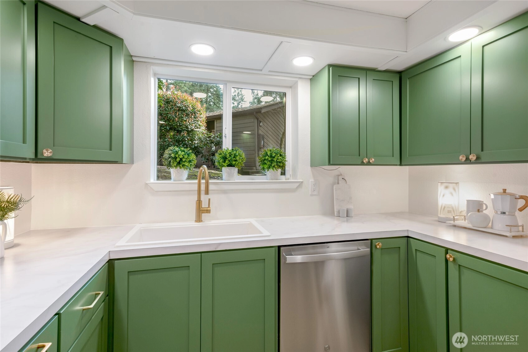 Not Your Average Beige Box! Discover a thoughtfully upgraded home with color, style, and character. Nestled in the heart of Lake Forest Park, this ground-level unit offers just under 1000 sf modern sophistication surrounded by a lush greenery. The heart of the home is the open dining space and living room anchored by a modern tile-surround fireplace. Large windows and a sliding glass door lead to your private covered patio—the perfect spot for morning coffee while enjoying the quiet lifestyle this community provides. Don't miss the renovated kitchen, featuring new stainless steel appliances, upgraded cabinetry, and premium soft close hardware. The primary suite features a striking custom slatted accent wall and a handsomely updated en-suite 3/4 bathroom. Completing the home is a secondary bedroom and a fully renovated hall bathroom. With new windows as of 2025, flooring and lighting throughout, every inch of this home feels fresh and intentional. This peaceful community is just minutes from the Lake Forest Park Town Center, Ballinger Thriftway, movie theater, golf courses, lake access, parks, and more. Extra storage can be found off the outdoor patio and as well as inside the carport in front of your designated spot. Plenty of guest parking, too! It's a commuter's dream with quick access to major routes, only 20 min to Seattle & 20-25 to Redmond, Bellevue, and the Eastside. With no rental cap and in the Shoreline School District, this home is a great starter or investment!