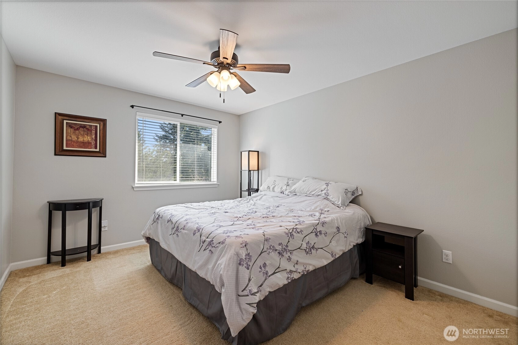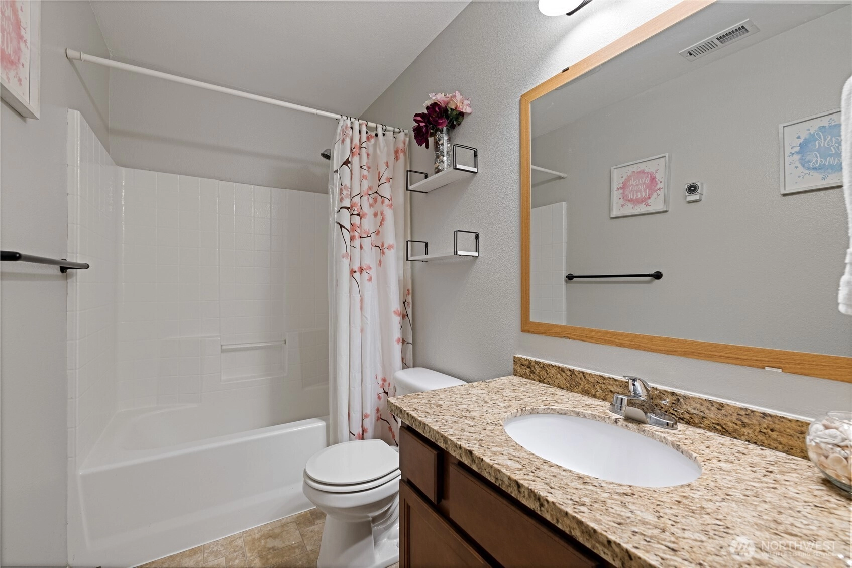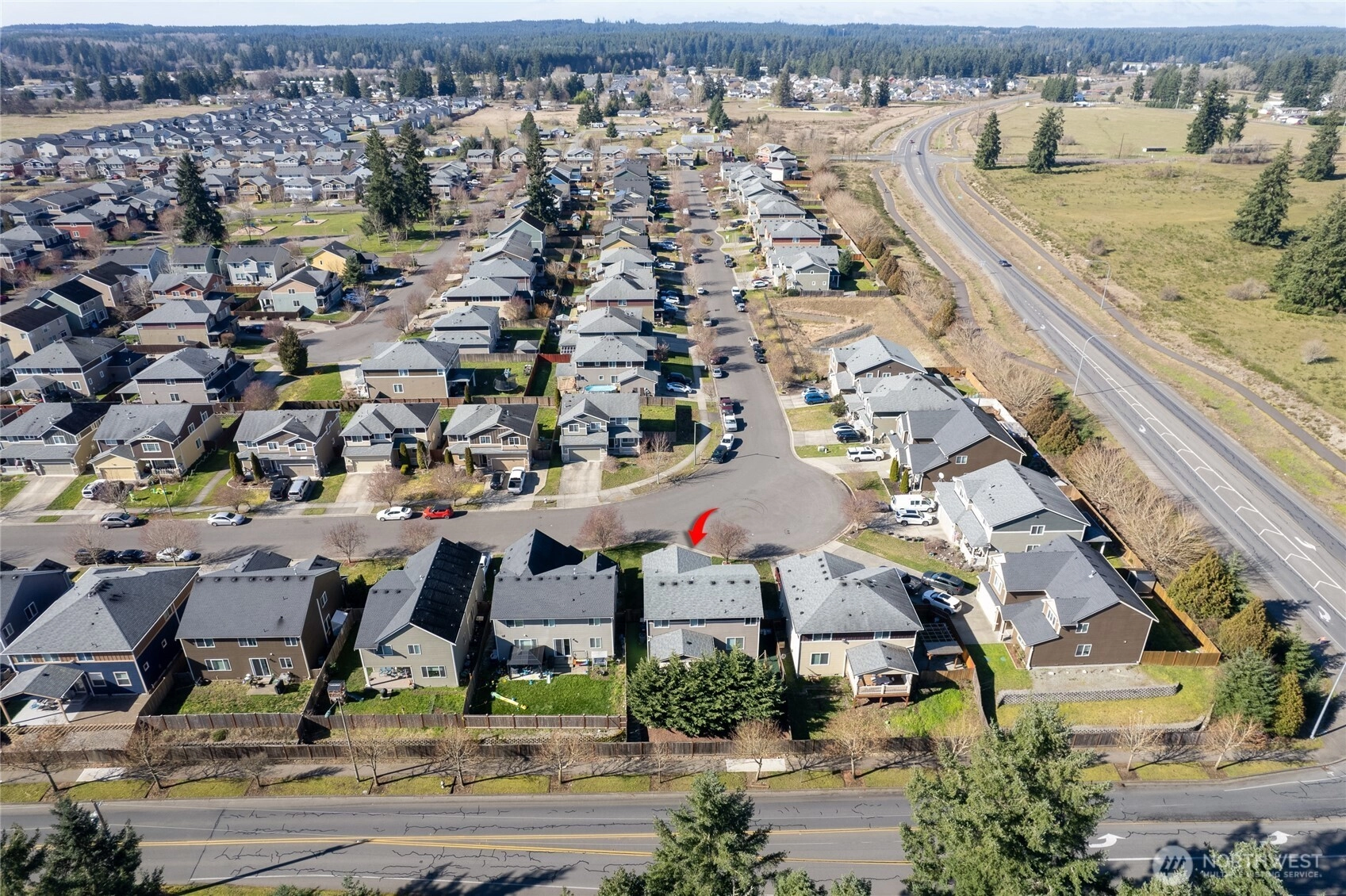 Beautiful, well-laid-out home featuring 3 bedrooms, a bonus room with French doors downstairs, plus a large loft with closet upstairs—both perfect for a bonus room, office, playroom, or potential 4th or 5th bedroom. The open floor plan offers comfortable living with a cozy gas fireplace in the living room and great flow for everyday living and entertaining. The primary suite includes a spacious 5-piece bath with water closet and a large walk-in closet. Stay comfortable year-round with A/C. Step outside to a private backyard sanctuary with mature privacy trees and a fully fenced yard. The covered patio allows you to enjoy being outdoors in any season, making it ideal for relaxing or entertaining. Cherry Meadows is a sought-after neighborhood and for good reason. The large community park offers a basketball court, plenty of room to play catch in the grass, and 2 playsets. The community-led events that bring everyone together, the proximity to town, and the quick commute to JBLM, Lacey, Olympia and Tacoma are huge selling points as well! Take a private tour or check out the virtual tour to see if this is the perfect home for you!