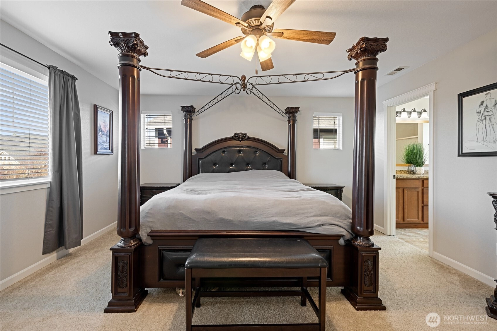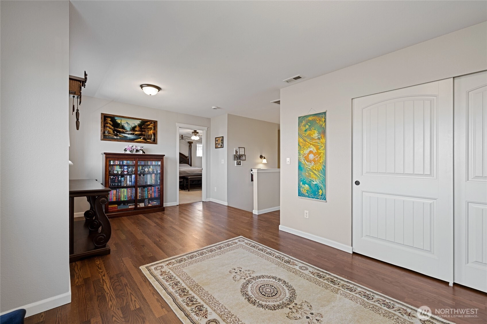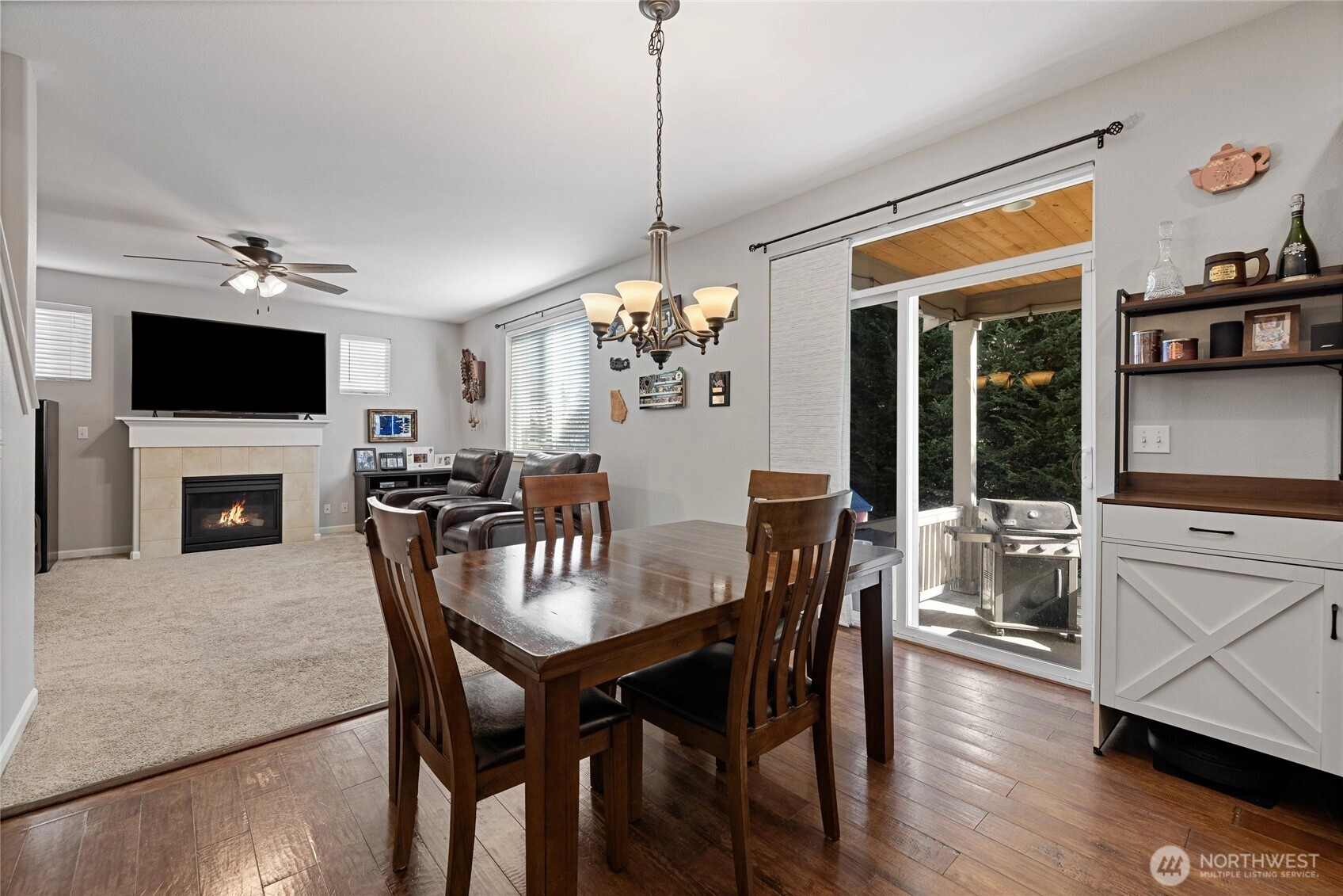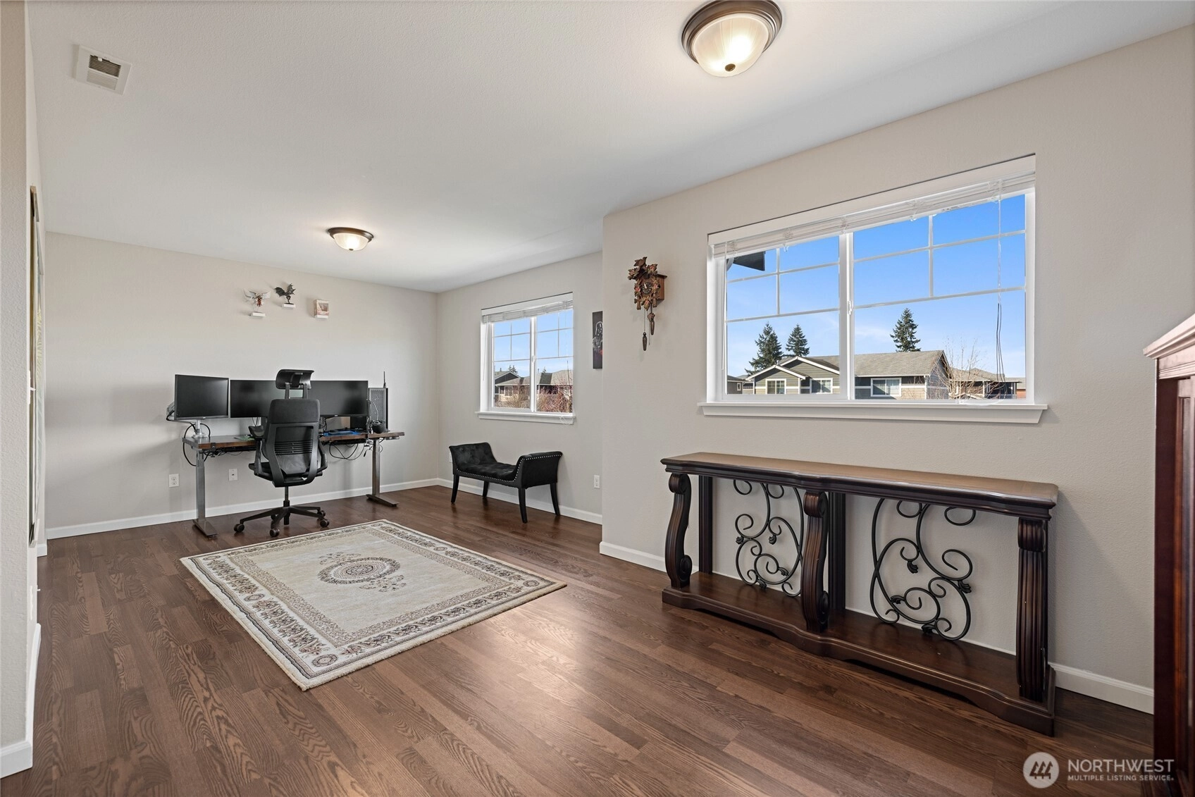 Beautiful, well-laid-out home featuring 3 bedrooms, a bonus room with French doors downstairs, plus a large loft with closet upstairs—both perfect for a bonus room, office, playroom, or potential 4th or 5th bedroom. The open floor plan offers comfortable living with a cozy gas fireplace in the living room and great flow for everyday living and entertaining. The primary suite includes a spacious 5-piece bath with water closet and a large walk-in closet. Stay comfortable year-round with A/C. Step outside to a private backyard sanctuary with mature privacy trees and a fully fenced yard. The covered patio allows you to enjoy being outdoors in any season, making it ideal for relaxing or entertaining. Cherry Meadows is a sought-after neighborhood and for good reason. The large community park offers a basketball court, plenty of room to play catch in the grass, and 2 playsets. The community-led events that bring everyone together, the proximity to town, and the quick commute to JBLM, Lacey, Olympia and Tacoma are huge selling points as well! Take a private tour or check out the virtual tour to see if this is the perfect home for you!