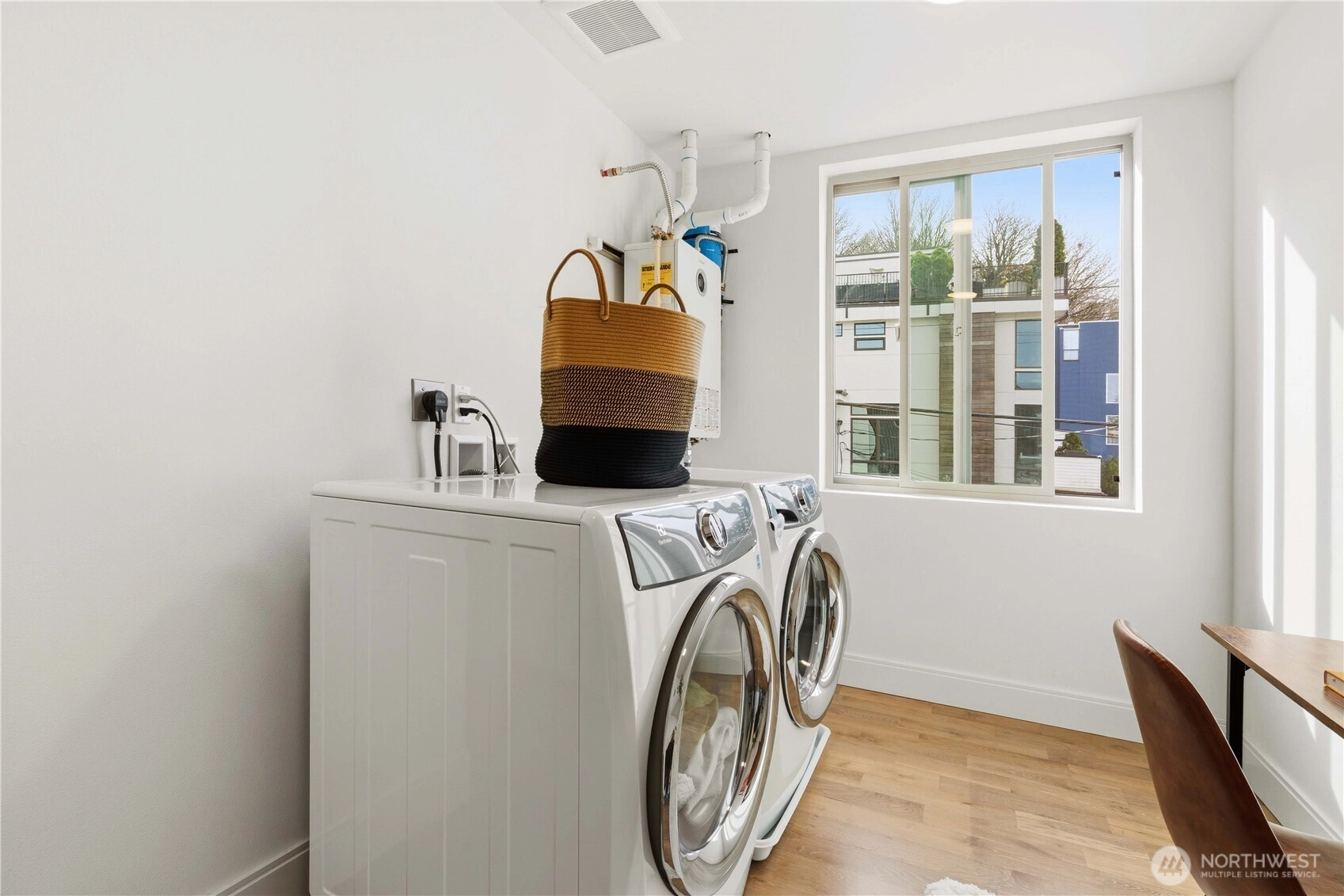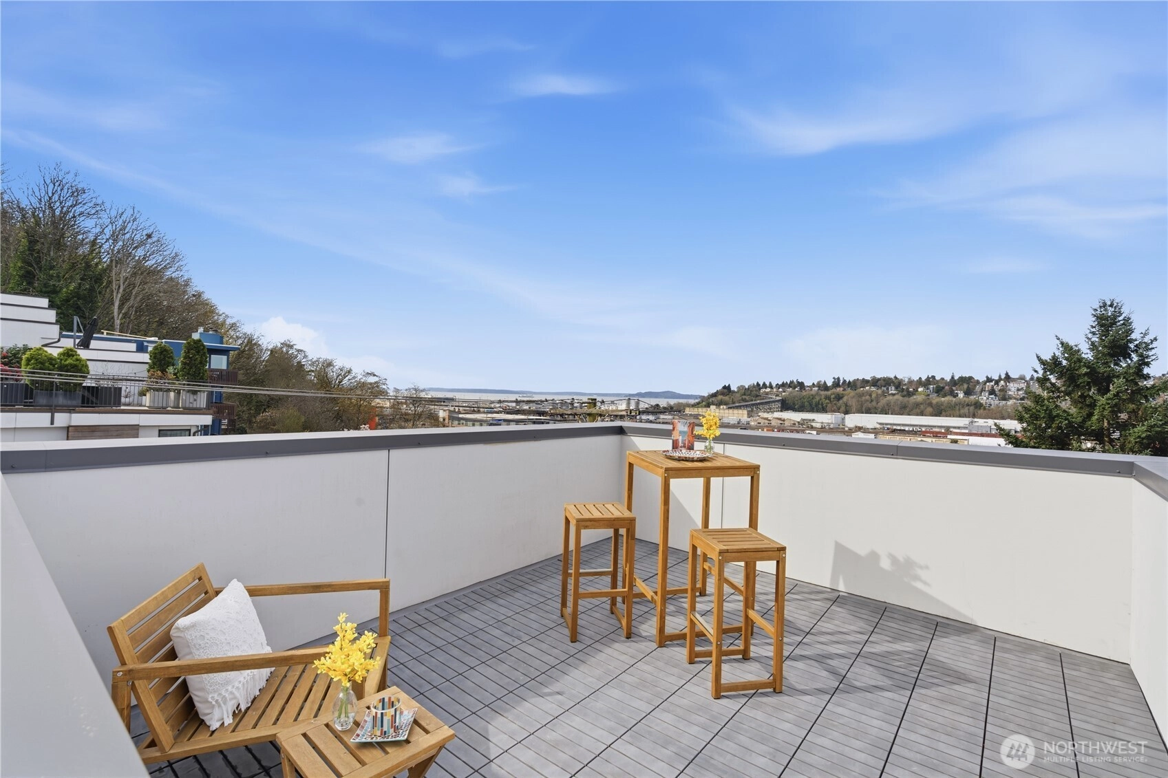 No HOA Townhome! Modern 2019-built corner-lot townhome in West Queen Anne with abundant southeast-facing natural light, a rare oversized flex/laundry space, private side yard, and rooftop deck with Elliott Bay views. This functional 2-bedroom, 2-bath layout offers more versatility than a typical townhome, including a large bonus area ideal for a home office, gym, storage, or other flexible use. Each bedroom enjoys its own private bath, and the primary suite features a generous walk-in closet and water views. All this in a prime West Queen Anne location with quick access to Downtown Seattle, Kerry Park, Queen Anne Avenue shops, dining, Whole Foods, and daily conveniences.
