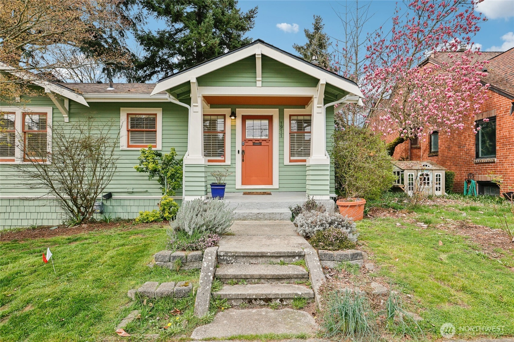 Perched along a tranquil green belt, this Craftsman bungalow blends timeless character with thoughtful modern updates. Enjoy sweeping views of the Olympic Mountains and glimpses of Seattle’s stadiums, all while being just minutes from the vibrant dining scene of Beacon Hill, plus convenient light rail and bus connections with quick access to I-5 and I-90. Inside, original charm shines through coved ceilings, picture rail molding, rich hardwood floors, and classic windows, complemented by a cozy gas fireplace. The fully updated kitchen features new countertops, custom hardwood cabinetry, and upgraded appliances. The remodeled daylight basement offers a private retreat with a spacious suite, walk-in closet, and a beautifully renovated bathroom with a walk-in shower. Recent 2025 upgrades include a new composite roof with warranty, new gutters, fresh exterior paint, and reconstructed entry pillars. Modern systems such as a tankless gas water heater, forced-air heat pump with AC, updated electrical, new sewer connection, and reinforced foundation piles provide peace of mind. Outdoors, a paved patio invites relaxation with serene green belt views, plus a versatile shed or workshop adds extra flexibility. Welcome home to your private city escape!