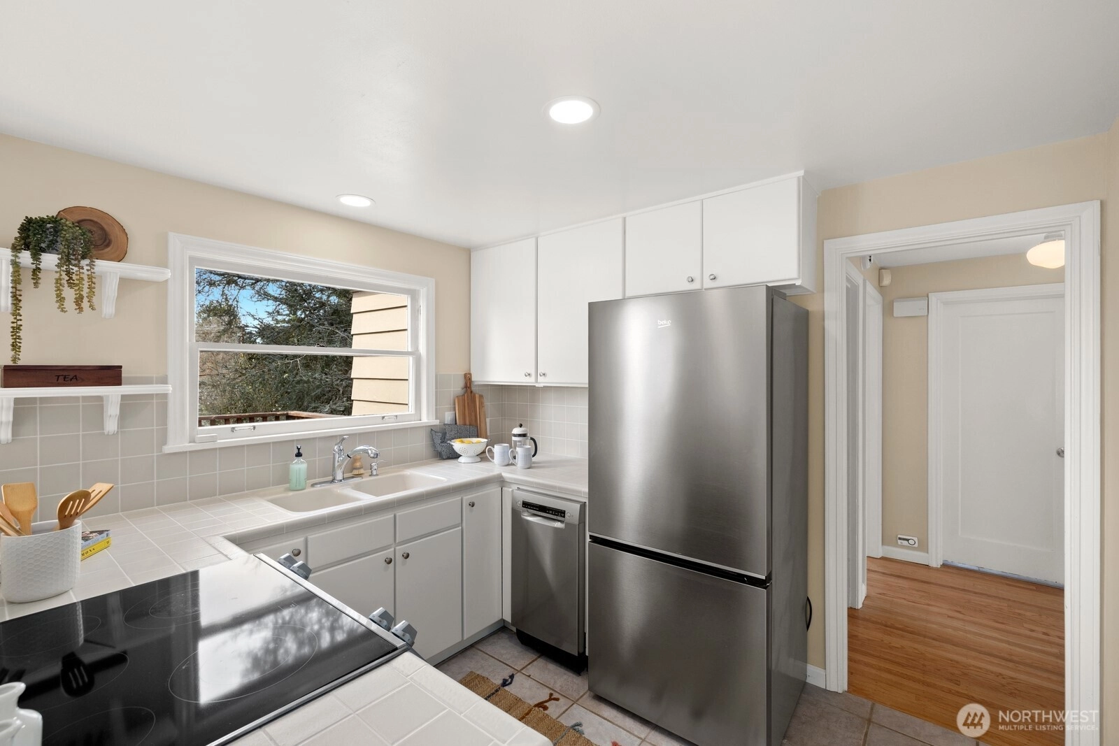 Welcome to Beautiful Sought-after Hawthorne Hills. 1942 Cape Cod home on a tree-lined street is centrally located to Restaurants, Schools, PCC, Met Market, parks, the library, and 5 min to BG Trail. Open circular living provides function with an abundance of natural light throughout, 2 beds w/spacious closets & full bath. Refinished hardwoods (2026), cozy wood fireplace, dining area with French doors to a deck that overlooks the yard. Dining opens to the bright kitchen, new refrigerator & dishwasher. Lower-level includes 1 large bed or bonus room, 1 bath with shower + a space for an at-home office or possibly an ADU with outdoor patio + oversized laundry room with built-ins + additional storage space. Low-maintenance landscaping with a charming tree arch at the entrance. Garage with additional storage/shop space. New roof and exterior paint in 2022. Updated chimney and HVAC/Heat Pump/AC furnace in 2024, updated electrical throughout + panel 2026. Home is Move-in Ready!