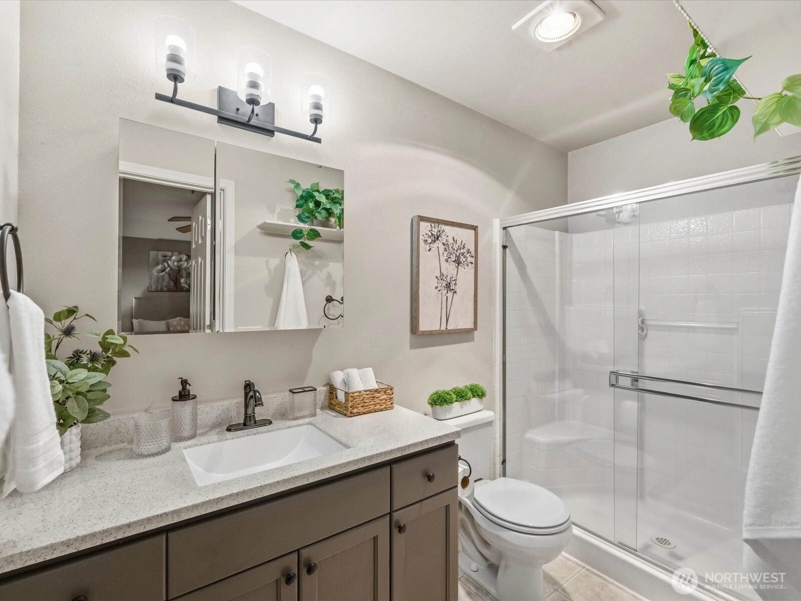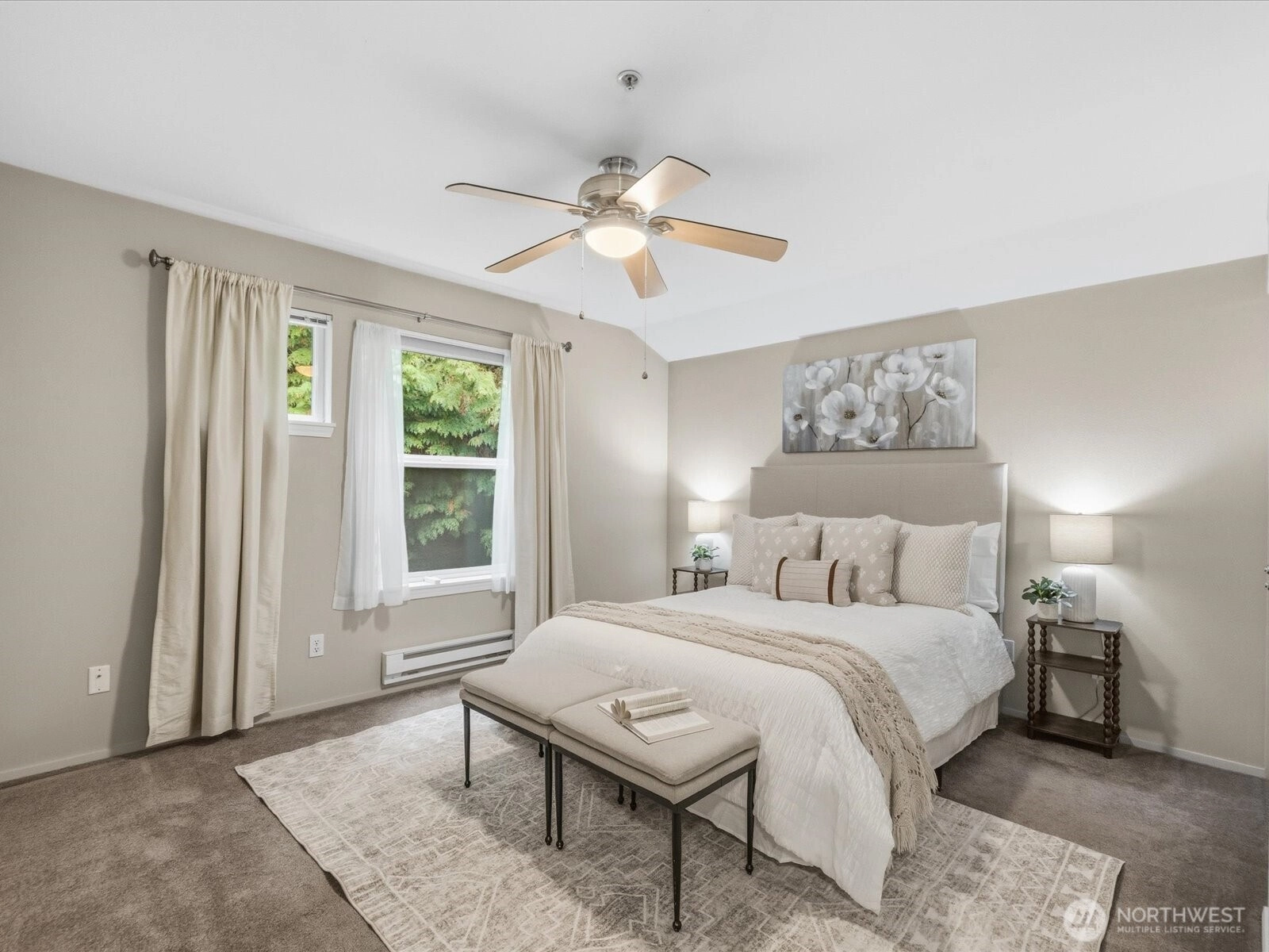 Welcome home to a thoughtfully designed, meticulously maintained move-in ready retreat near Silver Lake. Tucked at the back of the community for added privacy, this 3 bedroom, 2.5 bath townhouse-style condo offers a perfect blend of comfort and functionality. Inside, the open concept kitchen flows seamlessly into the living area, featuring updated flooring and a cozy gas fireplace. The spacious layout provides flexibility for everyday living, working from home, or hosting guests, with well-sized bedrooms and natural light throughout. Step outside to your private patio overlooking a peaceful greenbelt, an ideal spot to unwind or enjoy your morning coffee. Plus, enjoy the added bonus of being just a short walk to Silver Lake, making it easy to take advantage of nearby trails, water views, and outdoor recreation. The attached garage includes a dedicated storage room, offering valuable extra space. Located in the desirable Village at Casper’s Mill, convenient community amenities include: clubhouse, meeting room, BBQ area, sports court, fitness center, and car wash station. Prime location just minutes from I-5, Highway 2, shopping, dining, services, and schools.