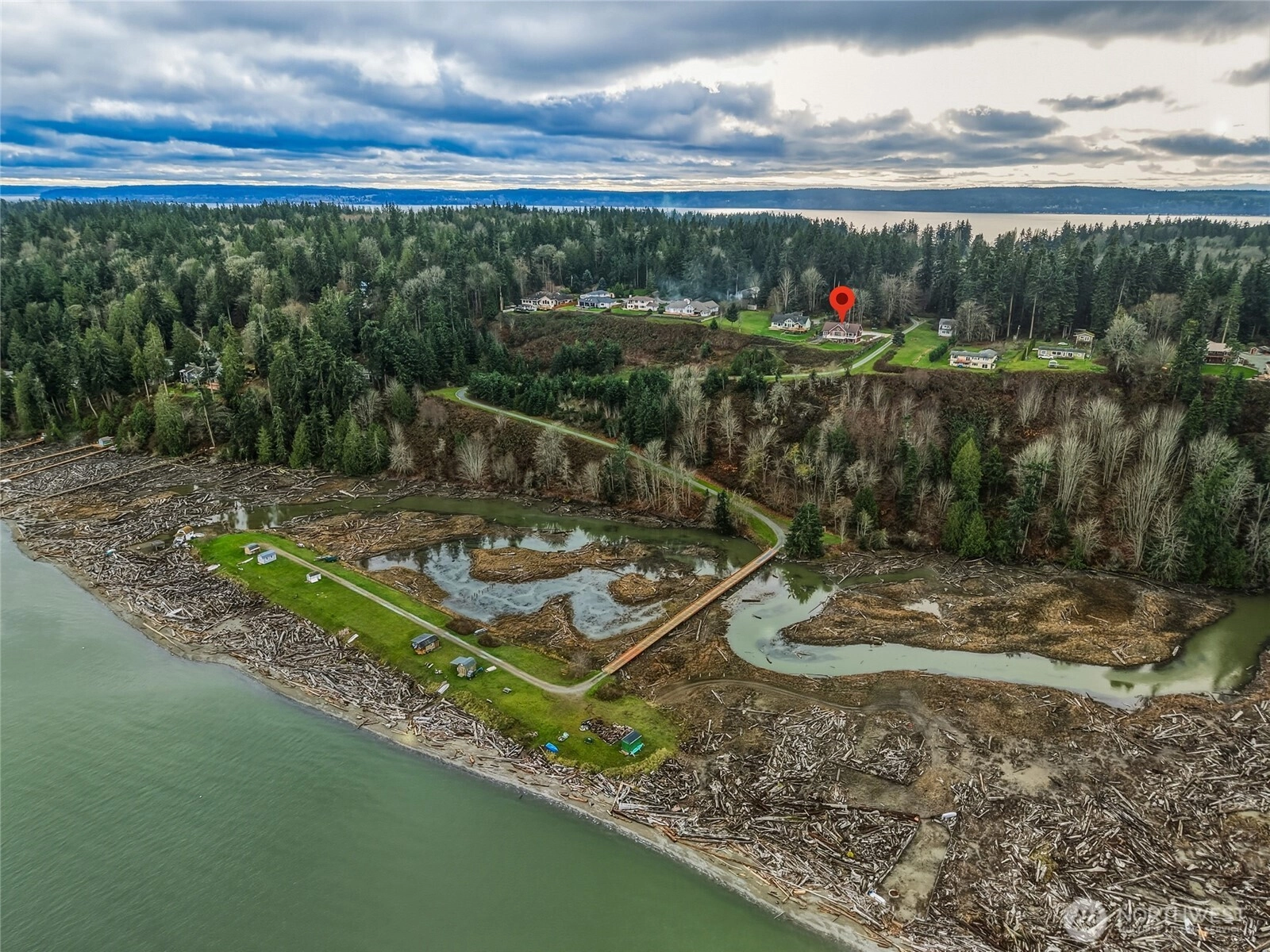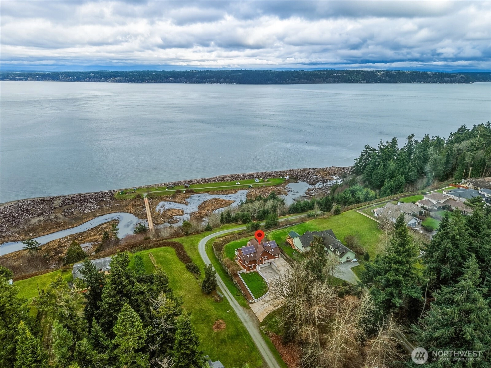 Waterfront perfection on 2.7 acres—an extraordinary estate with private deeded tidelands, direct beach access & sweeping, unobstructed views of Port Susan Bay, the Cascades & Mt. Baker. Custom-built, Baltic Birch hardwood floors flow through an open, light-filled main floor. Gourmet kitchen w/ custom cabinetry, big island & new appliances seamlessly connect to living spaces framing panoramic Sound & mtn. vistas. Main-floor view primary suite w/ 5 pc. bath, fireplace & walk-in closet. Three additional bedrooms, bonus room & office. Fully remodeled lower level w/ separate entrance, plumbed for future MIL suite. Spacious finished garage. One of a kind home where privacy, panoramic views, and waterfront living converge! Incredible value for this package... Welcome Home!