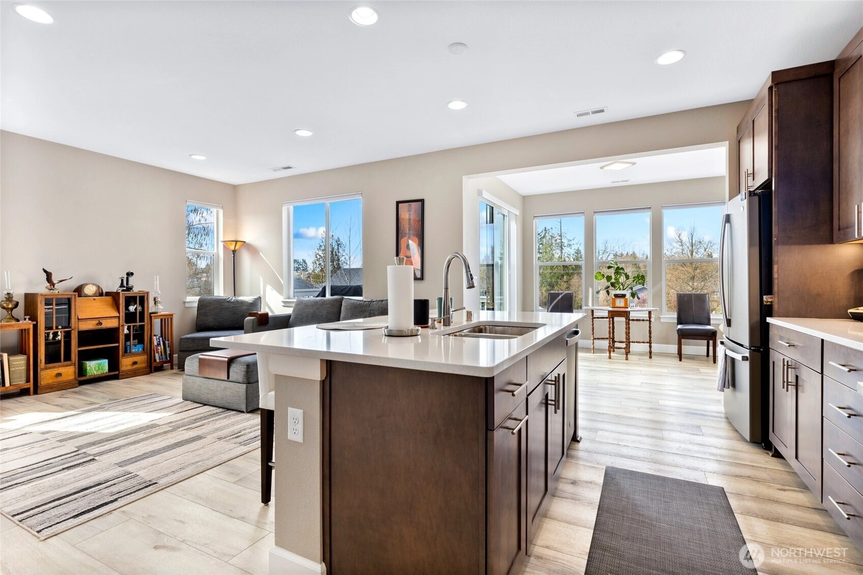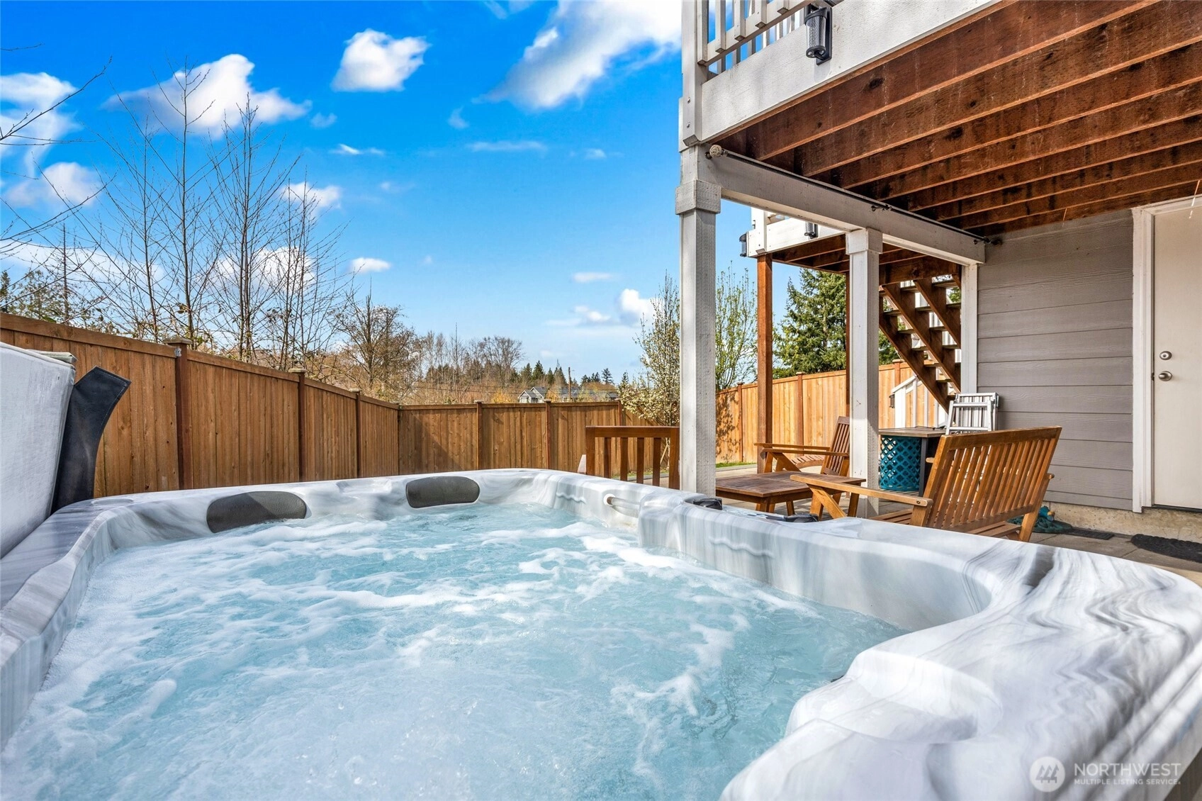 |PEACEFUL LIVING & EVERYDAY ACCESSIBILITY| This is the one that feels like home the moment you arrive! Tucked against a quiet greenbelt in the Fairview Terrace neighborhood, you'll love the unique privacy it offers on one of the larger lots in the subdivision. Imagine evenings on the deck or patio watching the poignant sunsets, followed by a relaxing soak in the hot tub under the stars. All of this, paired with an ideal location for an easy commute, makes daily life both effortless and inspiring! A 10x10 finished room under the home has so many possibilities - fitness room, office, art studio, sauna, storage? This finished space leads to a clean & easily accessible tall crawlspace. You will love this Lake Stevens location, easy flow layout and its 3 parking spots in the driveway. Simple, comfortable and convenient living with tasteful touches and finish work including quartz countertops, a whole home ventilation system, battery back up on the fireplace, owned solar paneling and so much more!