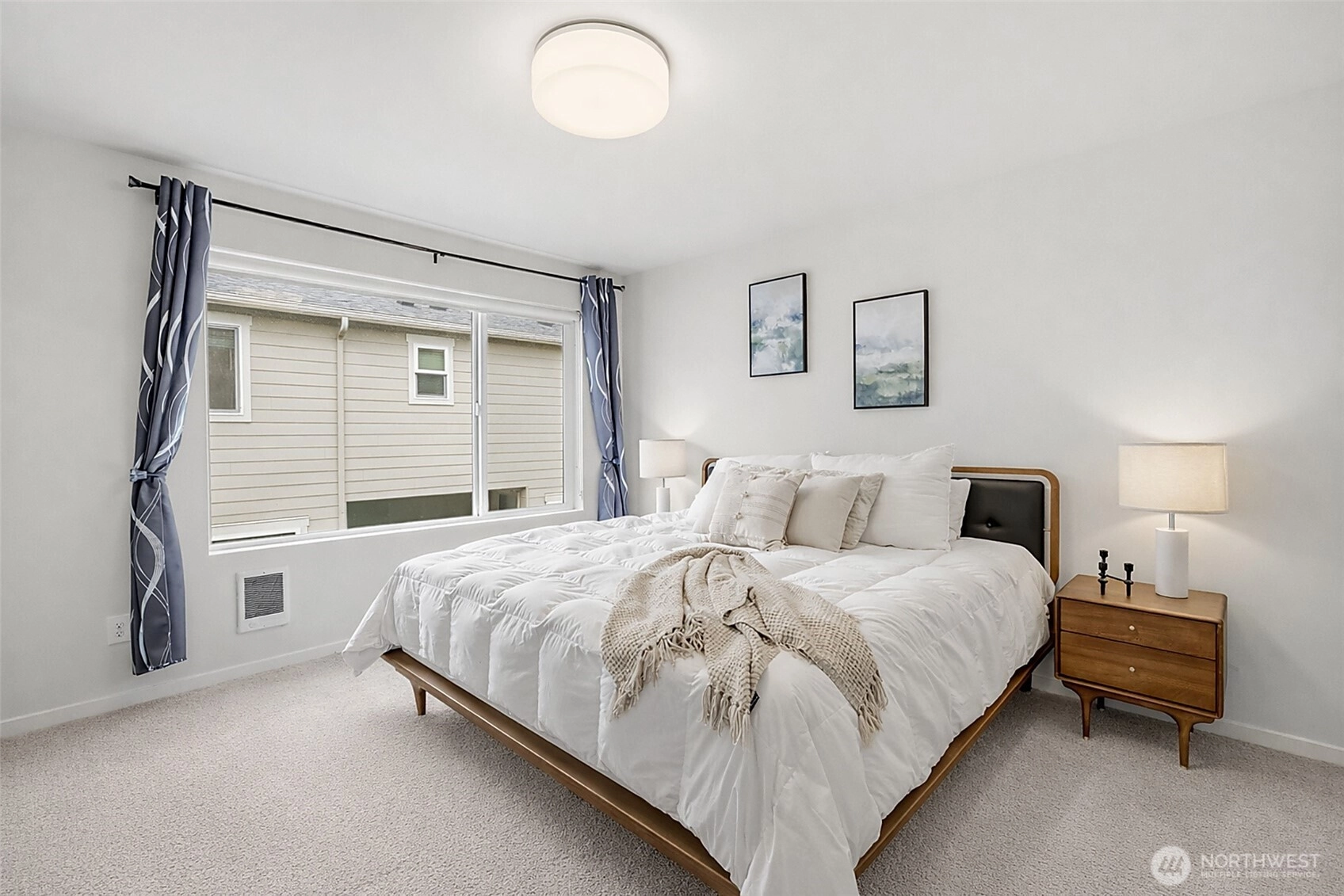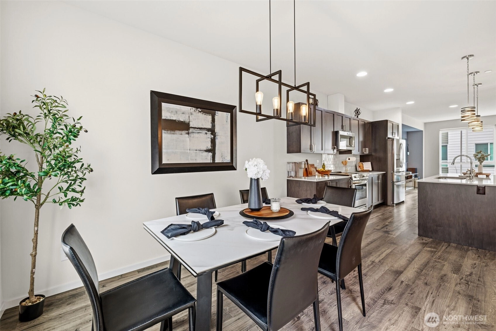 Better than new 4-bedroom townhome in Lynnwood’s highly desirable Westbrook community! Tucked away on a quiet dead-end street near Lake Stickney, this light-filled modern home offers stylish, low-maintenance living with a functional open-concept design, tall ceilings, and a spacious feel throughout. The kitchen is ideal for entertaining, featuring quartz countertops, stainless steel appliances, and an oversized island. Enjoy refined finishes, plank flooring, and a covered deck just off the dining area. The primary suite includes an en-suite bath, while the lower level offers a versatile fourth bedroom or office with access to the fully fenced backyard. A/C in the living room and primary bedroom provides added comfort. Complete with a large tandem 2-car garage with EV charger, low HOA dues, and a convenient location near Alderwood Mall, Costco, Mill Creek Town Center, I-5, 405, park & ride, and light rail.