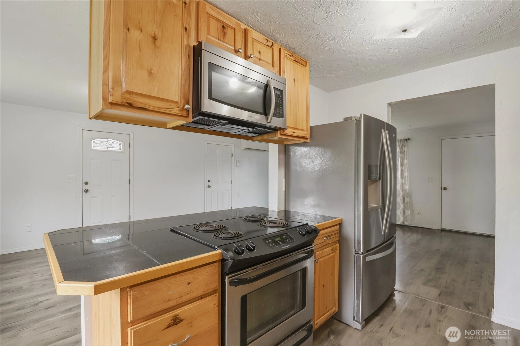 Meticulously maintained 3-bedroom, 1-bath home ideally located within walking distance to historic downtown Tenino, local schools, and the scenic Chehalis Western Trail. Inside, you’ll find durable hard-surface flooring throughout the dining area, kitchen, and primary bedroom. The updated kitchen features hickory cabinetry, granite tile countertops, and stainless steel appliances. Spacious yard offering plenty of opportunity to create your ideal outdoor retreat.
