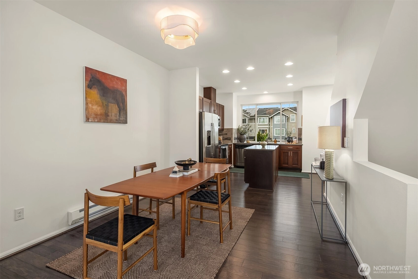 Beautiful West Seattle townhome in the sought-after High Point neighborhood, one of Seattle’s most innovative green communities with parks, trails, and open space throughout. This thoughtfully designed home features an open concept kitchen, dining, and living space with quartz countertops, stainless appliances, and large windows bringing in abundant natural light. The layout includes two spacious primary suites upstairs, each with its own ensuite bath and large closets. The versatile entry-level flex space is ideal for a home office, guest room, workout space, or studio. Additional highlights include a private one-car garage with EV charger, generous storage, and new hardwood stairs and flooring updates. Enjoy a quiet location within the community while remaining minutes from Alaska Junction, Morgan Junction, Westwood Village, restaurants, grocery stores, and the West Seattle Farmers Market. High Point residents love the 20+ acres of parks, playgrounds, trails, and green space, along with nearby High Point Community Center, library, Walt Hundley Park, pickleball courts, and Longfellow Creek greenbelt. HOA covers exterior maintenance, landscaping, roof and gutter care, plus annual window and dryer vent cleaning, making ownership simple and low maintenance.