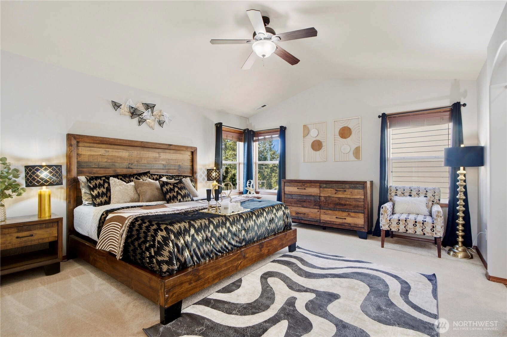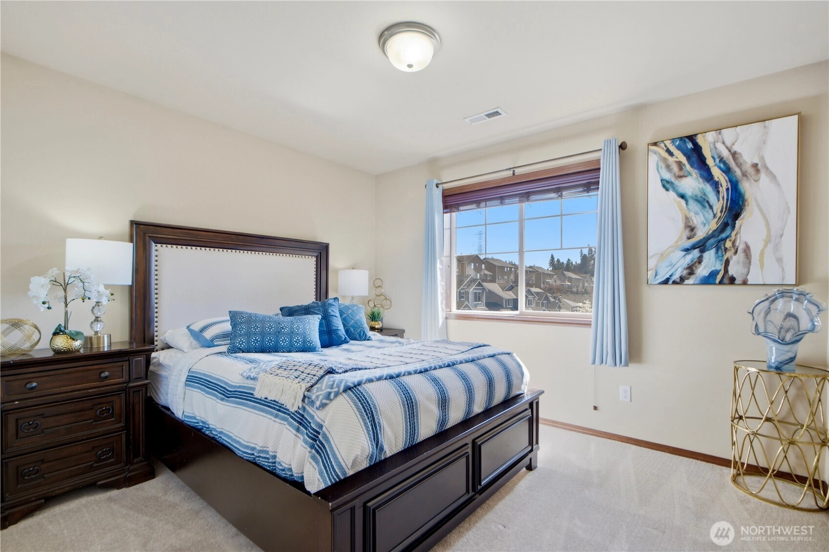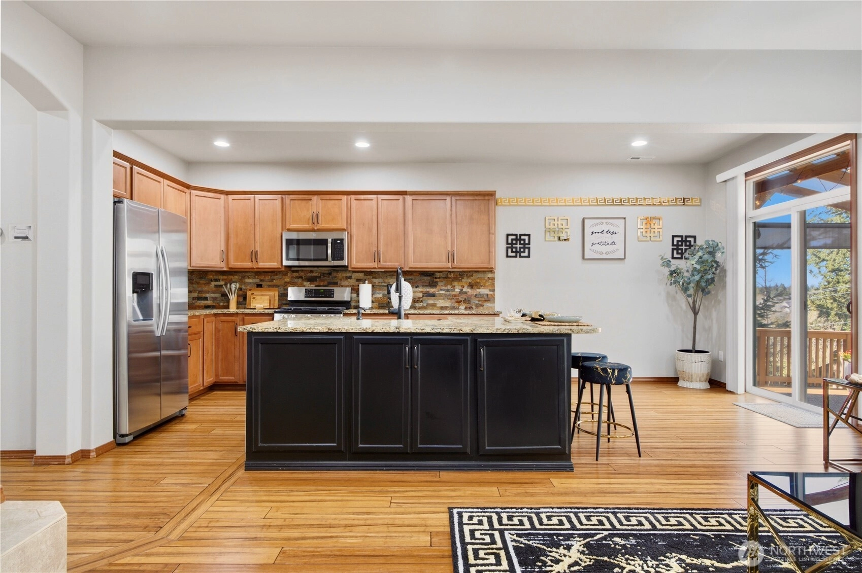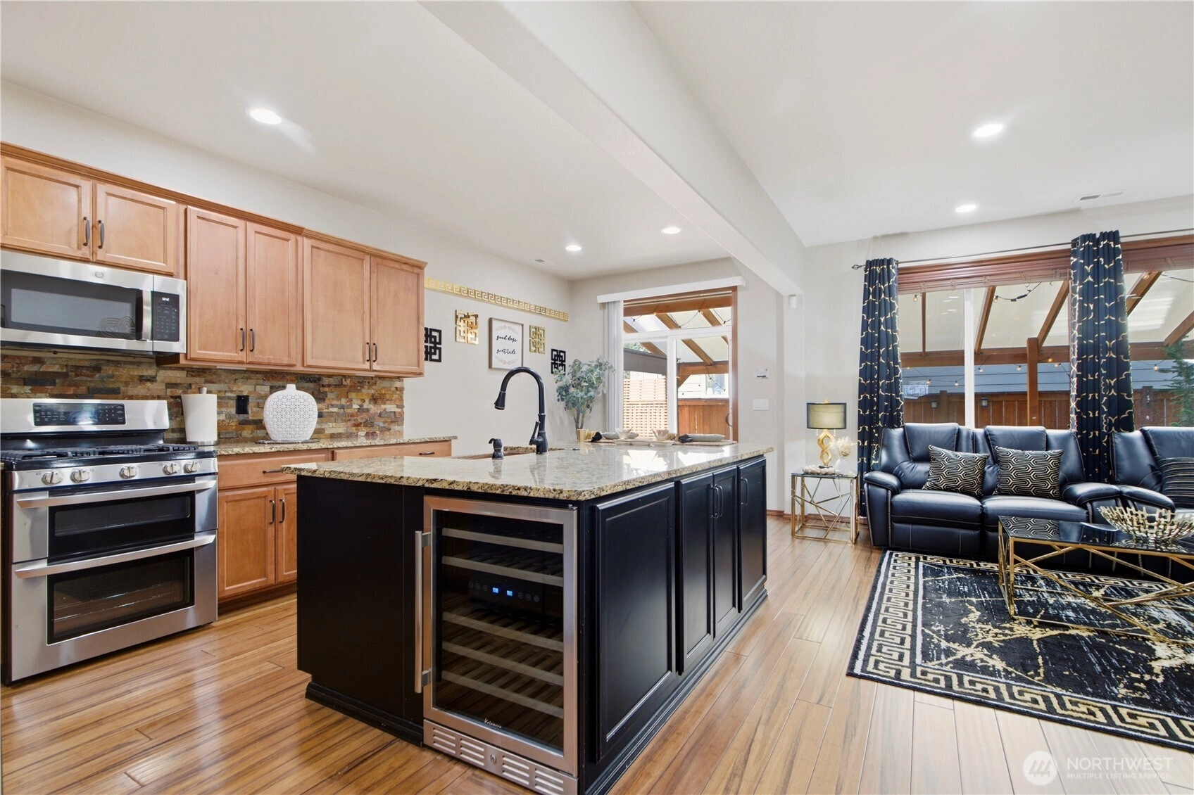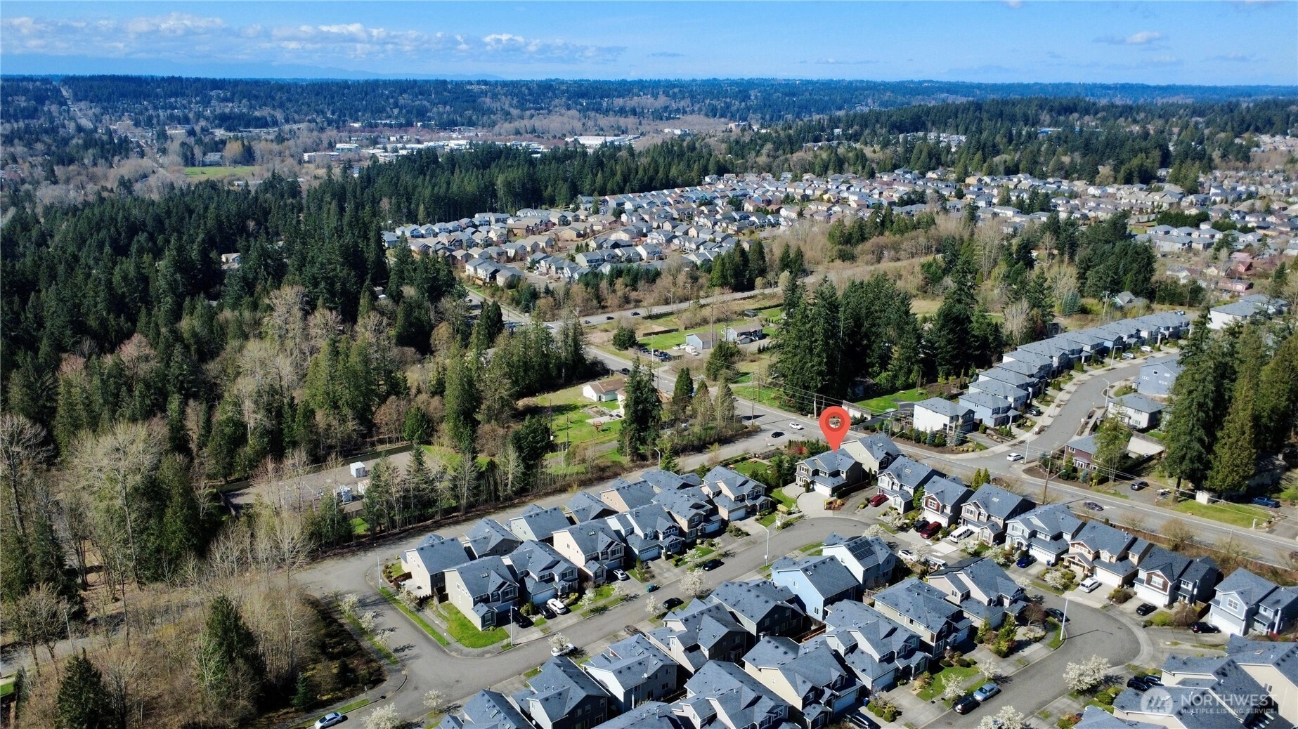 Warm & inviting 4 bedroom + loft + den home in a prime Bothell community. Built in 2011, this well-designed 2,247 square feet home offers comfort, functionality, and excellent indoor-outdoor living. The chef’s kitchen features a center island with breakfast bar, granite countertops, copper farmhouse sink, wine fridge, and ample storage. Open-concept living area with gas fireplace and beautiful wood floors creates a bright, welcoming space.Main level includes a versatile den/office that can function as a 4th bedroom. Upstairs offers a spacious primary suite with vaulted ceilings, 5-piece bath, walk-in closet, along with two additional bedrooms, a full bath, and a large loft-style bonus room.Enjoy multiple outdoor living areas including a covered patio, extended deck with sunset views, and a generous front patio with fire pit—ideal for entertaining. Fully fenced yard with low-maintenance artificial turf. Additional features include central A/C, formal dining area, powder room on main level, 2-car garage, and deep driveway.Conveniently located near Miner's Corner Park, community playground, shopping, dining, and easy access to I-405 and I-5. Located in the desirable Northshore School District.
