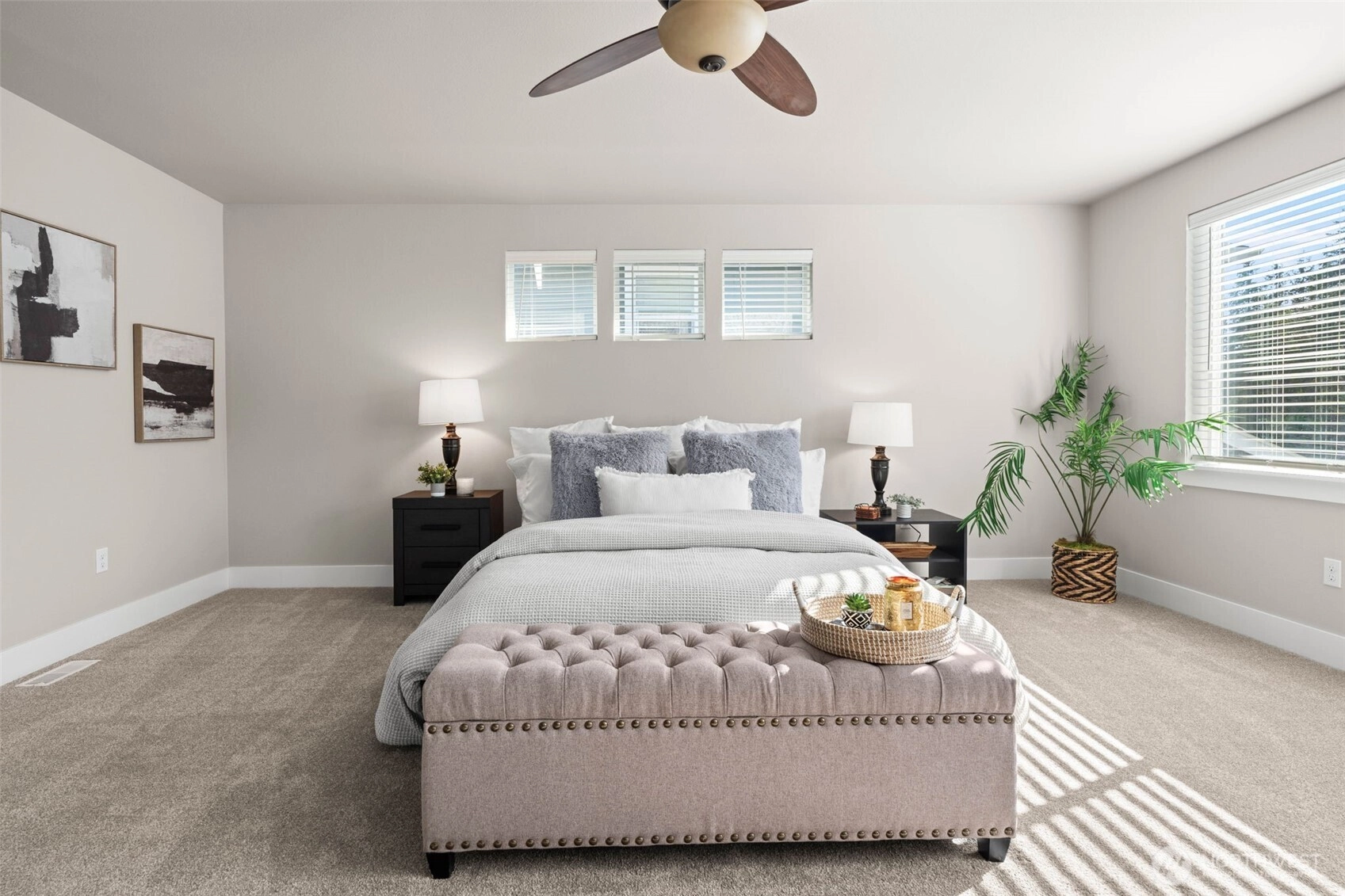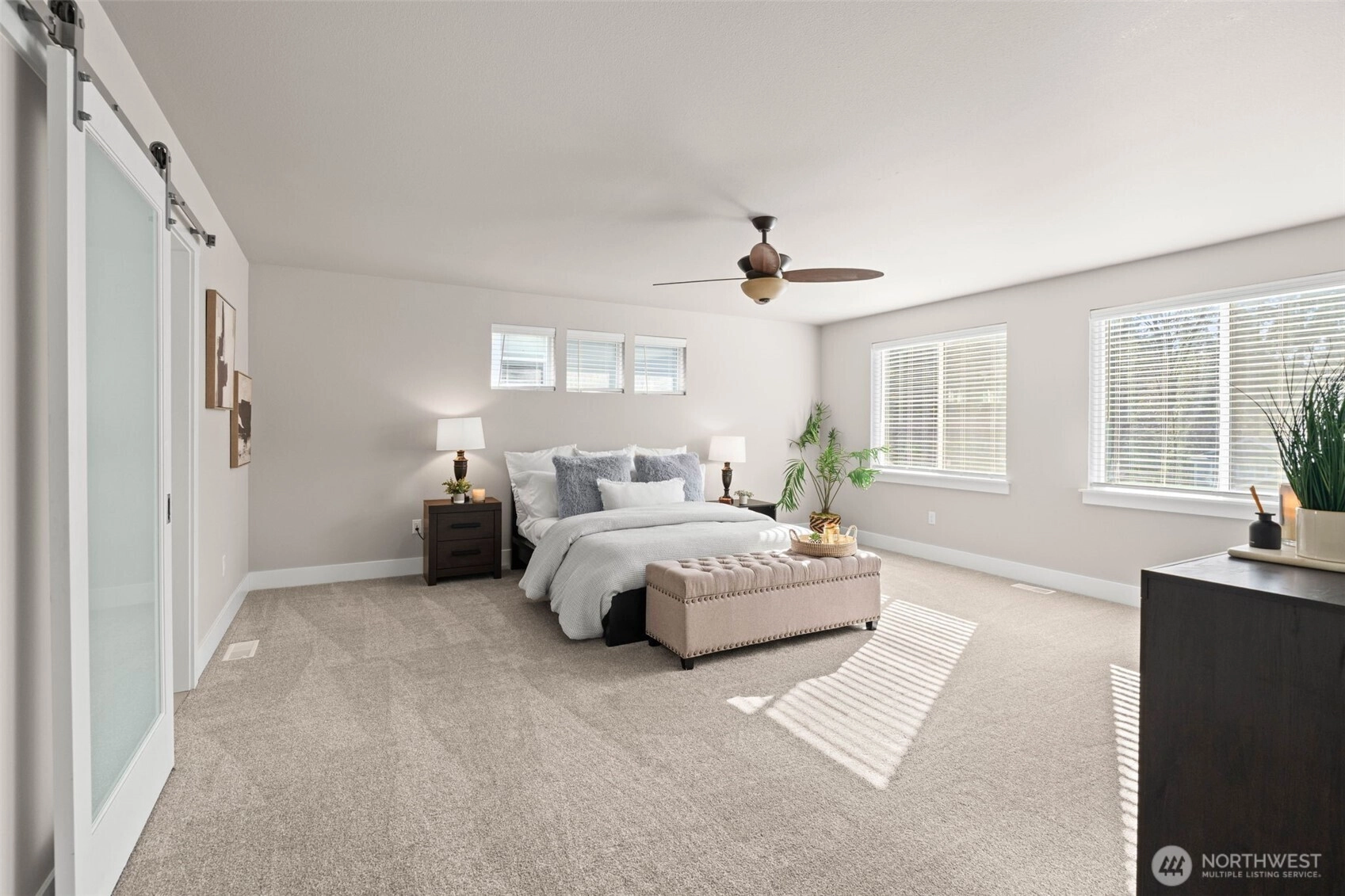 Built in 2018 and fully refreshed — new floors, new carpet, fresh paint throughout — this Rush craftsman is as close to new construction as it gets, without the wait. At 3,106 square feet, the layout delivers on every level. The main floor features an open concept living and dining area, a chef's kitchen with high-end appliances, a dedicated office with French doors, and a rare main-floor second primary suite — a full bedroom and bathroom perfect for guests, multigenerational living, or the convenience of single-level sleeping. Upstairs, the primary suite offers a five-piece spa-inspired bathroom and a walk-in closet, along with two additional bedrooms, a full bath, and a dedicated laundry room. Cable railings and an open loft add architectural character throughout. Out back, a covered patio with a gas fireplace — fully fenced, low maintenance by design, and just as good in January as it is in July. The HOA handles all the yard work, so you never have to. Tucked on a quiet cul-de-sac with friendly neighbors and walkable to Downtown Gig Harbor and the Cushman Trail, with Highway 16, Gig Harbor High School, and the hospital all just minutes away — and Tacoma less than 10 minutes out. No yard work. No projects. Just move in and start living. Come see your life here!
