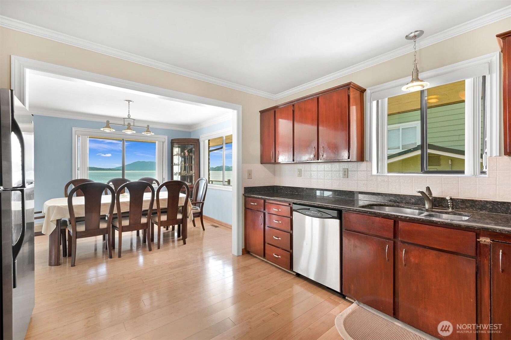 Wake up to sweeping mountain views and the soothing sound of waves just steps from your door. This rare Sandy Point gem features 112 feet of private beachfront on an expansive lot, offering both serenity and space to grow. The inviting beach home blends warmth and character with endless possibilities—enjoy it as-is, expand, or design your dream coastal retreat. Whether you envision a peaceful getaway, a high-demand vacation rental, or a cherished legacy property, the potential here is exceptional. Residents enjoy access to community amenities including a boat launch, pickleball and tennis courts, and a welcoming clubhouse—perfect for embracing an active, coastal lifestyle. An extraordinary opportunity to create something truly special by the sea.