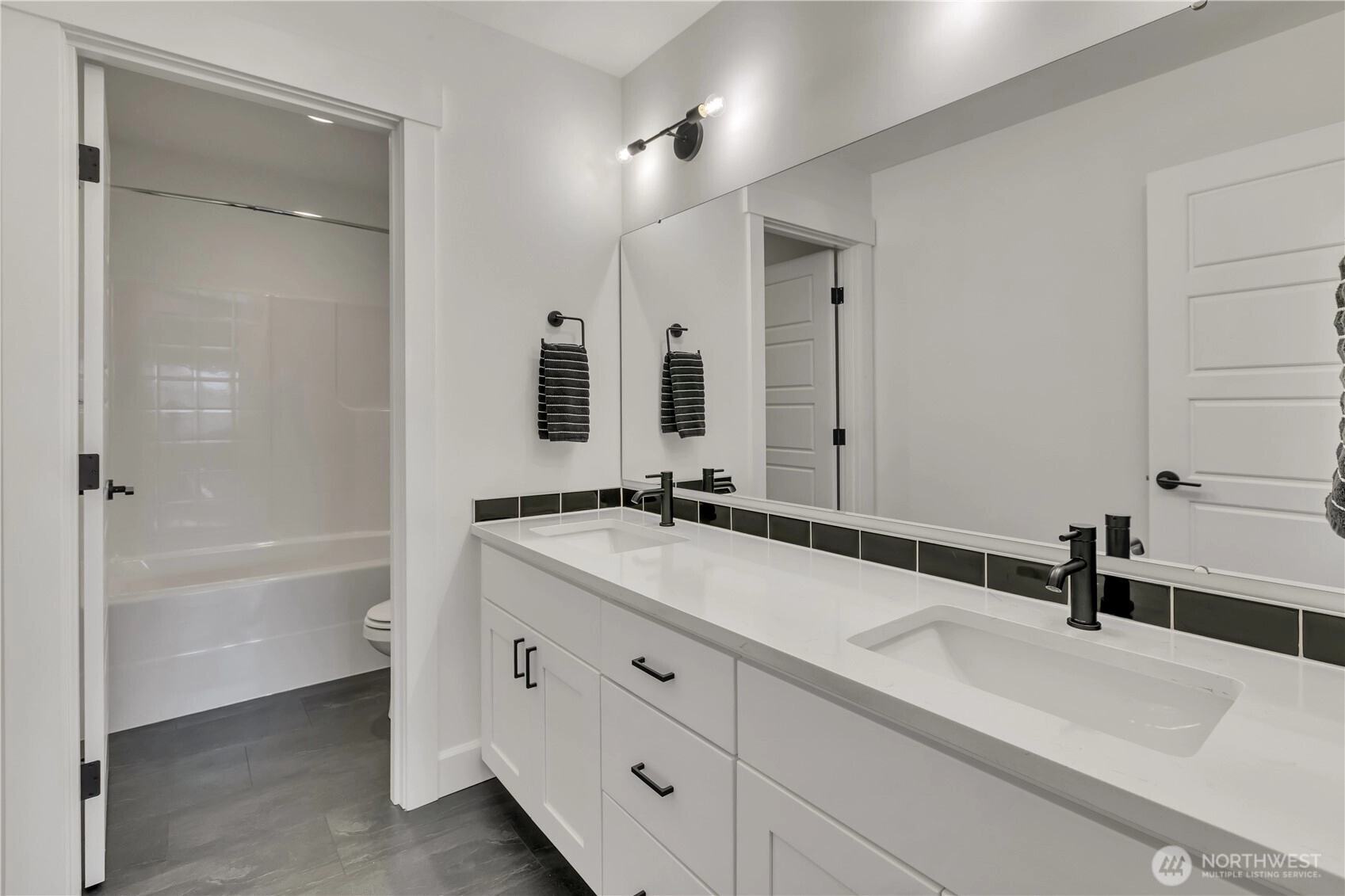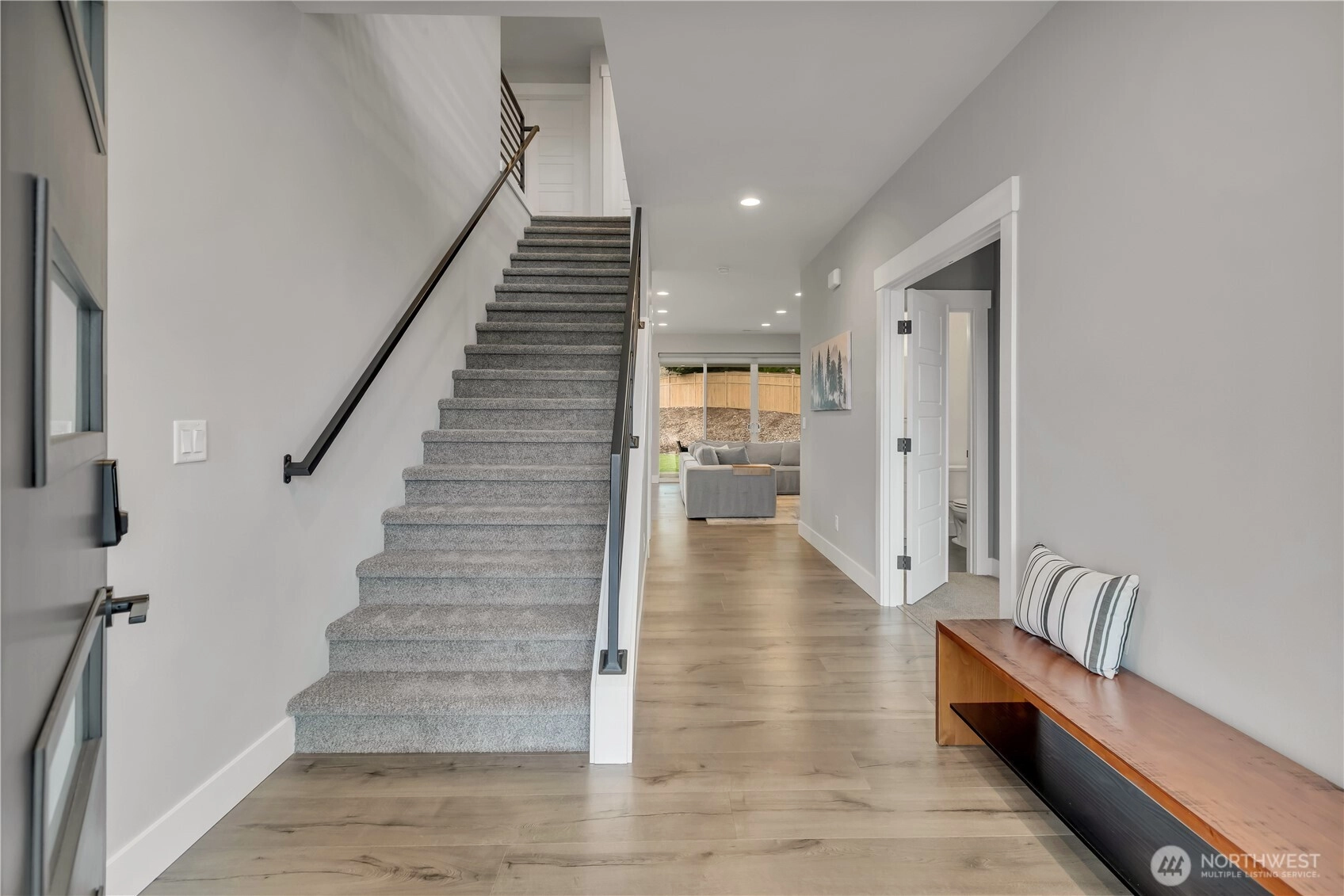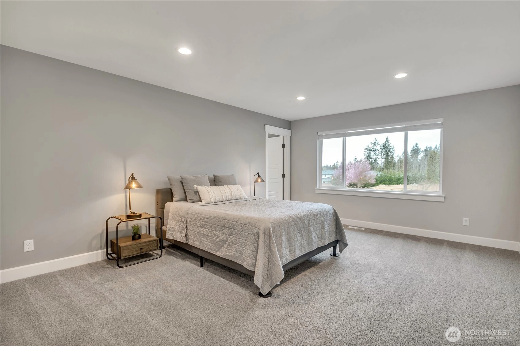 IMMACULATE 5-bedroom, 3.5-bath home with a 3-car garage located on a cul-de-sac in the sought-after Elk Run community. Occupied for just one year, it’s move-in ready with premium upgrades already complete. The main floor features a private bedroom with en-suite bath—ideal for multigenerational living or a home office. The spacious great room, showcasing a high-output electric fireplace with bespoke shiplap surround, leads to expansive sliding glass doors bringing the outside in. The chef’s kitchen features a custom oversized island with granite composite sink, large dining area, and walk-in pantry—perfect for entertaining and everyday living. Upstairs, enjoy a versatile loft with stunning views of Mount Rainier, a serene primary suite with a luxurious 5-piece bath and walk-in closet, plus 3 more generously sized bedrooms. Step outside and enjoy the large covered patio and fully fenced, private backyard. Additional upgrades include blinds throughout, all appliances, waterproof Mohawk Revwood Plus flooring, ultra-durable Sherwin-Williams Emerald interior paint, black hardware and fixtures throughout, low-maintenance front yard landscaping, and added garage outlets for extra functionality. Minutes from Lake Tapps and Bonney Lake, a rare opportunity to own a thoughtfully upgraded, truly turnkey home!