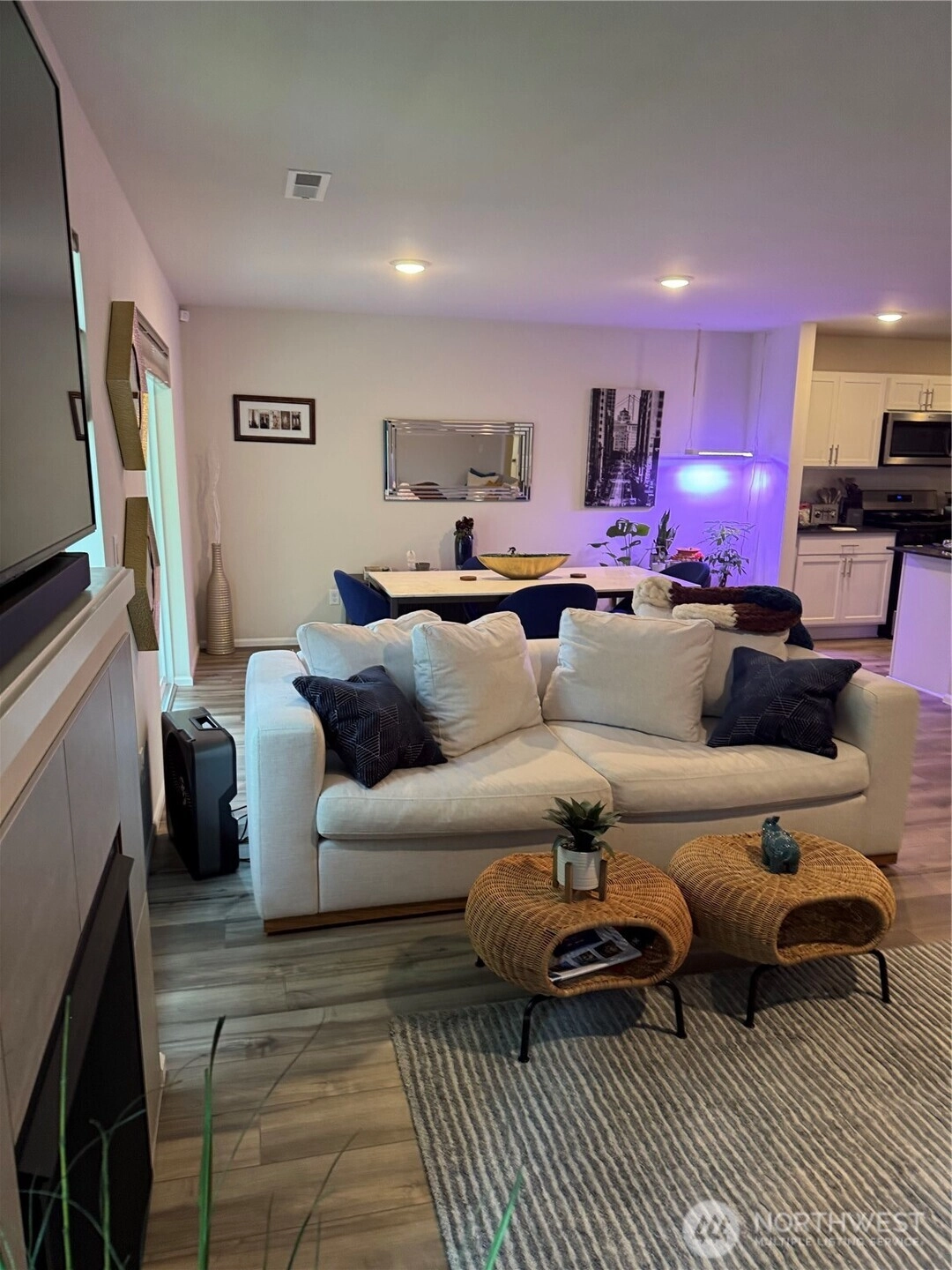 Modern One-Level Living at Its Finest! Experience the perfect blend of style and convenience in this stunning 1,725 sq. ft. rambler. The heart of the home features a chef-inspired kitchen boasting sleek White Maple cabinets with nickel pulls, elegant slab quartz countertops, and a full-height tile backsplash. Whether hosting at the oversized quartz island or cooking on your premium gas range, this space shines. Enjoy durable LVP flooring through the main living areas and plush carpet in the bedrooms. 5 setting LED canned lighting, Ring doorbell w/remote, honeycomb top down/bottom up shades throughout. Pre-plumbed for utility sink in laundry room. Complete with a covered patio for year-round outdoor enjoyment, a high-efficiency heat pump with AC, and a fully landscaped yard. Move-in ready with all appliances included! Seller will include furnishings for $5,000 pending negotiation