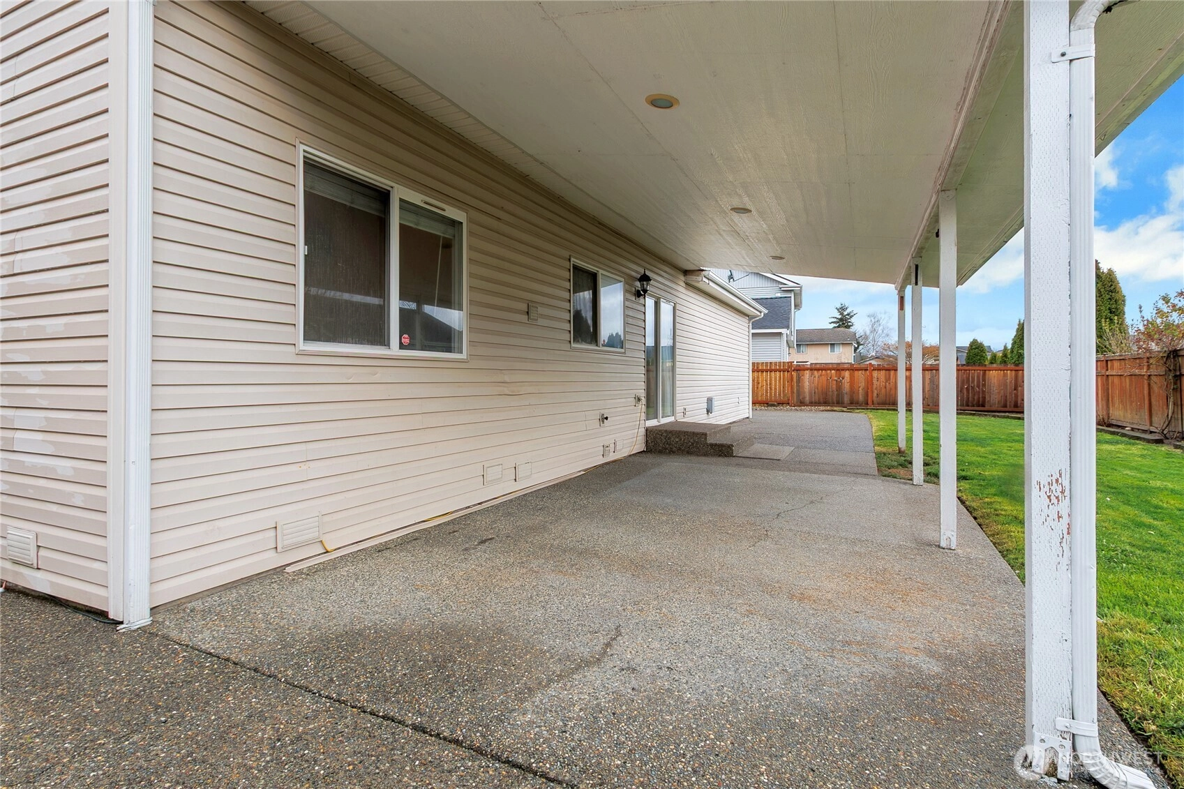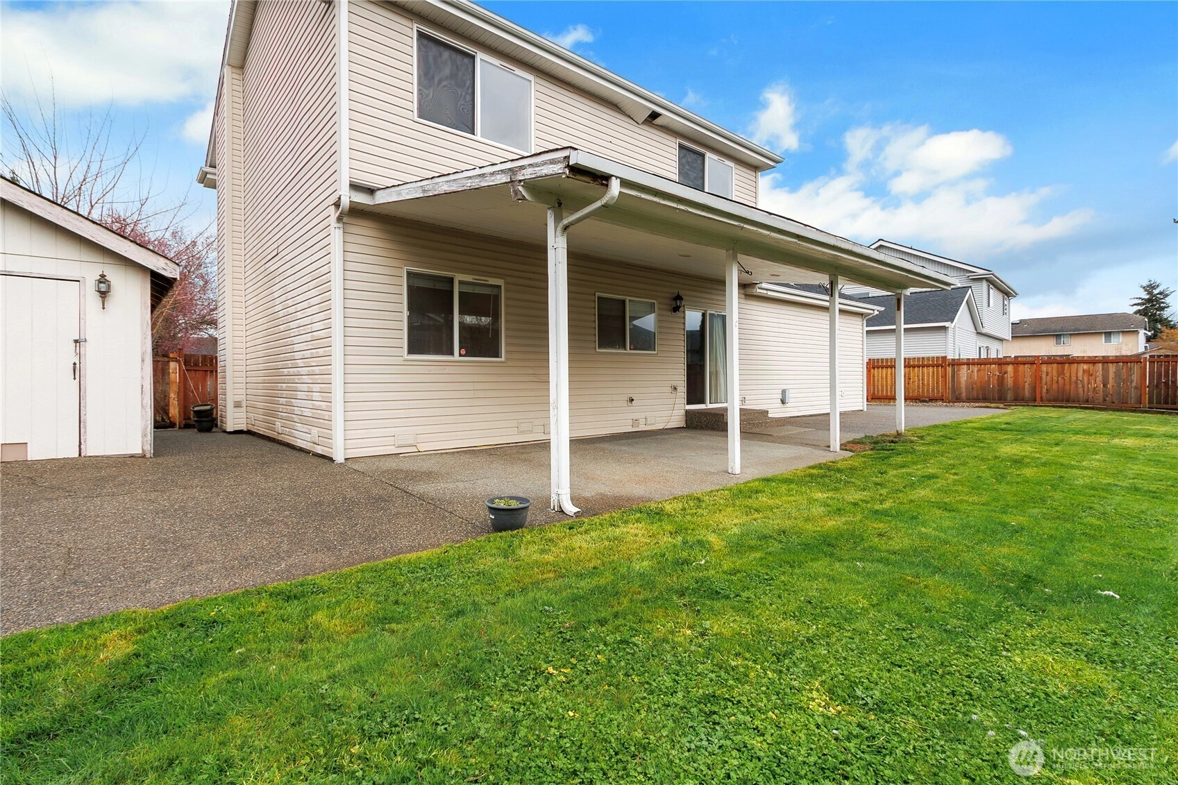 Welcome to this charming home on a quiet cul-de-sac in the heart of Orting! The house features 3 bedroom 2.5 bathrooms, 1527 sq/ft. Step inside to a light-filled interior featuring an open-concept layout and a spacious living room with a gas fireplace perfect for chilly days. The kitchen is designed for both everyday living and entertaining, with ample counter space, cabinetry, and a seamless flow into the dining and living areas. The primary bedroom provides a relaxing retreat with generous walk-in closet space and a private bath, while additional bedrooms offer flexibility for guests, a home office, or hobbies. The private backyard with a covered patio is perfect for entertaining, BBQ gatherings, gardening, or simply unwinding. The fully fenced side patio provides a secure and convenient space to park your RV or boat. Conveniently located near parks, schools, stores, a dog park, and a playground is within walking distance. A new gas furnace in 2023 and a new water heater in 2024 were installed. A new roof will be installed before closing.