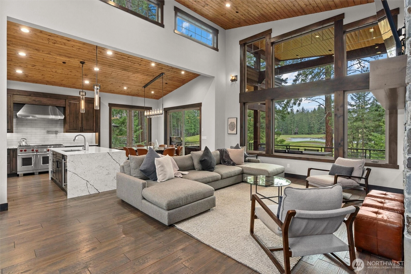 Premier home on Prospector Golf Course with sunset views over the 5th fairway. Thoughtfully designed and built in 2021, offering impressive living spaces and luxe finishes. Main floor great room inspires relaxation with soaring ceilings, stone fireplace and warm woodwork. You'll want to stay home and cook for a crowd in the chef's domain featuring an oversized Wolf range, two Bosch dishwashers and Sub-Zero refrigerator. The lodge vibe carries outside to the adjoining deck, heated for year round enjoyment. Enjoy a peaceful, natural setting spacious enough for both lounging and dining. The Suncadia spa can't compete with the main floor luxurious primary ensuite and hot tub on the lower level covered deck overlooking the green. Plenty of room for guests in the three lower level suites including one bunk room that sleeps four. Stash the rowdy ones in the rec room that flows to the back yard. Offering privacy, abundant space and beautiful views, this property doesn't disappoint. Whether you are looking for a regular getaway or a permanent home, this is one you don't want to miss.