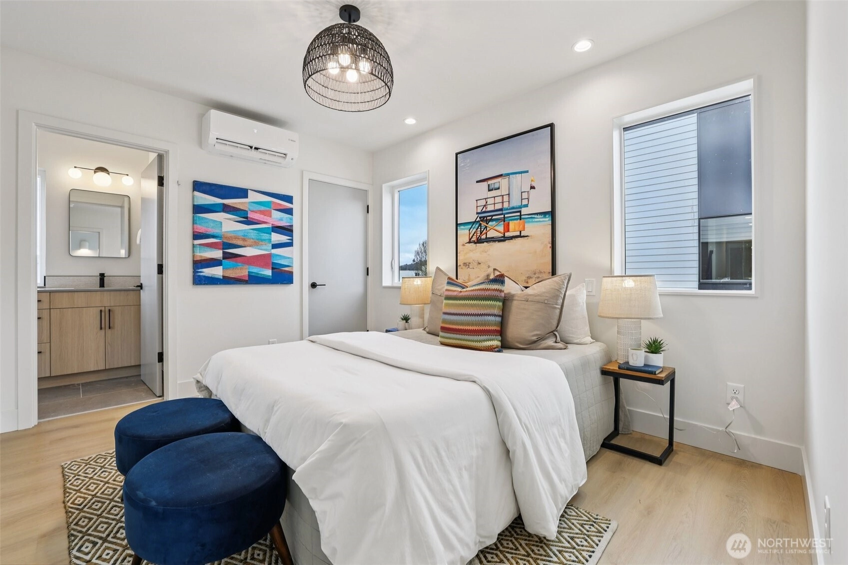 Experience elevated coastal living just steps from the shoreline at 2628 58th Ave SW in Seattle’s Alki Beach neighborhood. This exceptional new construction home offers 3 bedrooms plus a private garage, along with 2.5 bathrooms, a dedicated laundry area, & a ensuite primary suite. Designed with a distinctive chic beach aesthetic, the home showcases a statement kitchen featuring custom finishes, modern cabinetry, designer fixtures, and thoughtful layout optimized for both everyday living and entertaining. Don't miss the gorgeous light fixtures throughout the home! Enjoy close proximity to neighborhood destinations including Alki Beach Park, waterfront walking & biking paths, pickleball courts, and local dining such as Harry’s Beach House, all just moments away. Outdoor living is equally compelling with private exterior space and a rooftop deck offering panoramic Puget Sound and mountain views. The elevated vantage point provides a dynamic setting to watch ferry traffic, sunsets, and year-round waterfront activity. Additional highlights include a private garage with electrical for future EV charging, air conditioning and a location that blends beach access with convenient connectivity to the greater Seattle area. A rare opportunity to own a thoughtfully designed new construction home near Alki Beach with rooftop water views, flexible living space, and dedicated parking.