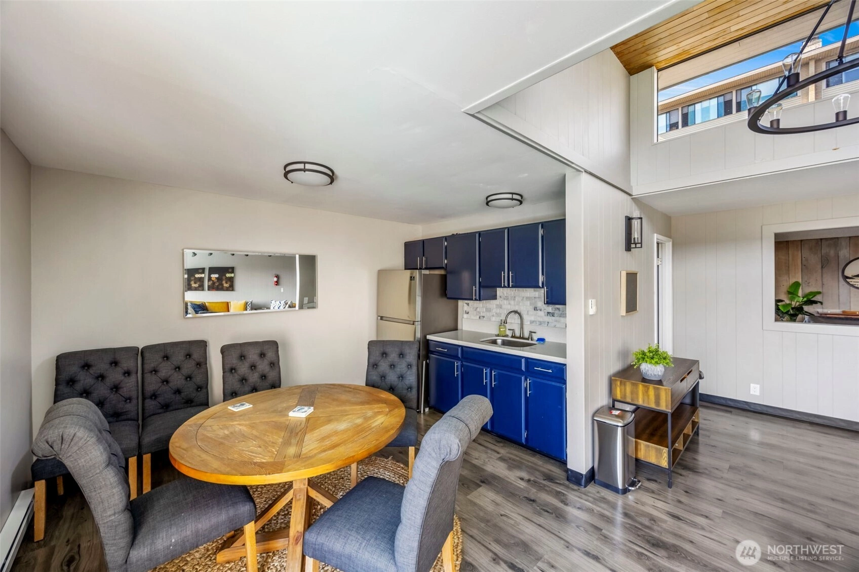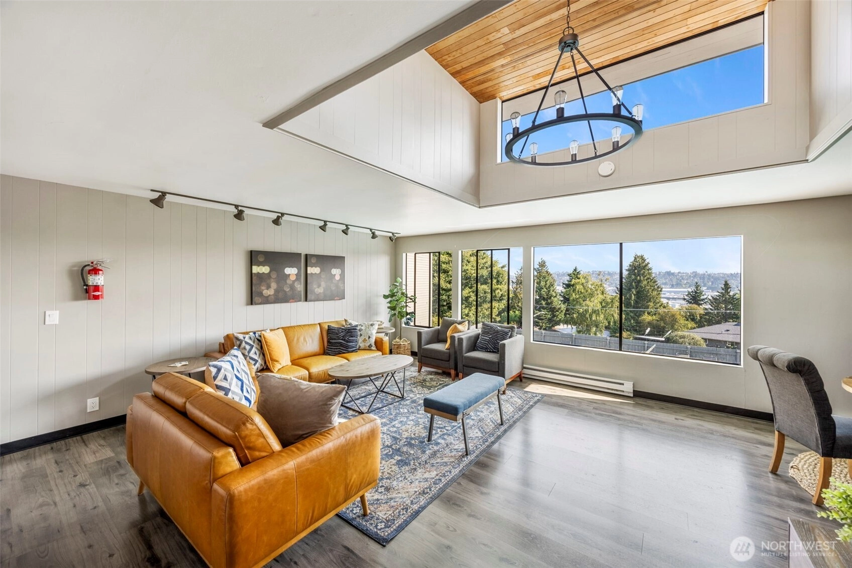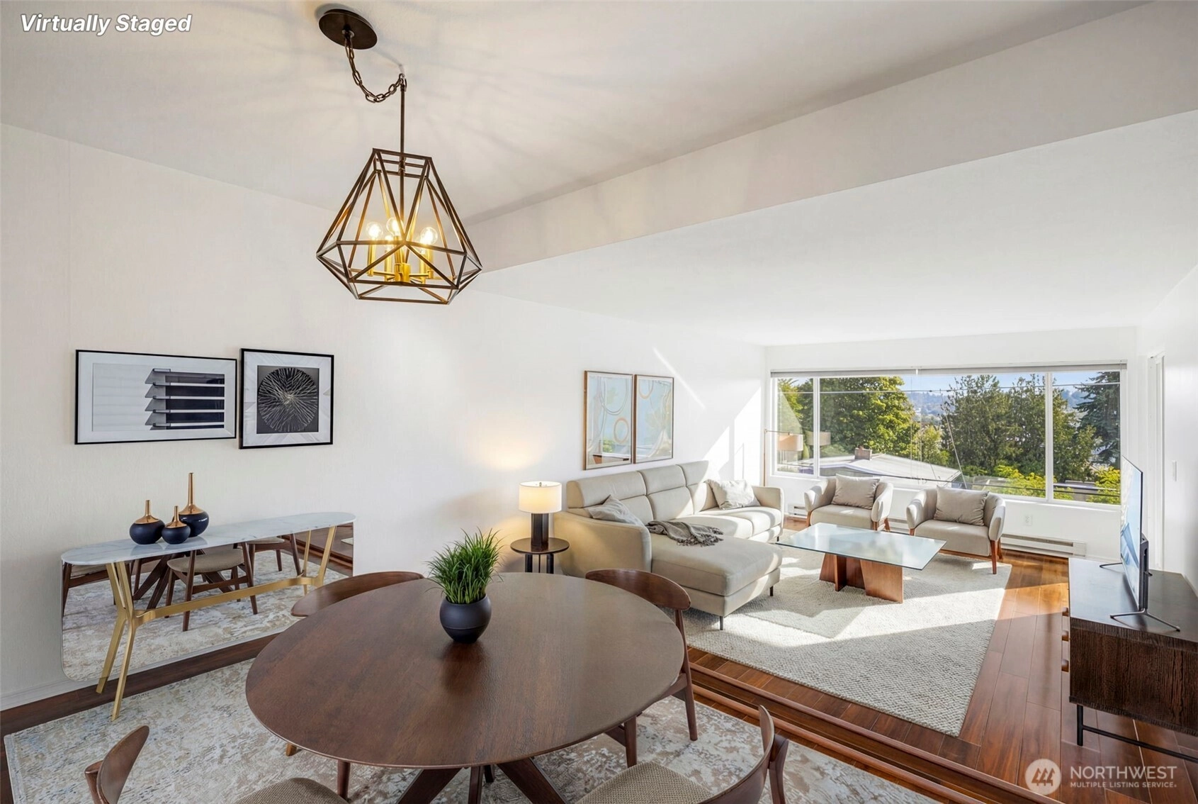 Peaceful and remarkably central, this sun-filled condo offers the best of Seattle living—quiet comfort with effortless access to the city’s top destinations. Just minutes from major tech hubs, Downtown Seattle, South Lake Union, and Ballard, and close to Magnolia’s village charm and nearby parks, the location strikes the perfect balance between calm and connectivity. Inside, oversized east-facing windows frame sweeping views of the Cascades, Queen Anne, and the Ballard Bridge, filling the home with natural light. The renovated kitchen features brand-new quartz countertops, stainless steel appliances, a breakfast bar, and generous cabinet space. An open dining area, covered patio, and spacious sunken living room reflect timeless mid-century modern style. The primary suite comfortably fits a king-size bed and includes a large walk-in closet with custom built-ins. Deeded parking is conveniently located just outside the unit entrance. Enjoy low HOA dues and access to amenities at The Eldorado, including an outdoor pool, resident lounge, and fitness room—all in a serene setting that keeps you close to everything.