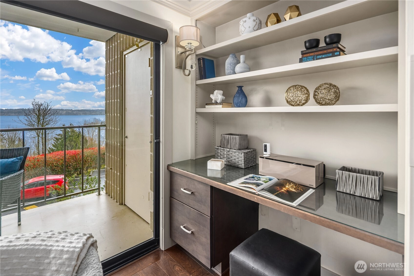 Welcome to this beautifully renovated, newly painted corner unit, offering one-level living with stunning views of Lake Washington and the Cascade Mountains. The spacious interior features a light-filled living room with floor-to-ceiling windows, a cozy fireplace, high-end lighting, and custom millwork throughout, creating an inviting space, perfect for dining and entertaining. The modern chef's kitchen boasts quartz countertops, stainless steel appliances, stylish backsplash, and is complemented by a unique built-in bar that overlooks the expansive views. The deck has plenty of room for outdoor dining or relaxing! Enjoy access to a secure building with an elevator, executive gym, sauna, woodshop, electric car charger, and a large storage locker. The property has an outdoor pool with a fountain and quick access to the Burke Gilman Trail, Warren Magnuson Park, Sandpoint Country Club, restaurants, shopping, groceries, multiple world-class hospitals, and easy downtown access. A great opportunity to live in a lovely, well-maintained community.