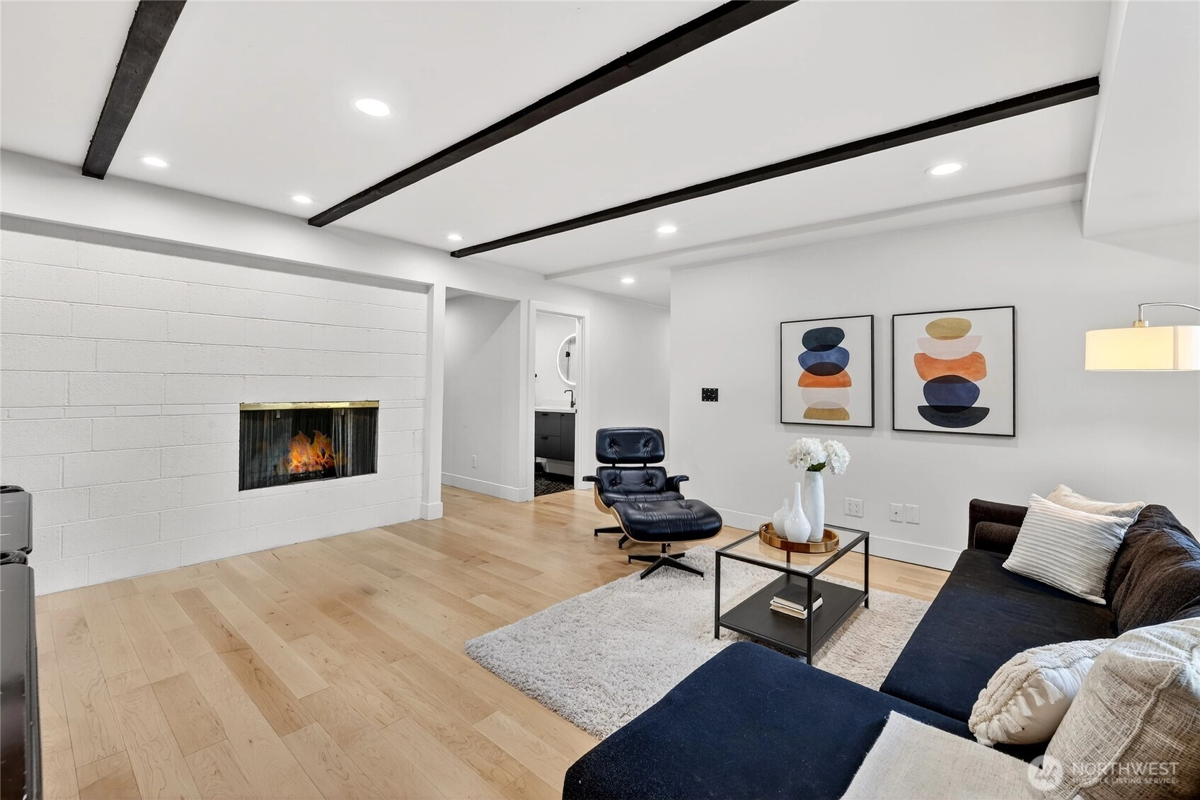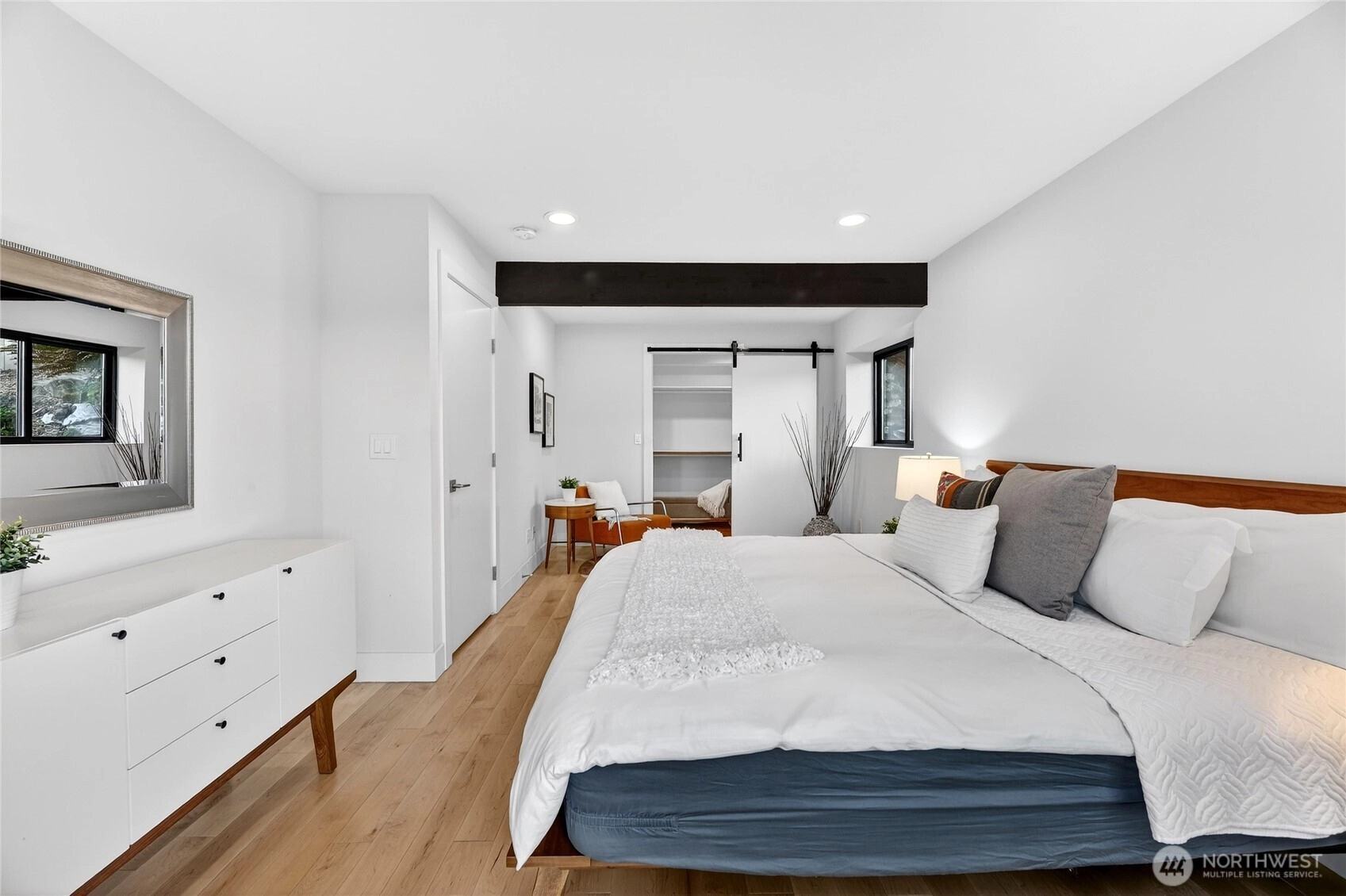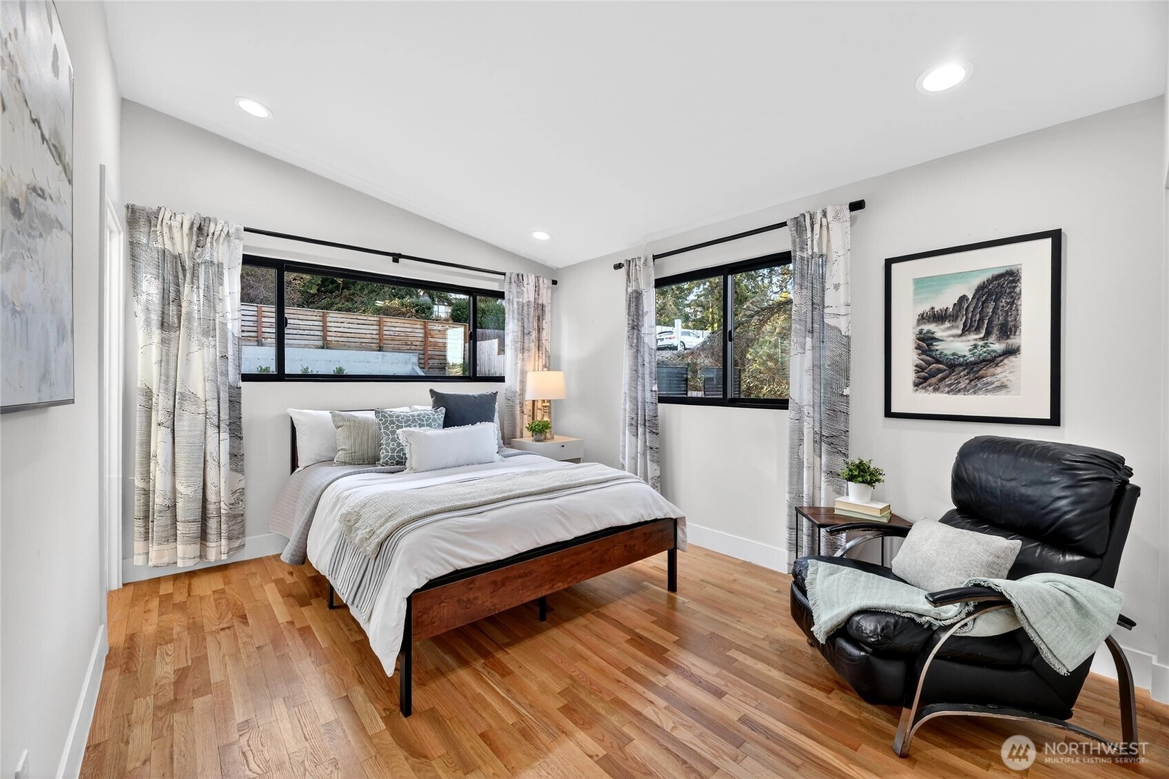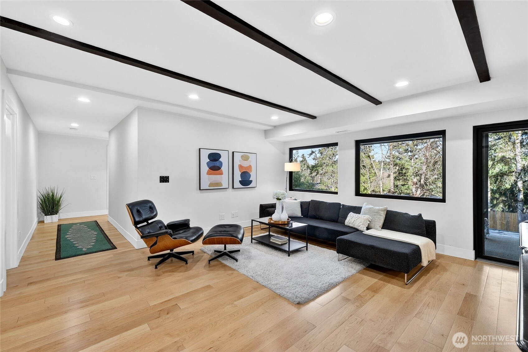 Mid-Century Modern reimagined! This Woodridge home was taken down to the studs in 2021 & rebuilt, preserving the original design while introducing modern, high-quality finishes. The open-concept main floor features a chef’s kitchen beautifully appointed with Leicht German cabinetry, Caesarstone counters, Sub-Zero fridge, Wolf range, Miele DW & Dacor double oven, plus an eat-in bar for casual dining. The upper deck extends the living space outdoors-perfect for dining & relaxing while taking in easterly territorial views. A separate, spacious dining area is flanked by an original braai (grill) & offers access to a side patio & insulated 2-car garage w/ EV-ready power. 5 beds & 4 baths across 3,020 SF offer exceptional flexibility, including 3 bedrooms on the main floor, & 2 ensuite bedrooms—ideal for guests or multi-gen living. The spacious primary suite includes a walk-in closet & a spa-like 5-piece bath featuring an incredible soaking tub. The lower level is designed for both relaxing & entertaining, featuring a built-in wet bar, 2nd wood-burning fireplace & a 3-person infrared sauna. Step outside to a private backyard oasis with a 16' Modpool & spa w/ a motorized cover, swim deck, professional landscaping, covered patio & JBL sound-perfect for everyday living & memorable gatherings. This home is located just moments from Factoria, DT Bellevue, parks, trails, dining, 2 neighborhood swim clubs, & award-winning Bellevue schools including Woodridge ES, Chinook MS & Bellevue HS.
