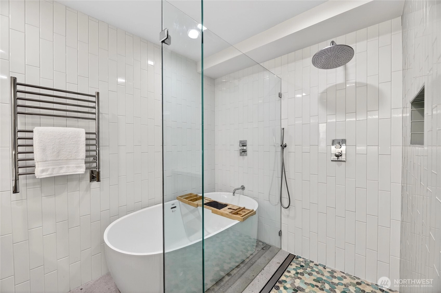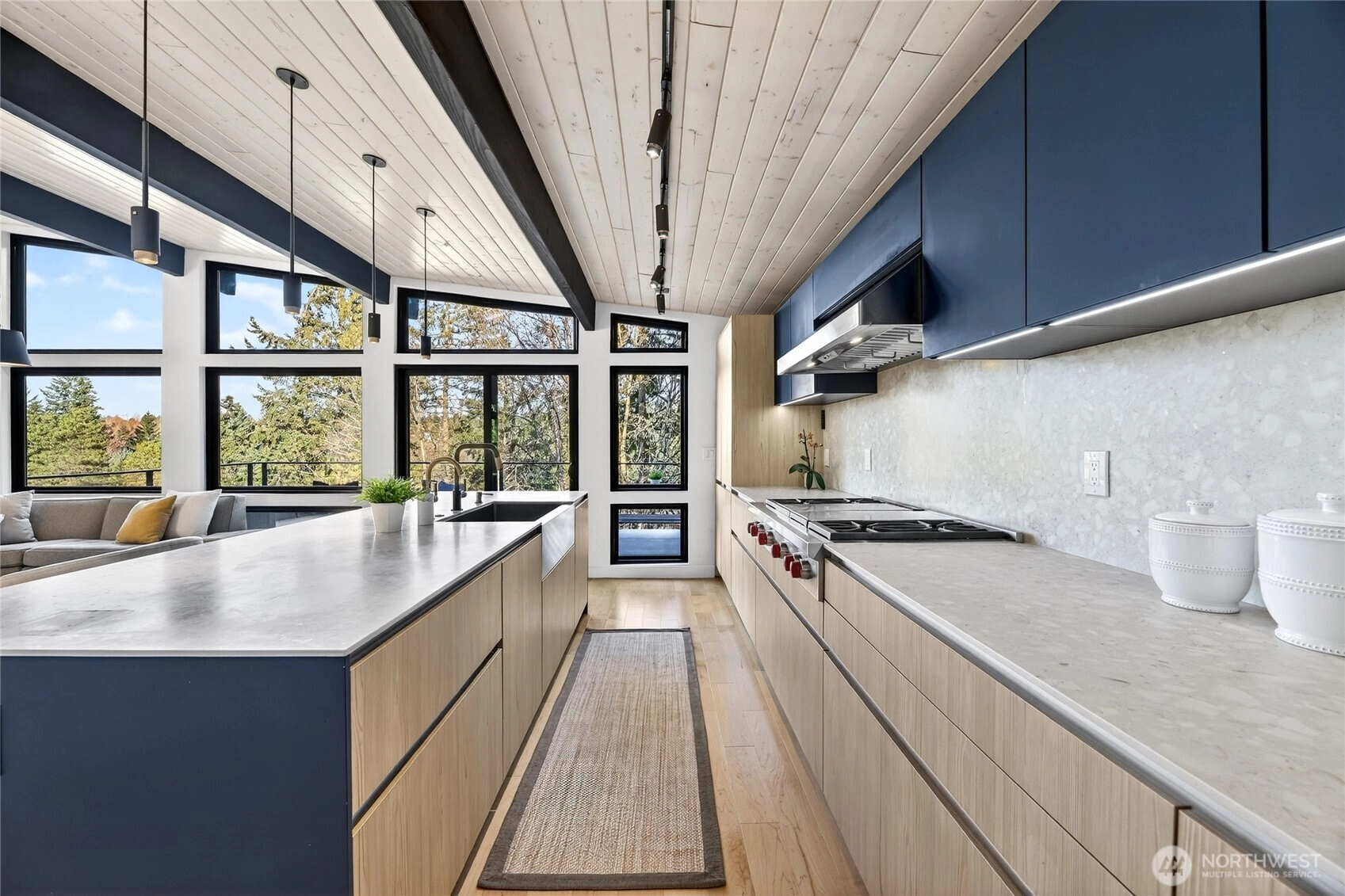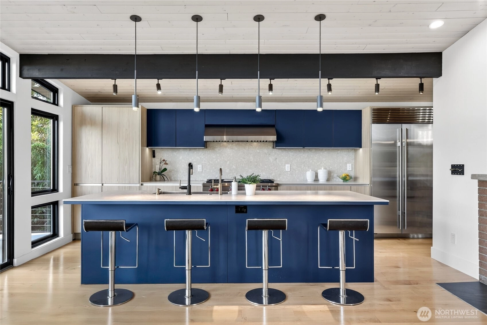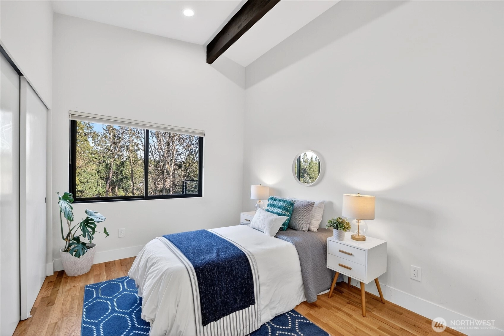 Mid-Century Modern reimagined! This Woodridge home was taken down to the studs in 2021 & rebuilt, preserving the original design while introducing modern, high-quality finishes. The open-concept main floor features a chef’s kitchen beautifully appointed with Leicht German cabinetry, Caesarstone counters, Sub-Zero fridge, Wolf range, Miele DW & Dacor double oven, plus an eat-in bar for casual dining. The upper deck extends the living space outdoors-perfect for dining & relaxing while taking in easterly territorial views. A separate, spacious dining area is flanked by an original braai (grill) & offers access to a side patio & insulated 2-car garage w/ EV-ready power. 5 beds & 4 baths across 3,020 SF offer exceptional flexibility, including 3 bedrooms on the main floor, & 2 ensuite bedrooms—ideal for guests or multi-gen living. The spacious primary suite includes a walk-in closet & a spa-like 5-piece bath featuring an incredible soaking tub. The lower level is designed for both relaxing & entertaining, featuring a built-in wet bar, 2nd wood-burning fireplace & a 3-person infrared sauna. Step outside to a private backyard oasis with a 16' Modpool & spa w/ a motorized cover, swim deck, professional landscaping, covered patio & JBL sound-perfect for everyday living & memorable gatherings. This home is located just moments from Factoria, DT Bellevue, parks, trails, dining, 2 neighborhood swim clubs, & award-winning Bellevue schools including Woodridge ES, Chinook MS & Bellevue HS.