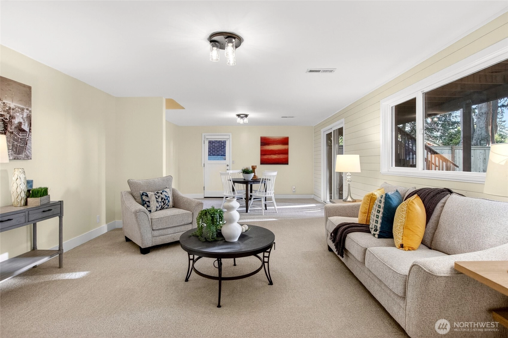 Mid-Century Masterpiece in Broadview — Fully Reimagined This stunning 5-bedroom, 2.25-bath home has been transformed top to bottom while preserving its timeless mid-century character. With 2,760 sq ft of beautifully finished living space across two versatile levels, the extensive updates speak for themselves: complete kitchen and bathroom remodels, new doors and windows throughout, new sewer line from house to street, new gutters, fresh basement carpet, and a brand-new washer and dryer. No deferred maintenance — just move in and live. The main level features gleaming original hardwood floors, a light-filled living room with fireplace, and a dining room that flows to a west-facing deck with peek views of the Olympics and Puget Sound. The fully finished lower level delivers serious bonus space — a large family room with second fireplace, a private fifth bedroom with ¾ bath, dedicated laundry, and walkout access to a sunny, level, partially fenced backyard with patio and outbuildings. The location is unbeatable. Minutes to Carkeek Park's trails and waterfront, restaurants, coffee shops, and boutiques, with direct bus routes connecting you to the entire city. The attached 2-car garage and nearly 8,200 sq ft lot complete an already exceptional package. Homes this well-updated, in a neighborhood this strong, rarely come available. Come see it in person — you'll understand immediately.