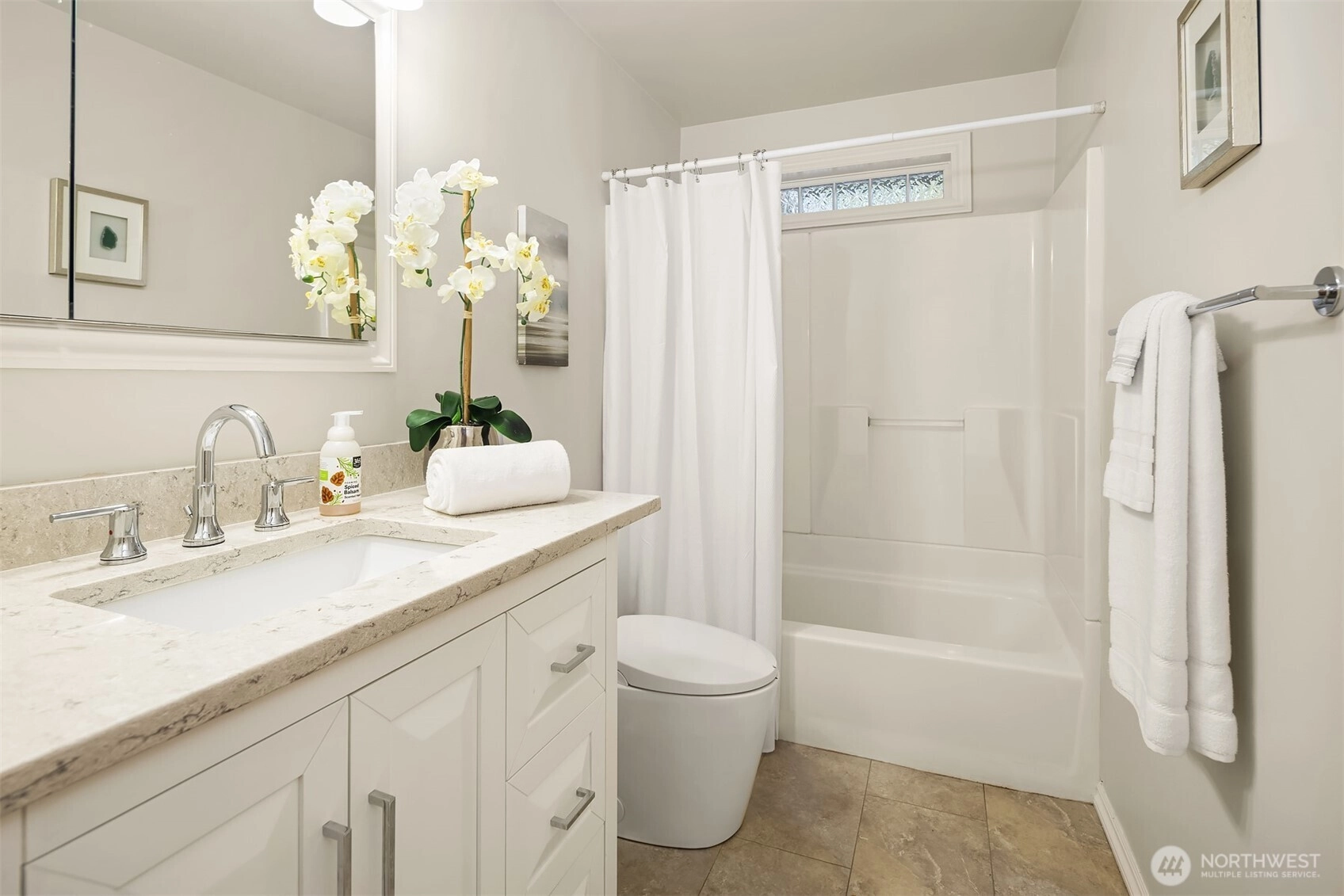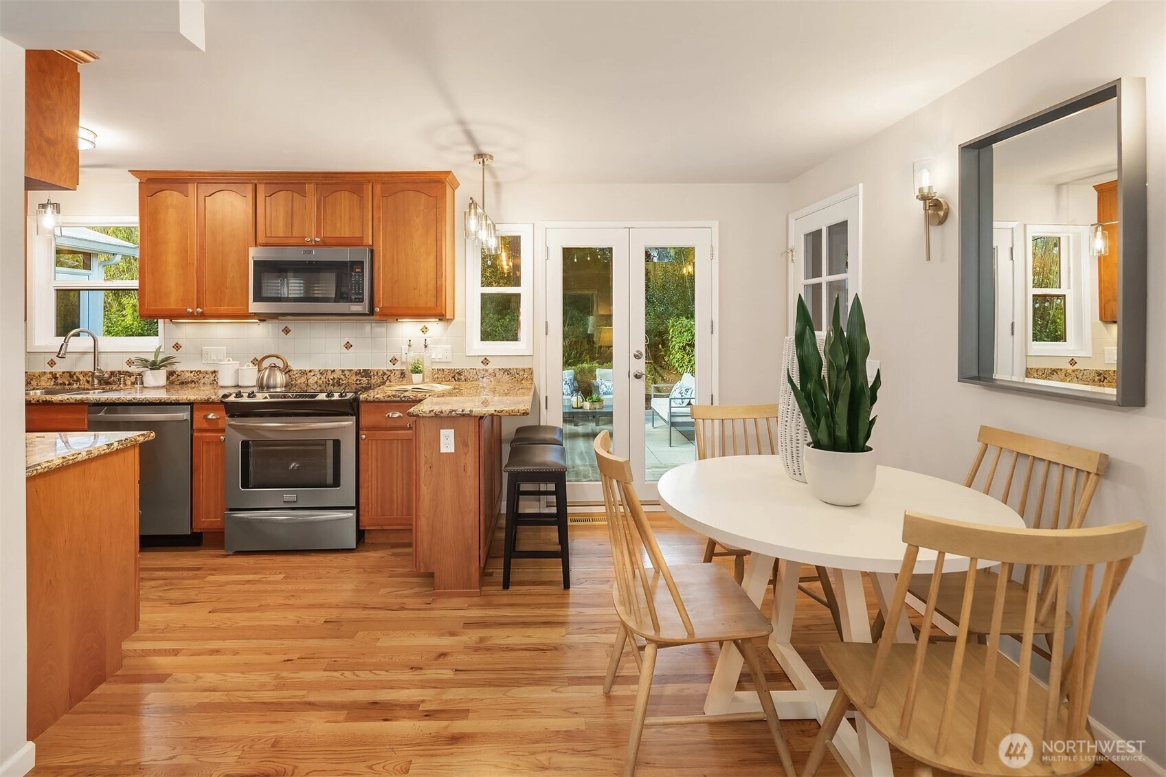 Tucked into the heart of Lake Hills, this warm and welcoming home offers the perfect blend of privacy, flexibility, and everyday livability. An elevated setting and private gated patio create a welcoming entry into the open-concept living and dining spaces, filled with natural light and connected seamlessly to the kitchen with stainless appliances and breakfast bar. The expansive backyard provides a peaceful escape for relaxing or entertaining from its large patio surrounded by lush greenery. The primary suite’s sunroom offers a bright, versatile space for work or unwinding. A heated bonus room above the garage adds valuable flexibility as a potential fourth bedroom, media room, or guest retreat. Beautiful hardwood floors throughout, fresh interior paint and thoughtful updates abound. Moments from Samena Swim & Recreation Club, Lake Hills Library, parks, and the beautiful Lake to Lake Trail.