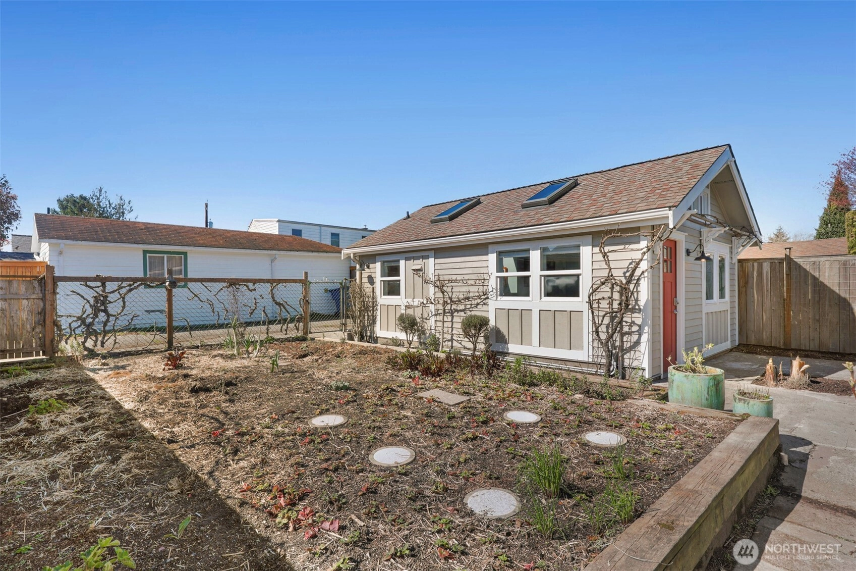 Gorgeously remodeled home in Loyal Heights. This special 1925 property was taken down to the studs in 2004 and is the perfect blend of period charm, but with updated systems throughout. Ideal for someone who wants that quintessential Ballard neighborhood but doesn't want old house issues! A unique opportunity with two living spaces: The main house features 1 bedroom, 1 bathroom, spacious kitchen, formal dining room, gleaming hardwoods & more. **Second bedroom in back house** Back house is a 362 square foot fully permitted DADU with a studio bedroom, kitchen & bathroom. Great space for visiting guests or possible rental. Impressive organic garden throughout the yard. Close to so many things--One block to Loyal Heights Elementary and short distance to Golden Gardens, Greenwood or downtown Ballard. Easy location for a downtown Seattle or SLU commute.