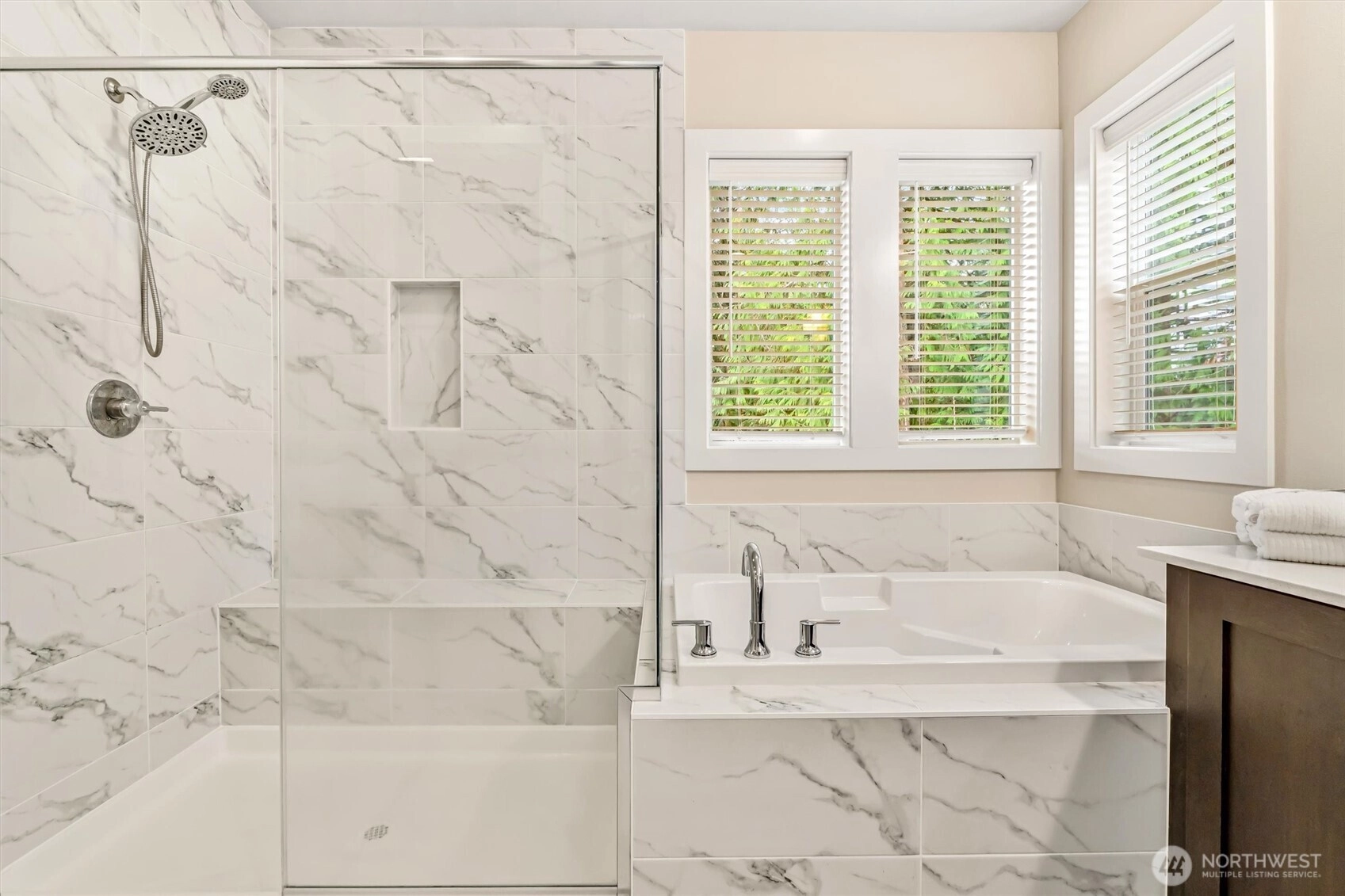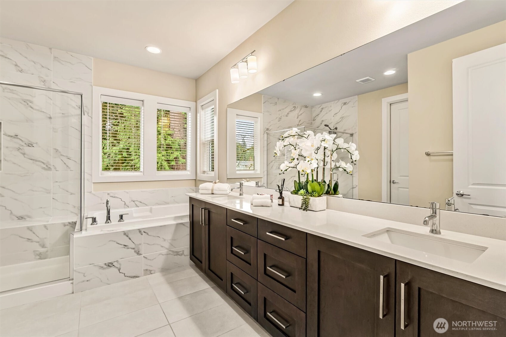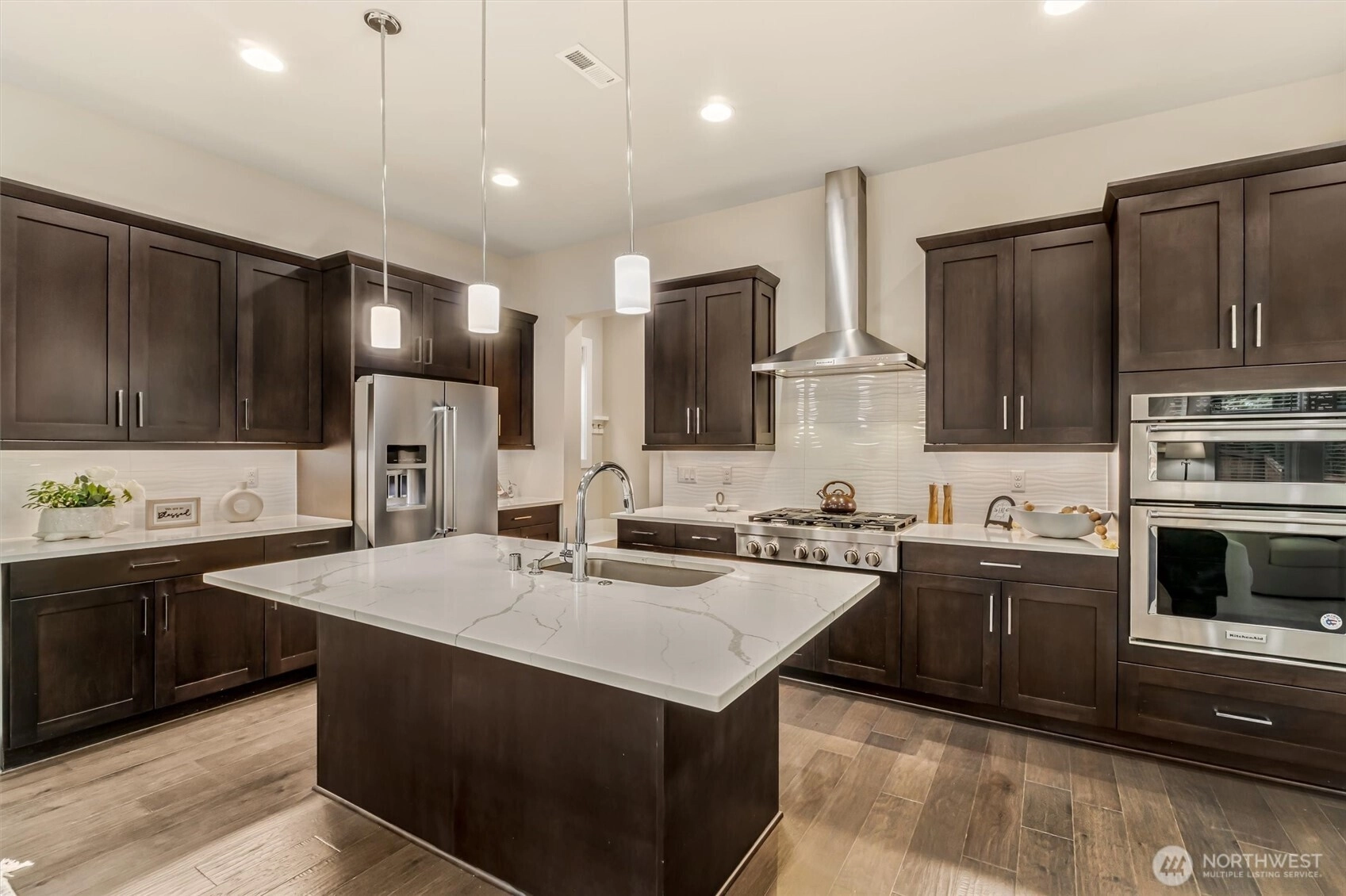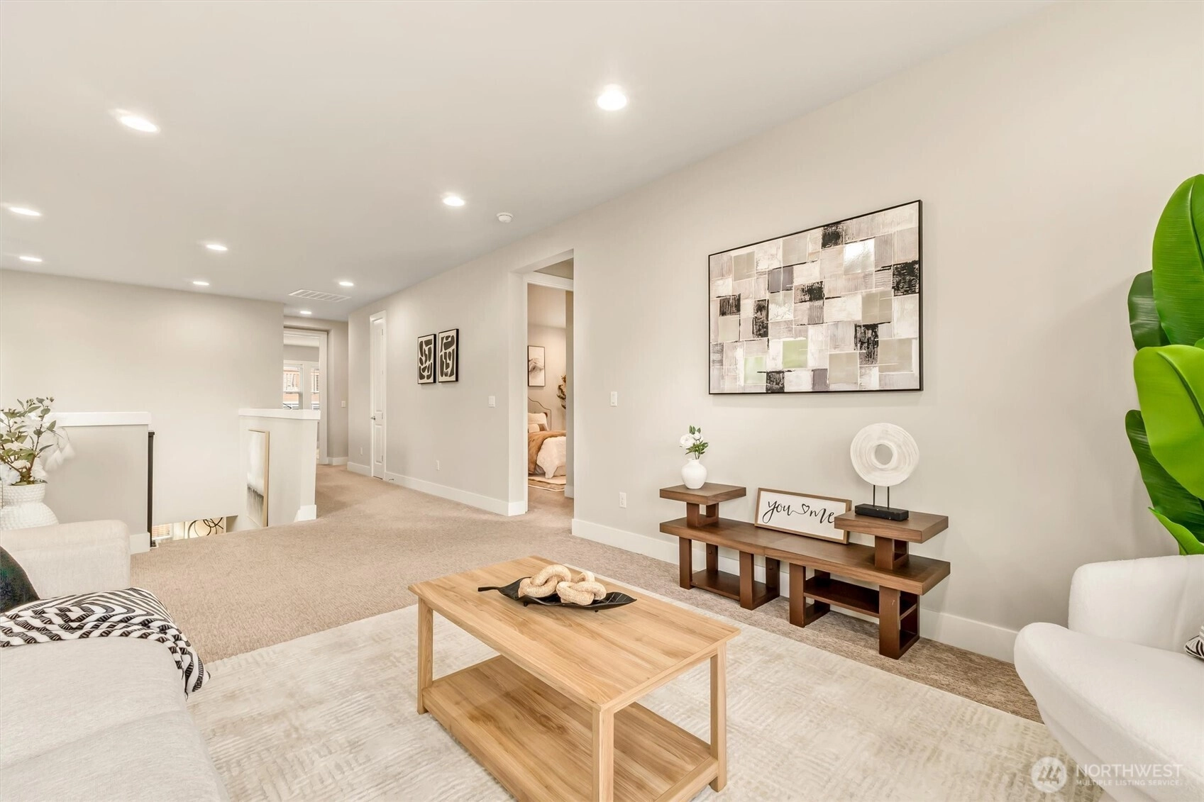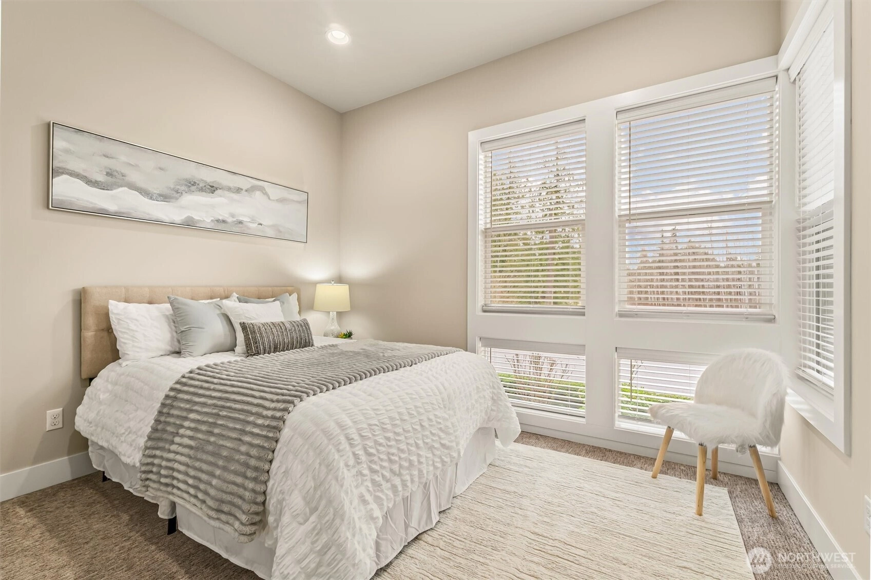 Model-like, better-than-new smart home in the highly desirable Monarch Ridge neighborhood. Ideal Premium Corner lot, this 2020-built North-facing home with an East-facing main door entry— architecturally positioned to capture breathtaking natural light from every angle, where soaring ceilings, a dramatic wall of windows & absolute greenbelt privacy converge to create an unrivaled living experience that must be seen to be believed. A desirable wide-open layout w/ Main-level bedroom & full bath offers flexibility for guests, multi-gen living, or an office. Gourmet kitchen inspires with gleaming commercial-grade appliances, a walk-in pantry & coveted garage access — effortlessly presiding over the grand, light-saturated great room & dining area. Upstairs, retreat to an expansive primary suite featuring a spa-inspired 5-pc bath plus a large walk-in closet. Two additional well-proportioned bedrooms, a full bath, large laundry room w sink, & bright Loft space complete the upper level. Advanced smart-home features with high-speed cabling, smart switches, TV mount, Central A/C, Tankless water heater, Energy-efficient appliances, blinds throughout. Two-car garage w/ EV charging & storage racks + lots of street parking. A master-planned community offering multiple parks, play areas & open community spaces. Steps to Top-Rated Rachel Carson Elementary, Inglewood Middle + Eastlake High in LWSD. Minutes to major eastside tech campuses, easy access to SR-520, shopping, dining, & light rail.