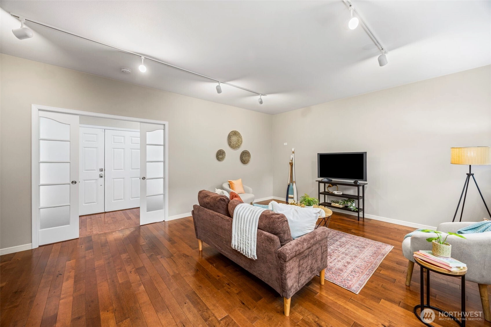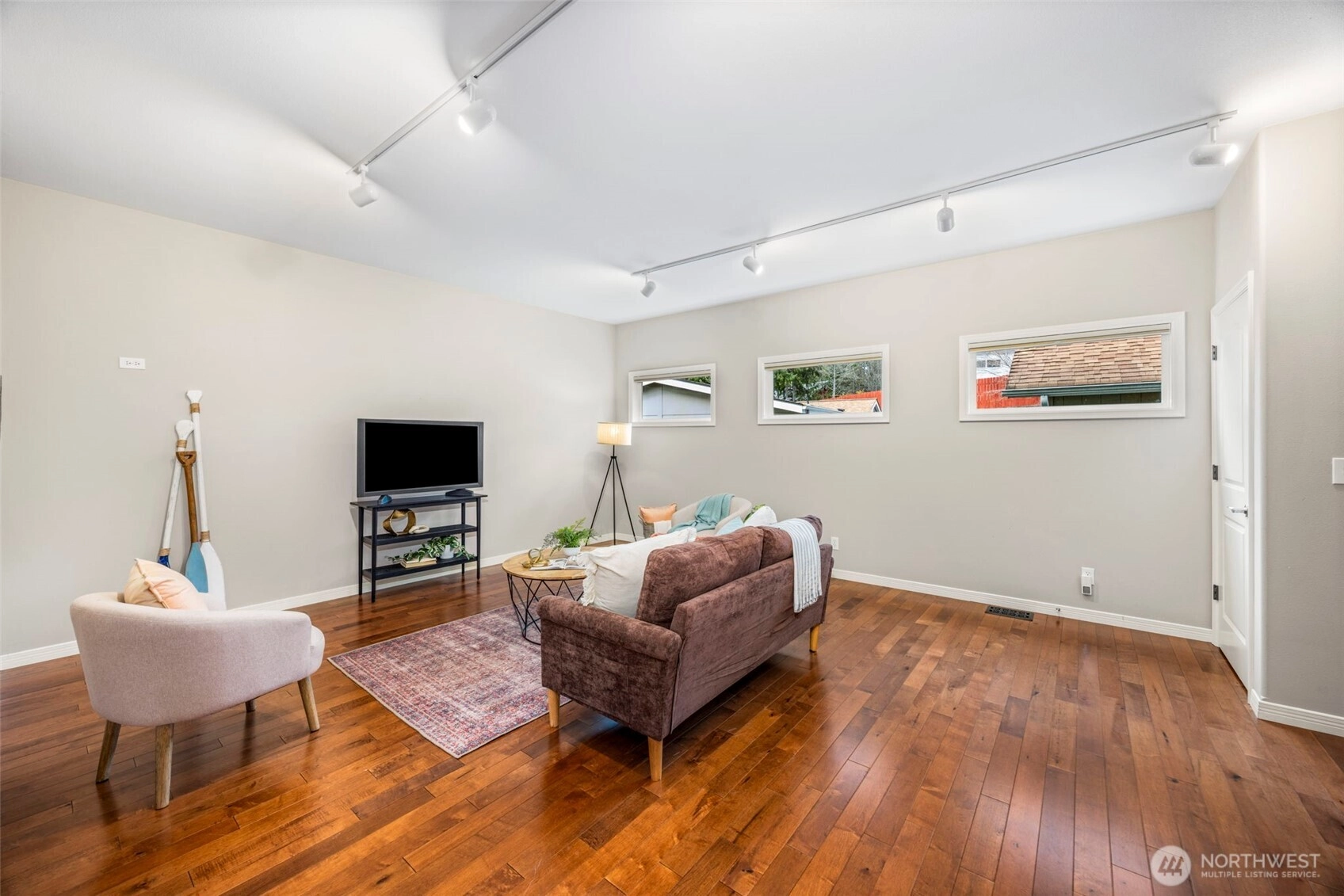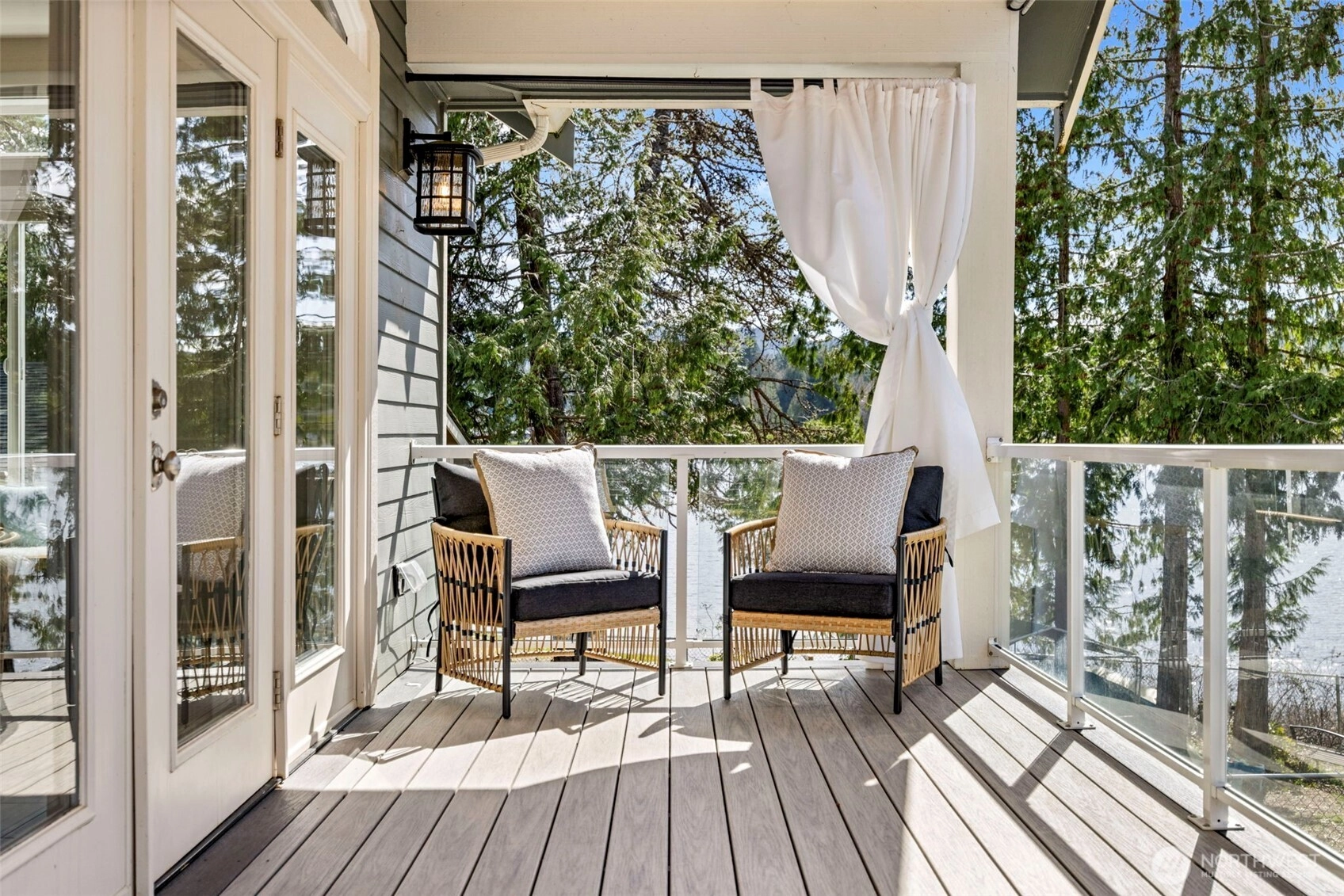 Stunning 3 BR + Bonus Wildcat Lake custom home with dock! A truly fantastic home and property. Beautiful hardwoods on main floor and 9' ceilings throughout. Jaw dropping light filled living room with gorgeous lake views, 2 story west facing wall of windows, cathedral ceiling & gas fireplace. Massive designer kitchen is inspiring space, ready for entertaining with quartz counters, stainless appliances, 6 burner high performance Cafe' gas range & large island. Main floor primary suite and newly updated spa bath with all the important things: heated floors lighted mirror, custom shower & pretty soaking tub. Huge 16' x 22' main floor media room could be epic game room. Second floor primary with ensuite has loft area with incredible lake views. Tons of storage space over garage. Bonus room off garage perfect for home office or gym. Wood wrapped windows with Hunter Douglas blinds. Trex decking with ample covered space for year around grilling. A/C for warm summer days. Professional landscaping with sprinkler system. Can't wait for sunshine summer fun! Gathering with loved ones, lakeside campfires and fishing off the floating dock. Big flat upper yard with storage shed. Large deep lot with plenty of parking + RV parking. Just 10 scenic minutes from Silverdale. Central Kitsap Schools!
