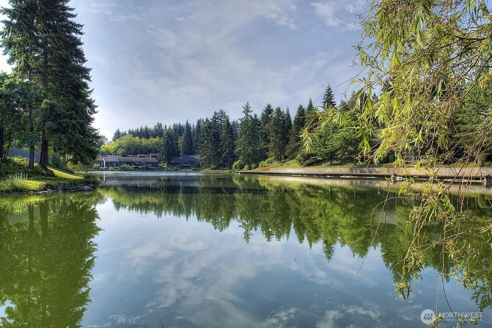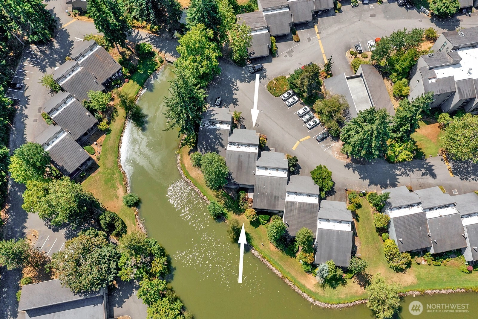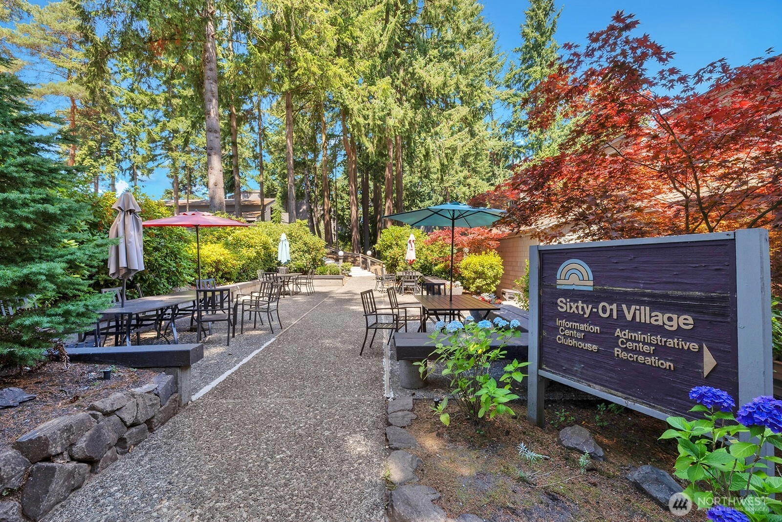 Welcome to this stylish townhome with floor to ceiling windows and an inviting interior. Just steps to the lake! Home boasts quality wood floors, new carpeting, new lighting. Entertain in the stunning kitchen with new quartz counters/seating bar, new white cabinets with black pulls, quality stainless appliances. Main floor half bath has updated vanity with Italian vessel sink. Primary bedroom features vaulted ceilings and new privacy windows overlooking the living room below. Second bedroom could also be an office or den. Modern style full bath features custom tile shower with hi-end glass doors. New full-size washer/dryer. Entertain on the large view deck or relax indoors by the fireplace. NO SPECIAL ASSESSMENTS. Attached carport parking with locked storage plus extra parking nearby. Sixty-01 has gated entry, four swimming pools, three lakes, 83 acres of trails/parks, clubhouse, gym, pea patch and much more!