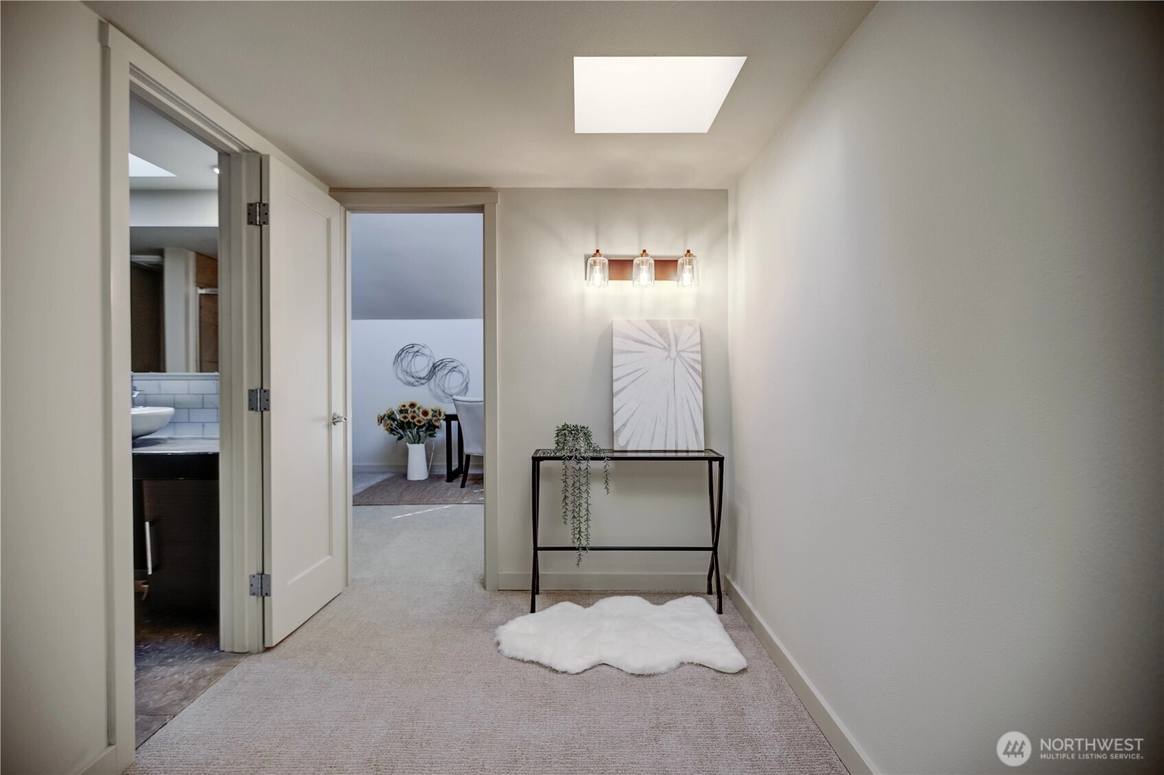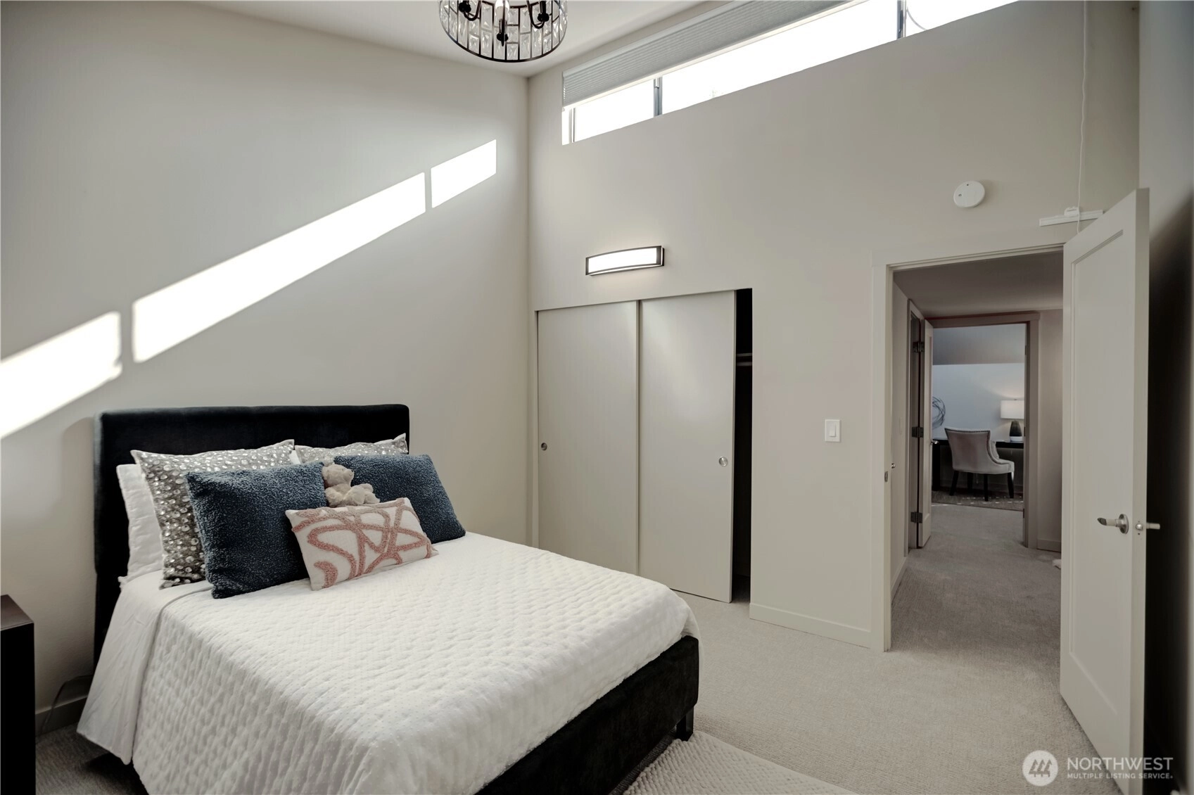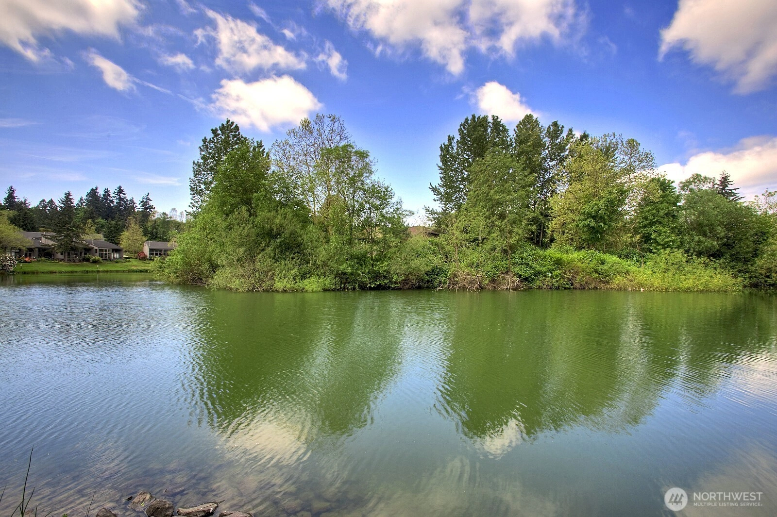 Welcome to this stylish townhome with floor to ceiling windows and an inviting interior. Just steps to the lake! Home boasts quality wood floors, new carpeting, new lighting. Entertain in the stunning kitchen with new quartz counters/seating bar, new white cabinets with black pulls, quality stainless appliances. Main floor half bath has updated vanity with Italian vessel sink. Primary bedroom features vaulted ceilings and new privacy windows overlooking the living room below. Second bedroom could also be an office or den. Modern style full bath features custom tile shower with hi-end glass doors. New full-size washer/dryer. Entertain on the large view deck or relax indoors by the fireplace. NO SPECIAL ASSESSMENTS. Attached carport parking with locked storage plus extra parking nearby. Sixty-01 has gated entry, four swimming pools, three lakes, 83 acres of trails/parks, clubhouse, gym, pea patch and much more!