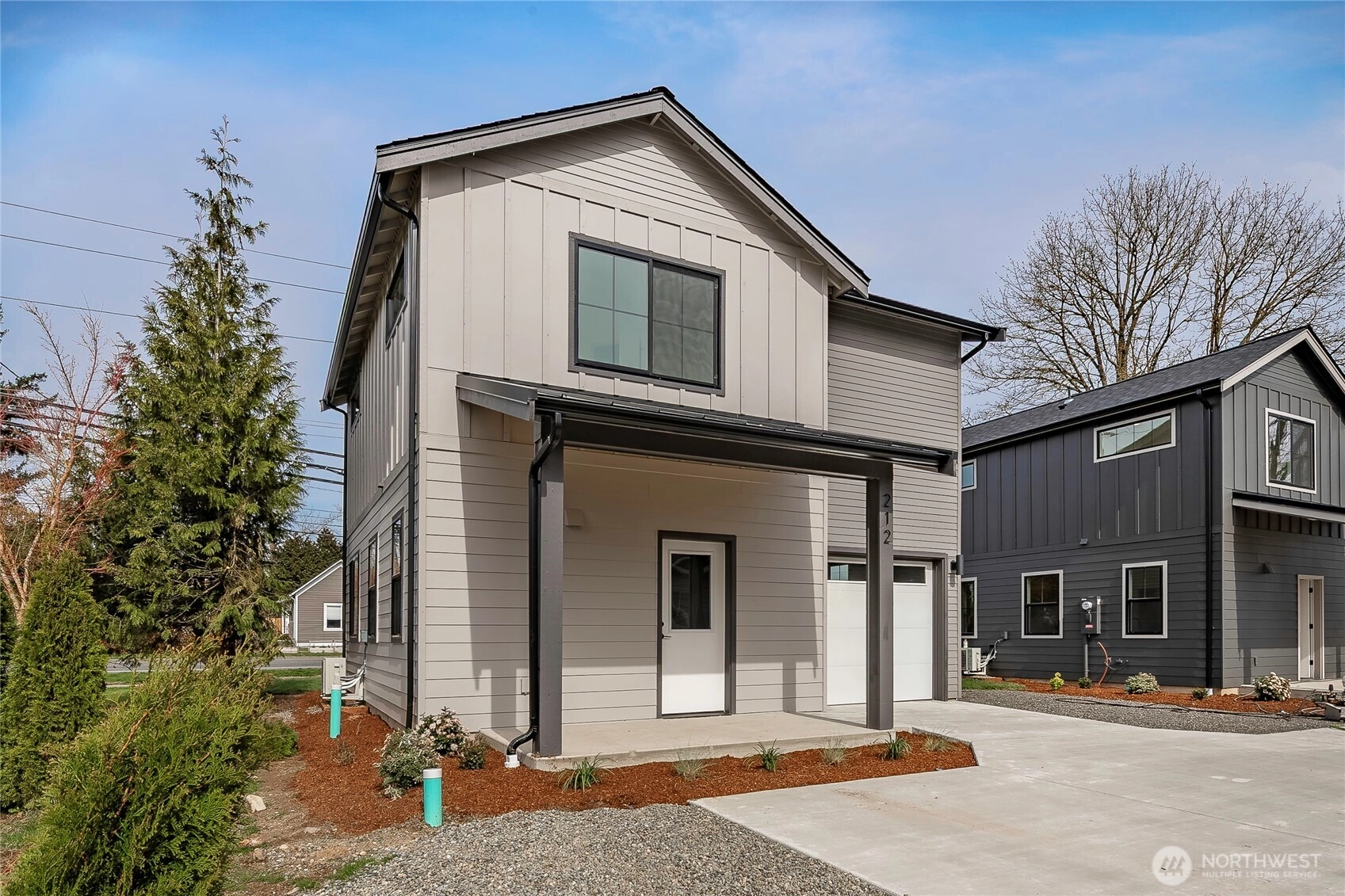 Why rent when you can own brand-new? TAKE ADVANTAGE OF THOUSANDS IN SELLER AND LENDER CREDITS!This opportunity could be what makes homeownership possible. Welcome to modern, low-maintenance living in the heart of Lynden. Located on Front Street and close to schools, shopping, restaurants, and all the charm that makes Lynden such a desirable place to live, this brand-new home offers both convenience and comfort. Designed with style and functionality in mind, the open layout features sleek modern finishes, beautiful cabinetry, durable luxury vinyl plank flooring, and A/C for year-round comfort. Large windows fill the home with natural light, creating a warm and inviting atmosphere. Built for lasting value, the home offers solid construction, a metal roof, and a private garage—providing both peace of mind and everyday practicality. With its thoughtful design, modern features, and unbeatable location, this home offers the perfect blend of affordability, style, and convenience. Stop renting and start investing in your future. Seller and lender credits available for qualified buyers. Inquire for details. This property is being offered for RESERVATION ONLY at this time. No binding purchase and sale agreement can be executed until the public offering statement is delivered, which is expected in April 2026. Please see supplements for explanation of reservation process. HOA information will be added when POS /HOA is complete. Picture of interior are of identical unit - 214 E Front St.