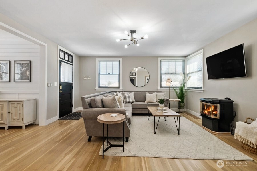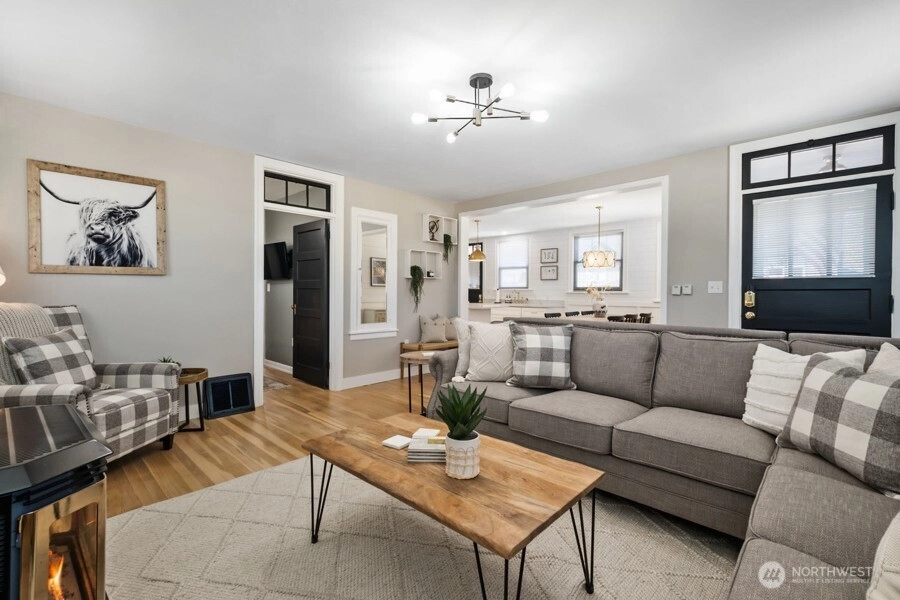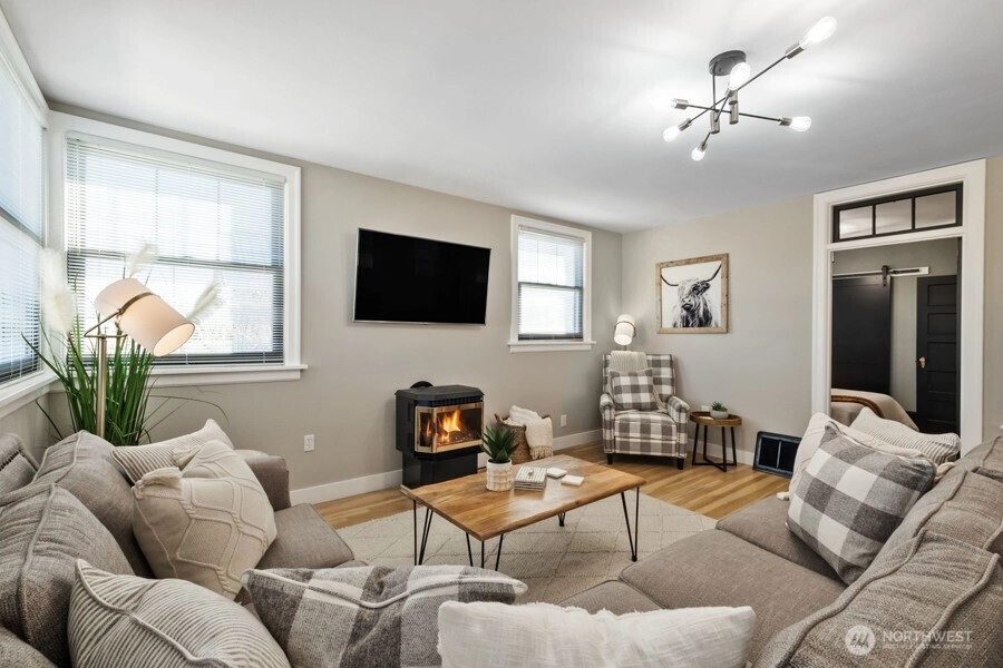 Offered fully furnished, turnkey opportunity! Welcome to this timeless, one-of-a-kind property in the heart of downtown Buckley. From the moment you step inside, you’re greeted by a spacious entry with soaring ceilings that flow effortlessly into expansive living and dining areas, complete with a cozy gas fireplace. This home beautifully blends historic charm with thoughtful updates. Original woodwork, detailed trim, hardwood floors, and vintage hardware showcase its character, while modern improvements — including updated electrical, new gas furnace, new water heater, newer roof, gutters, and windows — provide peace of mind. Washer and dryer hookups on both levels add everyday convenience. Zoned Mixed-Use, this property offers exceptional flexibility and income potential. Currently operating as a successful short-term rental, it’s already producing revenue — but the opportunities extend far beyond short-term rental income. The partially finished basement with exterior access opens the door to countless possibilities. Live upstairs and operate your business below. Lease one or both levels. Create the ultimate live/work space. Attached 3-car garage with ample parking space. Whether you're an investor, entrepreneur, or homeowner looking for versatility, the options here are truly endless.