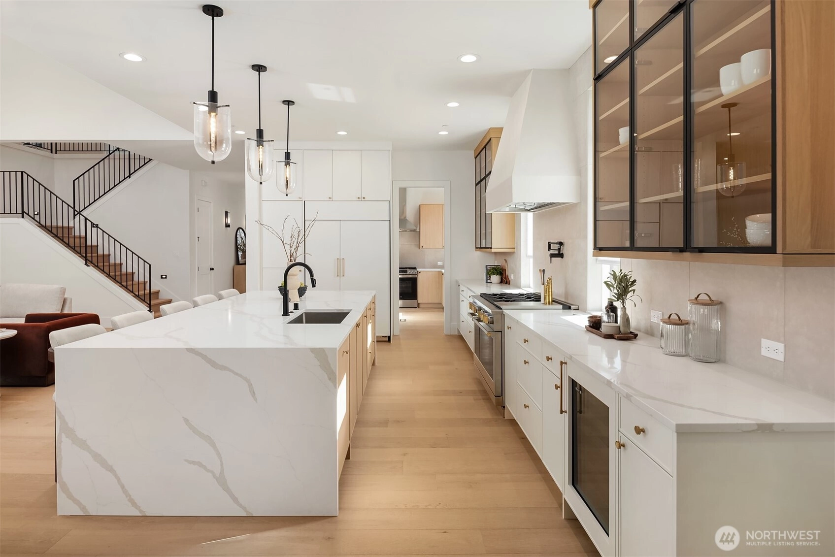 Stunning Bellevue new construction expertly crafted by renowned local builder A+R Homes. This signature residence is loaded w/every possible luxury amenity: 5+BRS, multiple guest suites, bonus rm, office – this incredible home has it all! The large great room w/soaring ceilings serves as the heartbeat of this captivating property offering sundrenched interior living spaces accented w/sophisticated designer finishes. The chef’s epicurean kitchen features a huge island perfect for daily gatherings & an adjacent butlers pantry w/full 2nd kitchen provides an amazing prep space for entertaining. Specifically designed to fit the unique needs of today’s luxury homebuyer, the effortless floorplan offers a large main floor BR w/ensuite bath, dedicated living space & separate entrance - perfect for a multi-generational living, executive home office or au pair quarters. The spacious upper level provides 4 additional BRs + bonus rm including a sumptuous primary suite w/luxurious 5-piece bath, huge walk-in closet & convenient auxiliary access to the laundry rm. Nestled on a massive 12,800+ SF lot, this exceptional residence boasts a huge fully fenced backyard w/striking outdoor fireplace & large covered patio perfect for hosting idyllic summer BBQs. Incredible location in the award-winning Bellevue School district, just blocks from Sherwood Forest Elementary & the top-rated Interlake High School, only mins from vibrant DT Bellevue shopping & dining, w/easy access to both SR-520 & I-405.