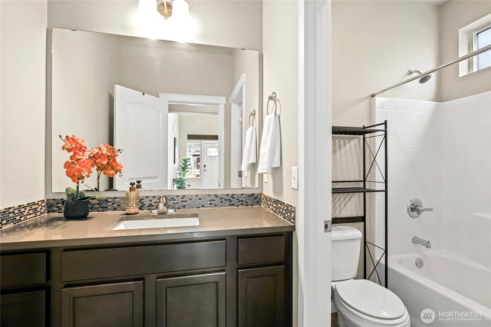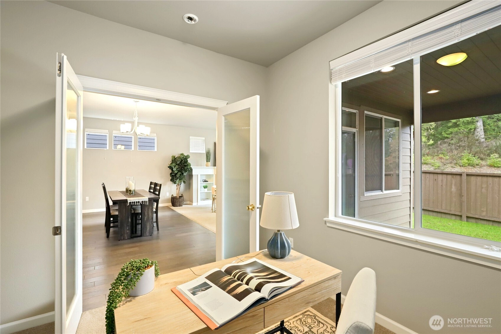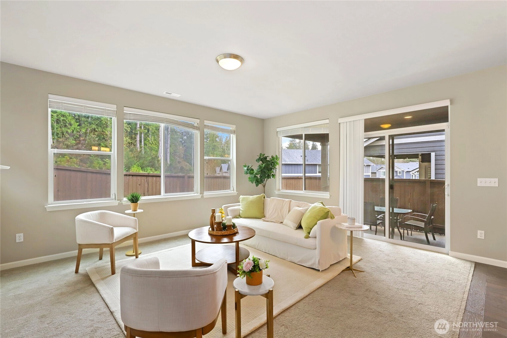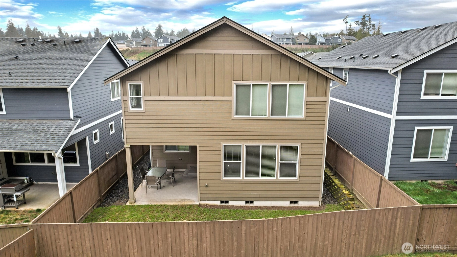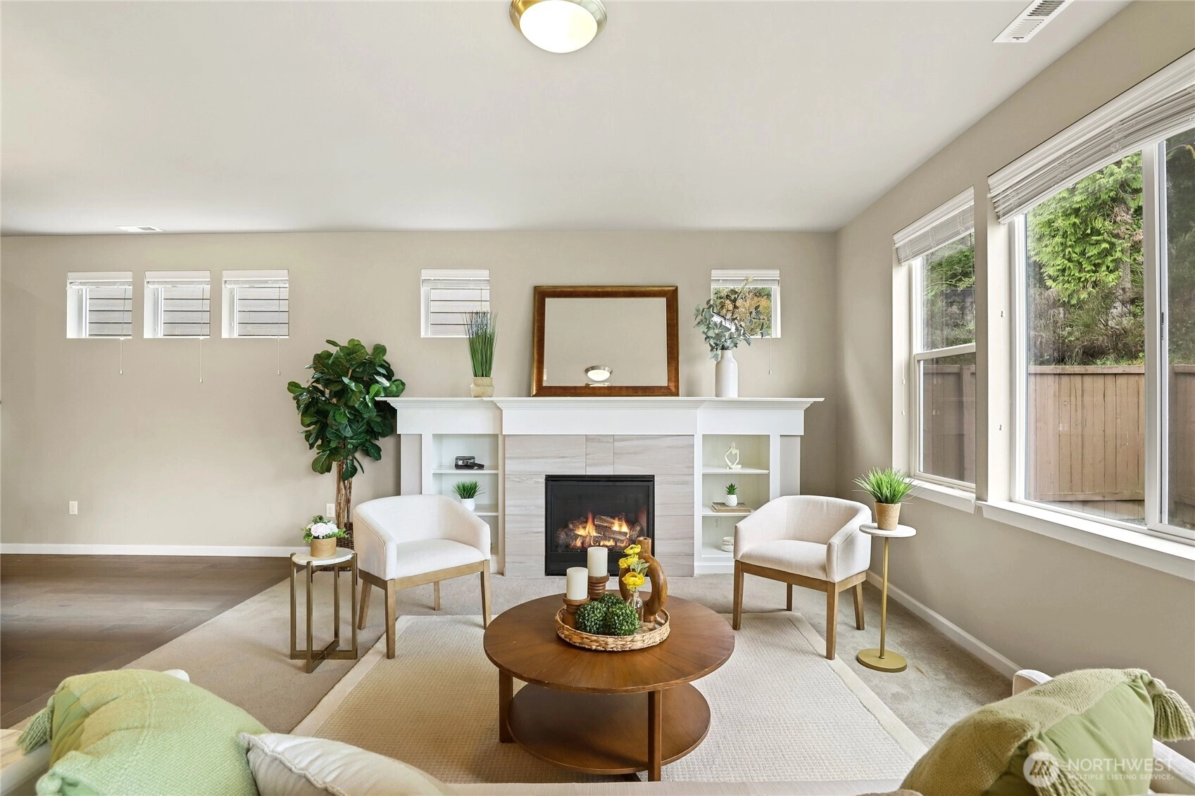 Discover refined living in Freestone at Bayside,where sophisticated design meets rare privacy in this exceptional two-story home.Boasting over 2,500 square feet, this stunning residence offers 4beds, 3baths and a versatile layout that balances grand entertaining with warm daily living.A dramatic vaulted entry fills the home with natural light & grandeur, opening to an expansive gathering room with a modern gas fireplace, mantle & custom built-in bookshelves—perfect for relaxing evenings and memorable gatherings.Adjacent a versatile den w/elegant glass-inlaid French doors offers a quiet retreat, perfect as a home office or flexible bonus space.The chef-inspired kitchen features stainless steel appliances, generous island, sleek quartz countertops, flowing hardwood floors, and crisp white trim for a bright, timeless appeal.Upstairs, four spacious bedrooms & a versatile loft provide flexible options for personal needs or hobbies. The luxurious primary suite offers a spa-like 5-piece bathroom sanctuary.Outside, a fully landscaped and fenced backyard with automatic sprinklers and a covered patio backs to a peaceful greenbelt with no rear neighbors—an increasingly rare find.This private setting is perfect for morning coffee, evening barbecues, or unwinding in nature. With generous space, a thoughtful floor plan, premium finishes and a serene greenbelt location,this home stands out in Freestone at Bayside.Opportunities like this are limited—don’t miss your chance to make it yours.