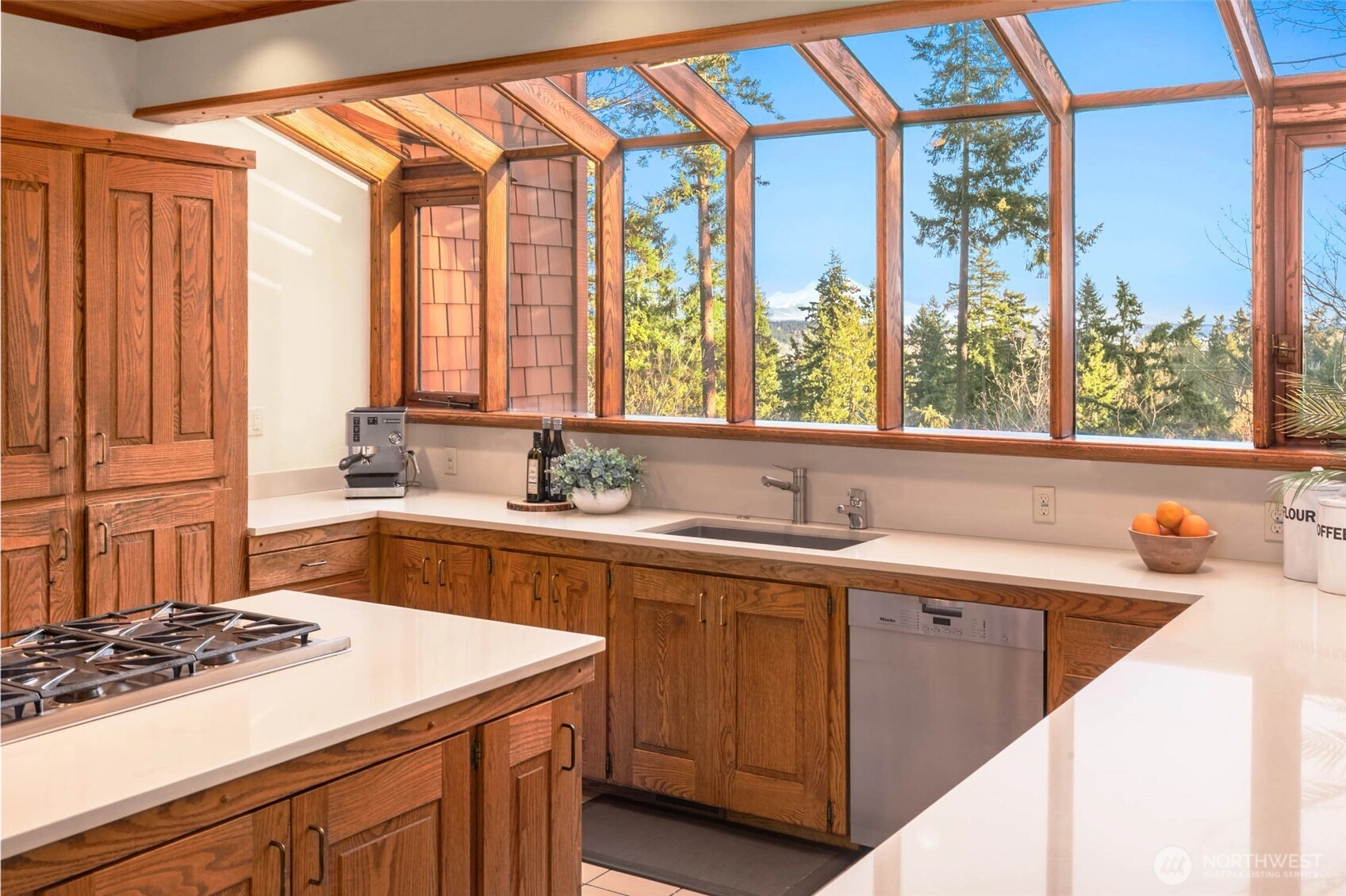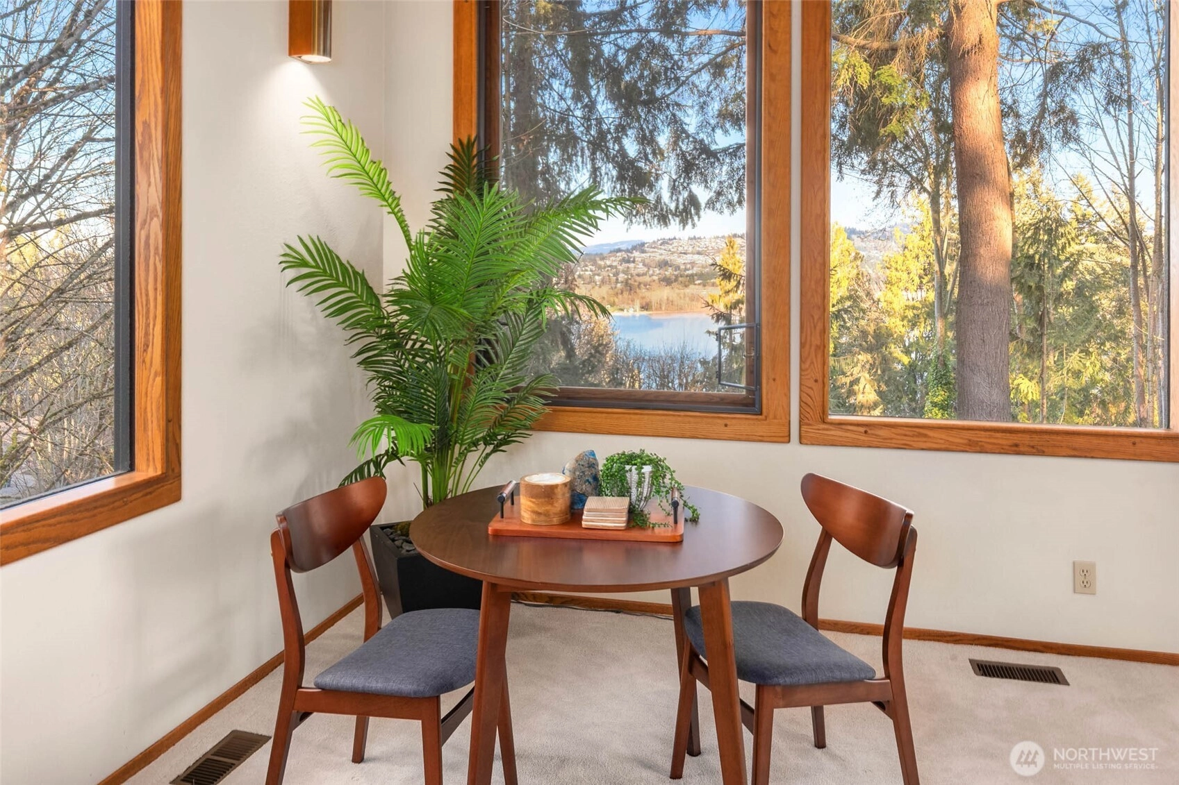 Designed for light, rooted in nature and touched by views of Lake Washington and Mt. Rainier. A true Northwest Contemporary, thoughtfully designed to bring the outdoors in and capture ever-changing natural light. Well-built and beautifully maintained, this home reflects the warmth and character of its surroundings. The main level showcases vaulted cedar-lined ceilings and a dramatic living room with lake views, creating a warm and inviting gathering space. The dining area connects seamlessly to the kitchen and expansive family room, designed for everyday living with built-in desks and effortless flow to oversized decks—perfect for entertaining or relaxing among greenery and filtered views. Also on the main level: a powder room, utility room, and two bedrooms with charming lofted bonus spaces, sharing a full hall bath. Upstairs, the vaulted primary suite offers a private retreat with an en suite bath, a loft-office, and large windows framing Mt. Rainier. The lower level expands functionality with 4th bedroom, ¾ bath, recreation room, sauna, and substantial storage. A spacious 3-car garage adds everyday convenience. Ideally located mid-island near Ellis Pond, the library, trails, and parks—this is a wonderful opportunity to experience Pacific Northwest living.