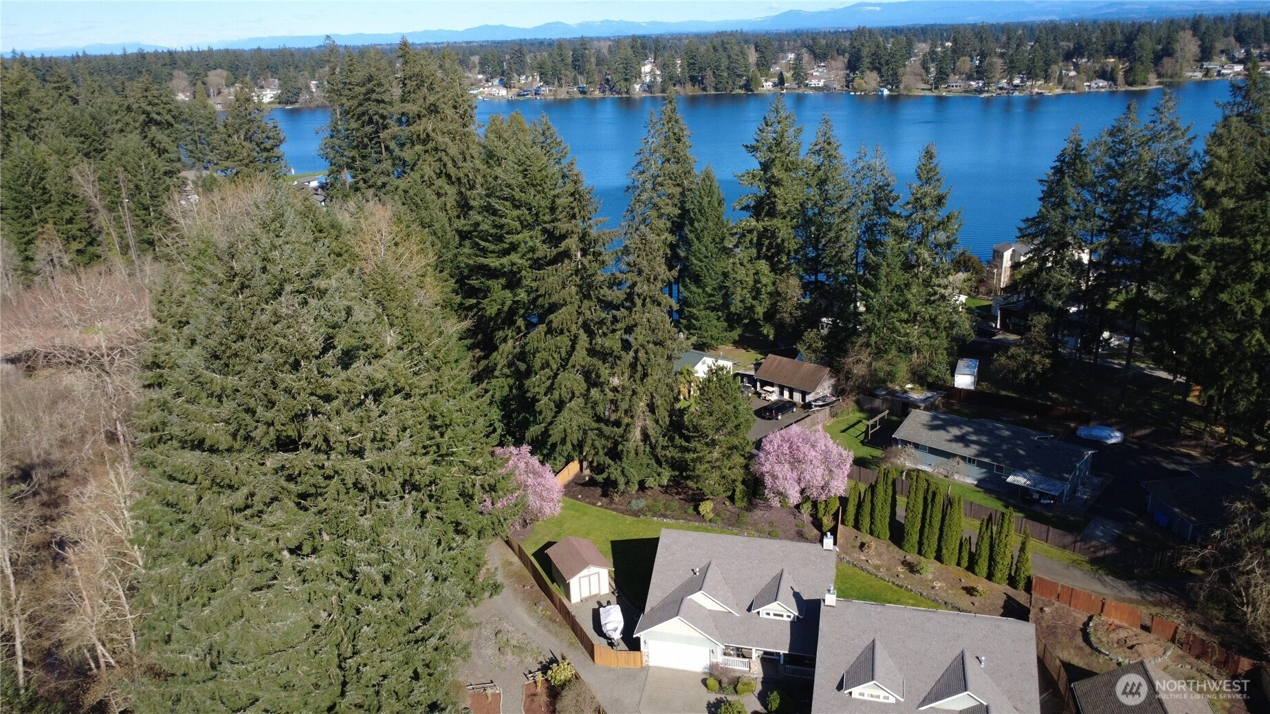 Beautifully maintained and well appointed Townhouse Style home with Deeded Spanaway Lake Access! Over 2,000 Sf Ft and Lives like a 1 Story. Huge Primary Bedroom is on the Main Floor With 5 Piece Bathroom and Walk In Closet.. Plus X-tra room on main Floor. Also Guest Bedroom and Full Bathroom Upstairs. This Home Features Deeded Access to Spanaway Lake Where you can Fish Year Round, Kayak or Build a Fire and Enjoy the Dock. From the Lake Area this home has one of the Most Incredible Views of MT Rainier on the Entire Lake. Situated on a Quiet, Serene Lake Cove Setting With Abundant Wildlife. (Bald Eagles, Ducks, Beavers, Otters, Osprey, Blue Herons ) This home has been Meticulously Maintained by Responsible Owners. It has Gas Heat, Gas Hot Water, And A/C! Soaring Ceilings and A Great Open Layout. It is Fully Fenced with Parklike Landscaping, Sprinkler System And Huge Patio. Custom Built 12' X 16' Shed. Boat , Trailer or Toy Parking Inside Gated Yard. Home Owner dues cover Exterior, Roofs, Front Lawns and Home Insurance. Move In Ready And All Appliances Stay! Close to to JBLM!
