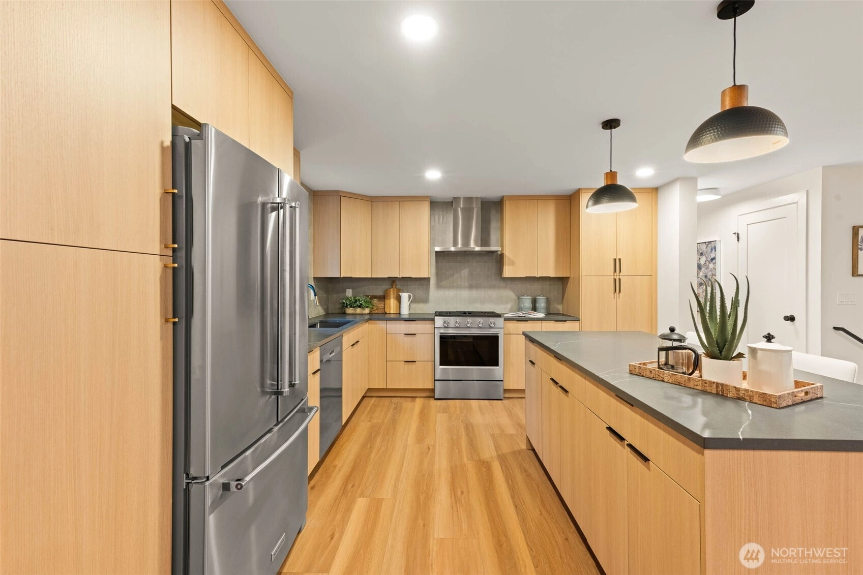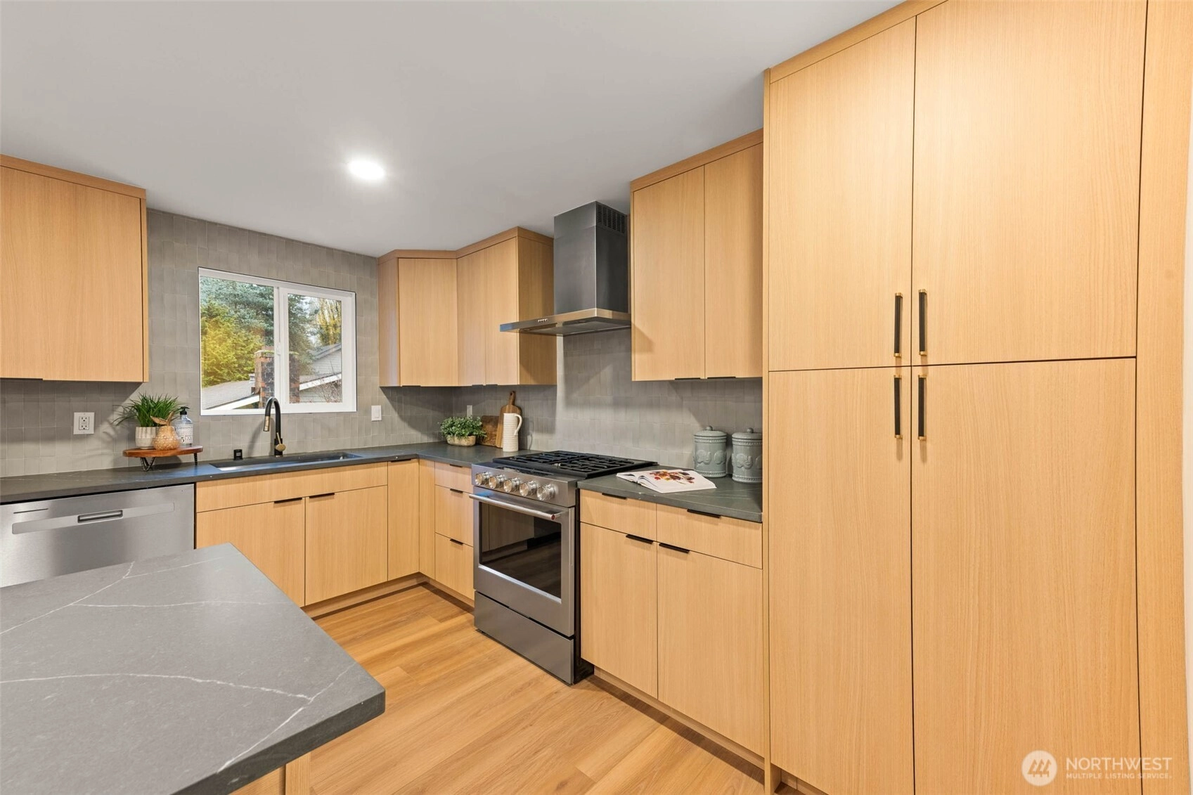 Updated & chic Wedgwood home on a quiet street with abundant outdoor spaces and fresh updates throughout. Inside, modern touches elevate both style and function. Open living room with fireplace flows seamlessly into a sleek new kitchen with modern cabinets, rich counters, and stainless steel appliances. Adjoining dining opens to an expansive deck—ideal for entertaining and indoor-outdoor living. Primary retreat offers a brand new luxe 3/4 ensuite with designer finishes and a walk-in closet with built-ins. With two additional bedrooms on the same level and a completely updated full bathroom, this home provides the ideal layout. Lower level adds flexibility with an expansive airy bonus room, fourth bedroom and large laundry room with ample storage plus patio access. New doors, trim, flooring, finishes, fixtures, mini splits and much more—fully permitted! Minutes to downtown, premier schools, parks, and everyday amenities. A thoughtfully updated home that balances style, function and location—ready to welcome you home!