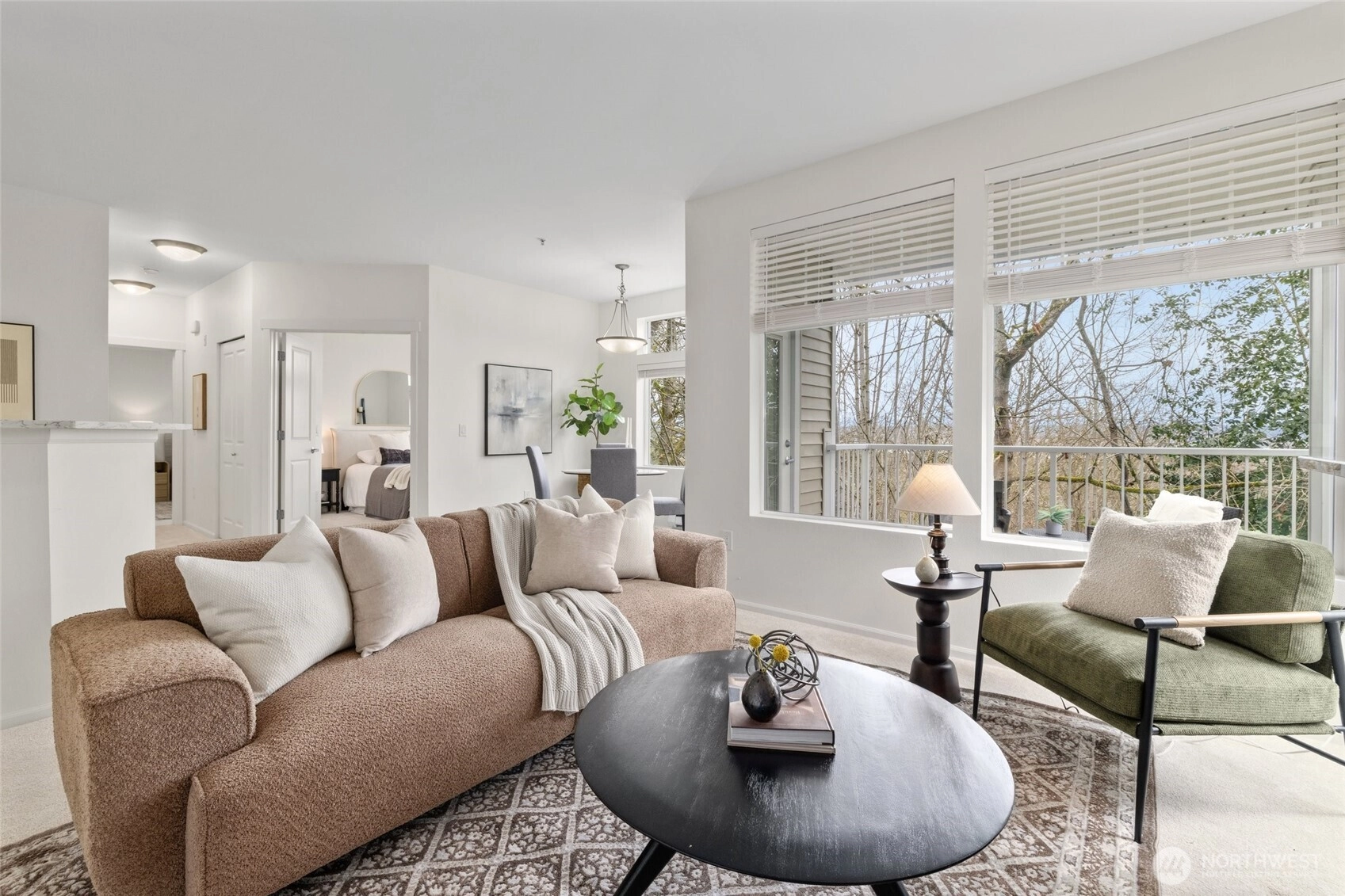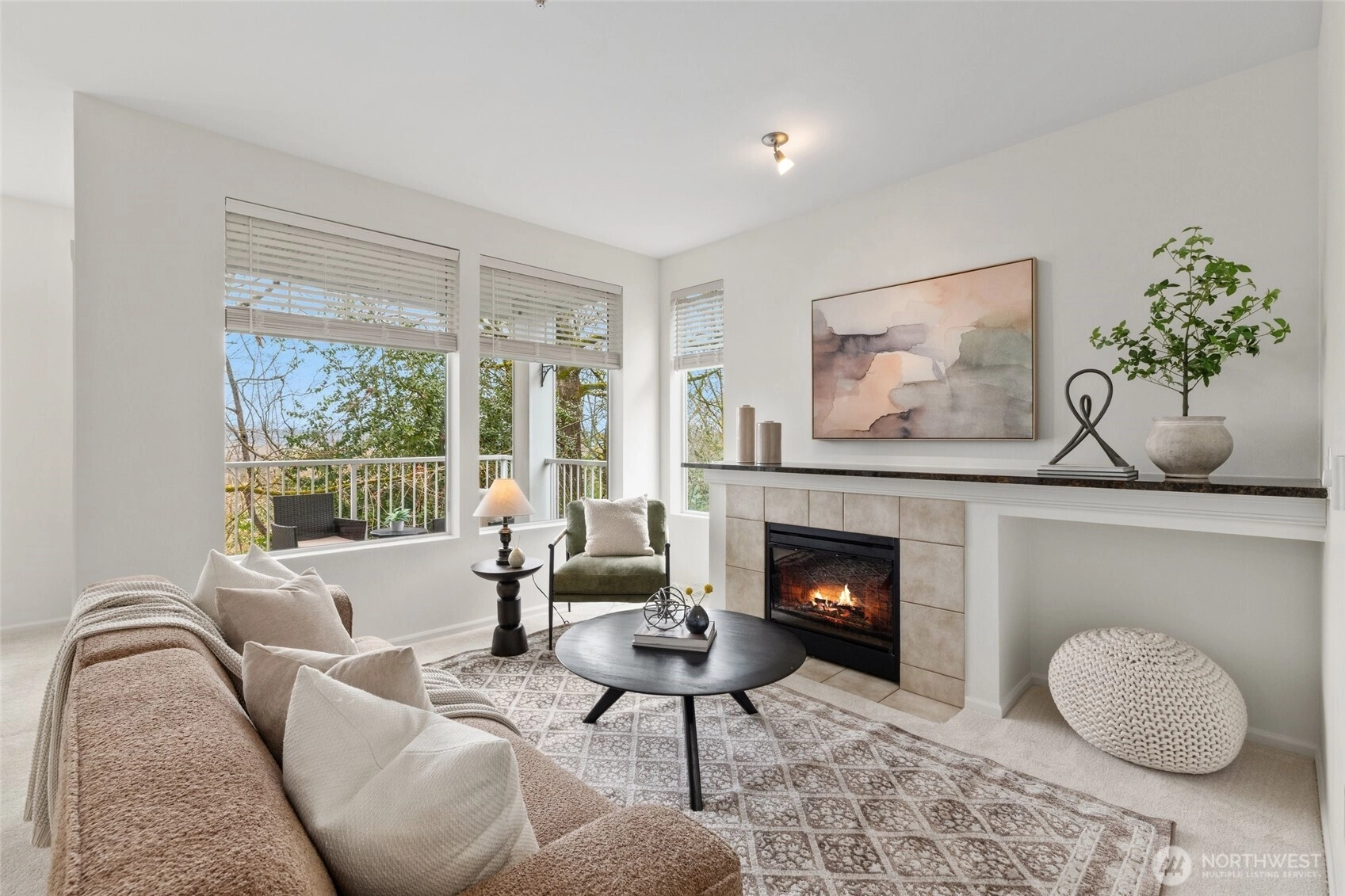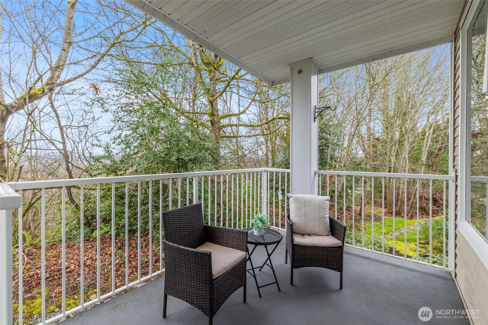 Welcome to this bright end-unit with peaceful views of the expansive greenbelt and valley. This impeccable home will captivate you as soon as you enter. Freshly painted, brand new floors, large windows w/ new blinds thoughout, smart Kitchen with quarz counters & SS appliances and wonderful breaksfast bar. Lrg open living room w/ cozy fireplace & long decorative granite mantle. Seperate dinning space w/ views to treed green space opens to private deck . French doors open onto the 2nd bedrm spaciou enough to combine it as office. Large primary suite w. tranquile views, upgraded double vanity, quartz counters and soaking bathtub. Access your home through your own private garage or around the building to the right. NO STEPS! Convenient Location:near SeaTac, major highways, light rail & shopping. Urban convenience w/ peaceful surroundings! PLUS no rental cap! New roof as of summer 2025! Seller to credit buyer $3,000.00 towards closing costs!