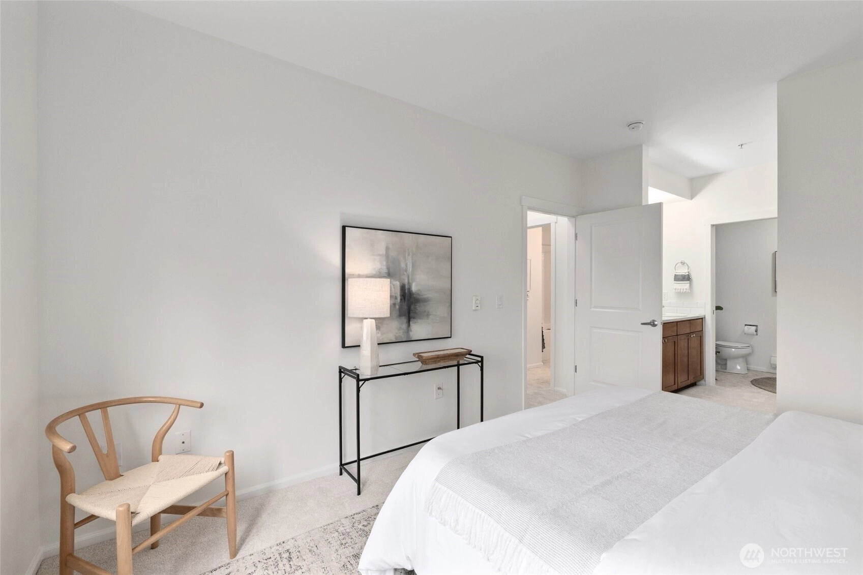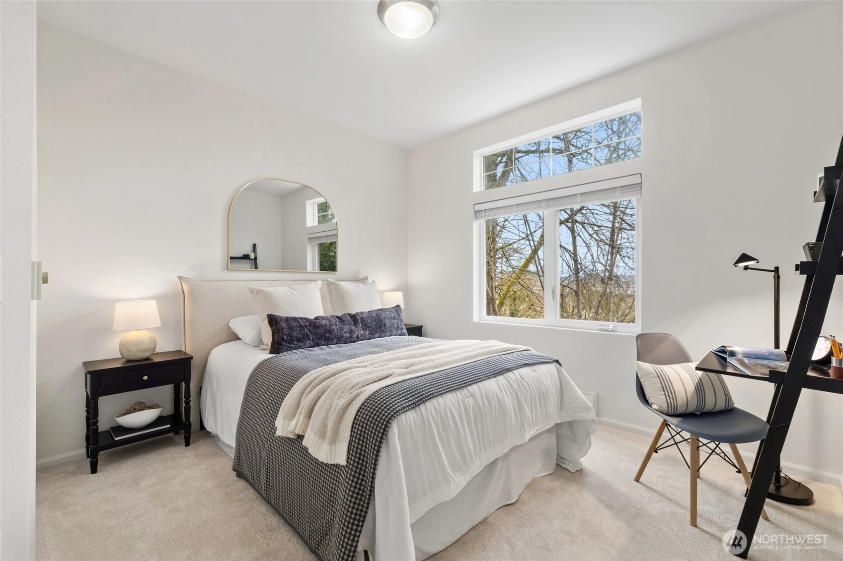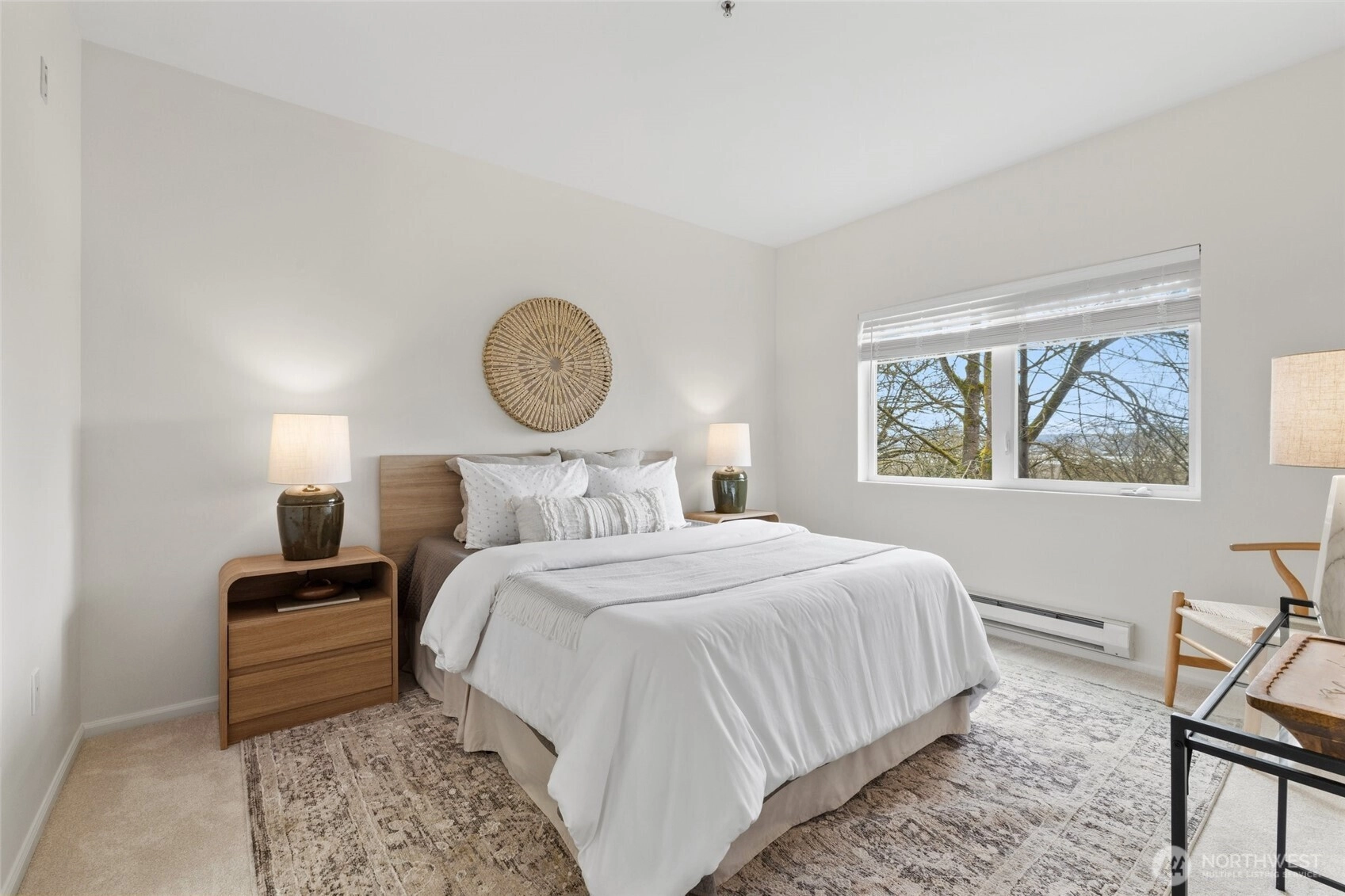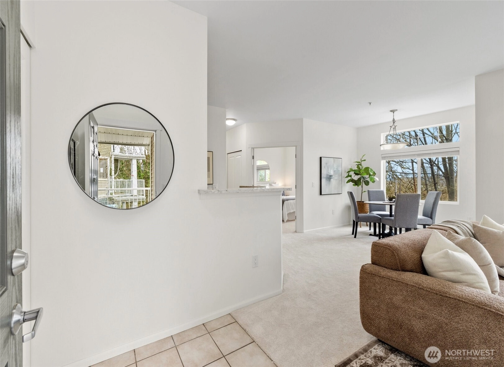 Welcome to this bright end-unit with peaceful views of the expansive greenbelt and valley. This impeccable home will captivate you as soon as you enter. Freshly painted, brand new floors, large windows w/ new blinds thoughout, smart Kitchen with quarz counters & SS appliances and wonderful breaksfast bar. Lrg open living room w/ cozy fireplace & long decorative granite mantle. Seperate dinning space w/ views to treed green space opens to private deck . French doors open onto the 2nd bedrm spaciou enough to combine it as office. Large primary suite w. tranquile views, upgraded double vanity, quartz counters and soaking bathtub. Access your home through your own private garage or around the building to the right. NO STEPS! Convenient Location:near SeaTac, major highways, light rail & shopping. Urban convenience w/ peaceful surroundings! PLUS no rental cap! New roof as of summer 2025! Seller to credit buyer $3,000.00 towards closing costs!