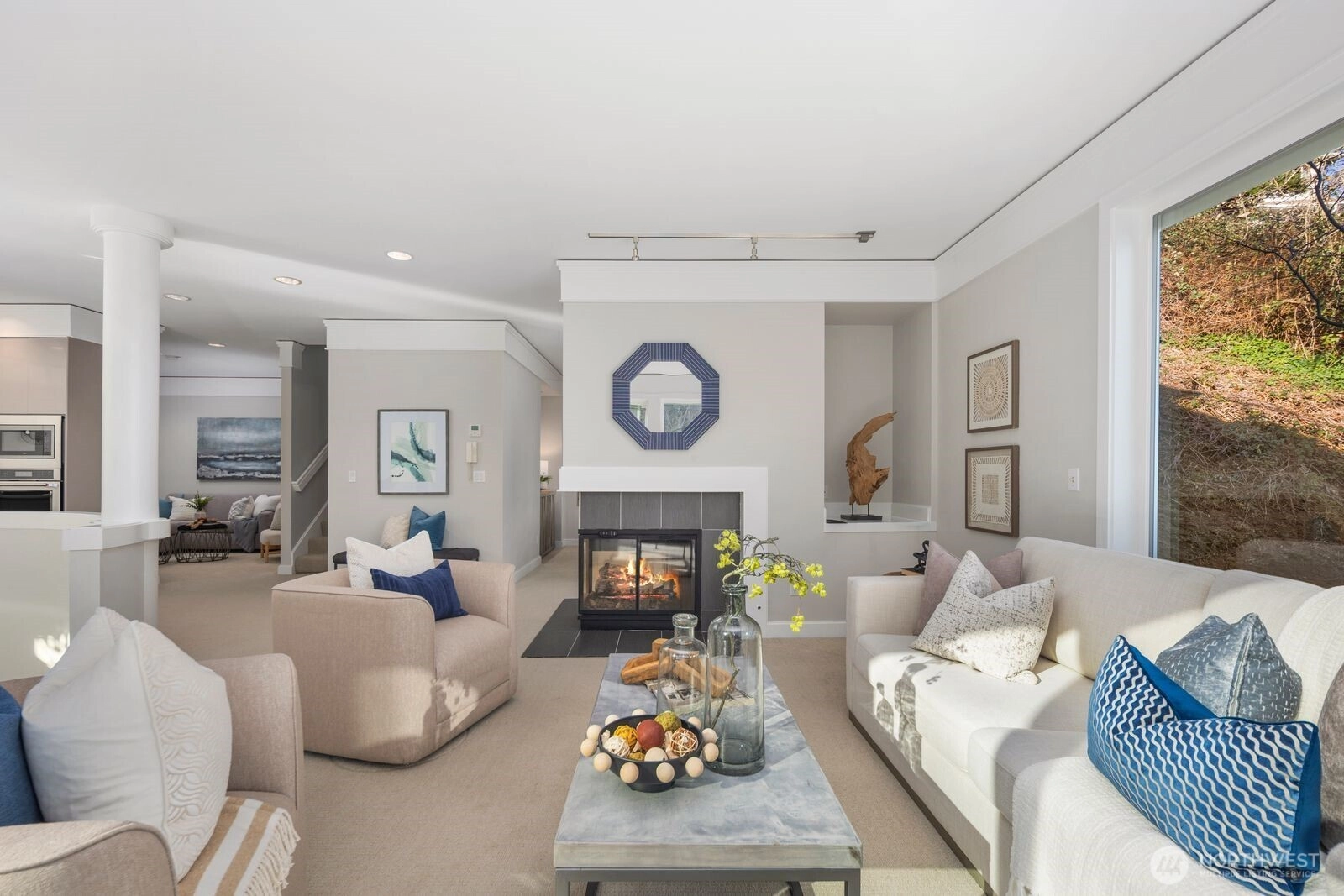 Stunning 3,337 SF modern Art Deco home with 4 bedrooms and 2.5 baths, showcasing sweeping views of downtown Seattle, Puget Sound, and the Cascade Mountains. Light-filled living spaces feature floor-to-ceiling windows, new Milgard windows, custom blinds, fresh interior paint throughout, and gas fireplaces. Thoughtful upgrades include new A/C, electrical panel, water heater, Sub-Zero refrigerator, kitchen backsplash, fiber-optic internet, rooftop safety railing, and many more. Enjoy multiple private decks, a relaxing rooftop deck view, two-car garage, and a luxurious five-piece primary suite. Unbeatable location just around the corner from Alki Beach and the water taxi to downtown Seattle. A rare blend of design, views, and lifestyle!