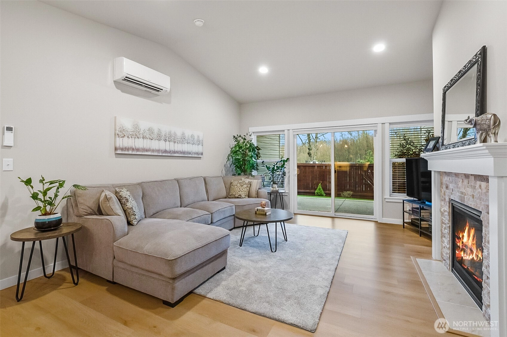 Welcome to Brickyard Park, a vibrant newer 55+ community designed for comfort and easy living. (16 homes can be purchased by under 55 year olds and the park is currently at 3 right now.) This beautifully single-story townhome offers 3 bedrooms and 1.75 bathrooms and amenities throughout. Step into the inviting vaulted great room, complete with a cozy gas fireplace—perfect for relaxing or entertaining. The kitchen is both stylish and functional, with dark wood cabinetry, quartz countertops, a gas range, dishwasher, and range hood. The spacious primary suite features a vaulted ceiling, walk-in closet, and an ensuite bath with quartz counters. You’ll also enjoy luxury vinyl plank flooring, carpet, tile bathroom floors, and comfort-height toilets for added convenience. Ductless mini-splits throughout the home offer A/C to keep you cool during the summers. All appliances stay with the home. Built with comfort in mind, the garage and interior walls are insulated for sound. The home includes a single-car garage and a covered rear patio with a gas hookup—ideal for outdoor gatherings. Enjoy low-maintenance living with the HOA handling yard care, irrigation, and fencing (owned and maintained by HOA). Community amenities are fantastic, including a clubhouse for gatherings and events, nearly one-acre park with a walking trail, pickleball court, horseshoe pits, and bocce ball. This is easy, modern living in a welcoming community, don’t miss your opportunity to call Brickyard Park home.