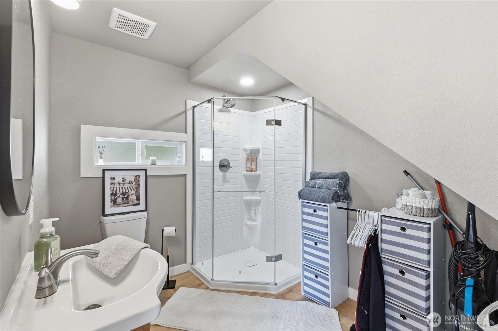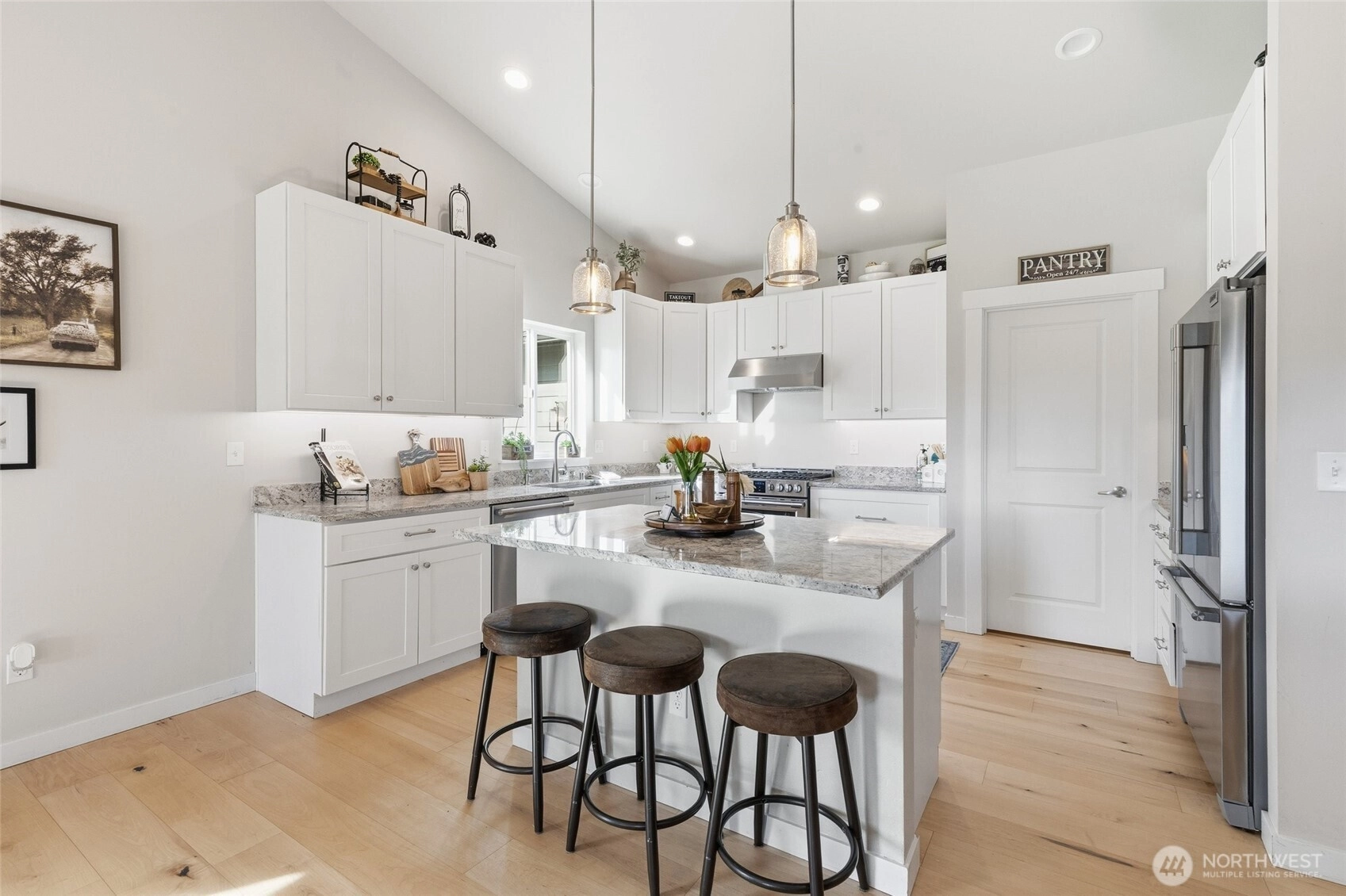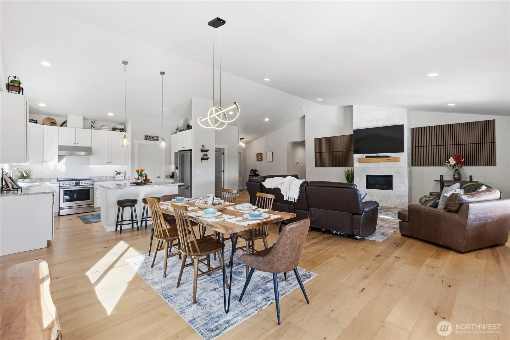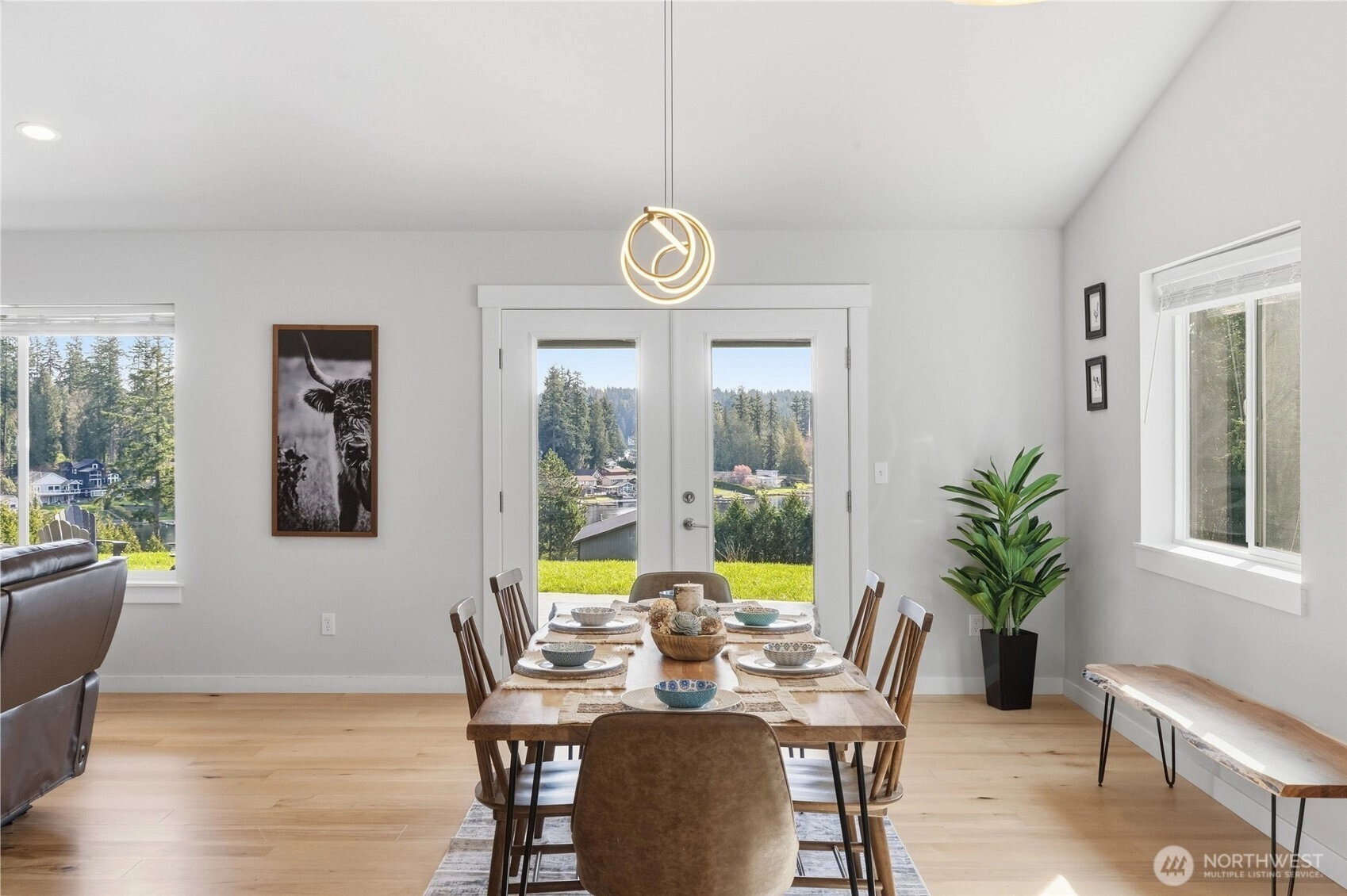 Experience the best of Pacific Northwest living on just shy of 5 private acres with breathtaking views of the Cascade Mountains and Lake Shoecraft. This single-level home offers the perfect blend of comfort, space, and lifestyle—ideal for those seeking privacy while still enjoying room for hobbies, animals, and outdoor living. Inside, you’ll find vaulted ceilings, beautiful maple engineered hardwood floors, a stunning marble fireplace that creates a warm and inviting atmosphere. Step outside to an expansive covered stamped concrete deck complete with a built-in fire pit—perfect for taking in the incredible views year-round. The property is fully equipped for a variety of uses, featuring a massive 40x50 shop w/ RV/boat bay, fenced areas for livestock w/shelter, a chicken coop. A fully paved driveway & mature landscaping add to the ease and appeal of the property. An adorable, fully furnished 1 bed/1 bath tiny home offers excellent flexibility as a guest retreat, MIL suite, or ADU, complete with its own deck and stunning lake views. Additional features include an attached 3-car garage plus an additional 2-car garage, a storage shed, fully wired generator, and a new high-end Mitsubishi high-efficiency HVAC system. Enjoy the incredible covered stamped concrete deck perfect for taking in morning sunrises or relaxing by the firepit in the evening. Conveniently located just 10 minutes from I-5, this is a rare opportunity that provides space, views, privacy, & endless possibilities.