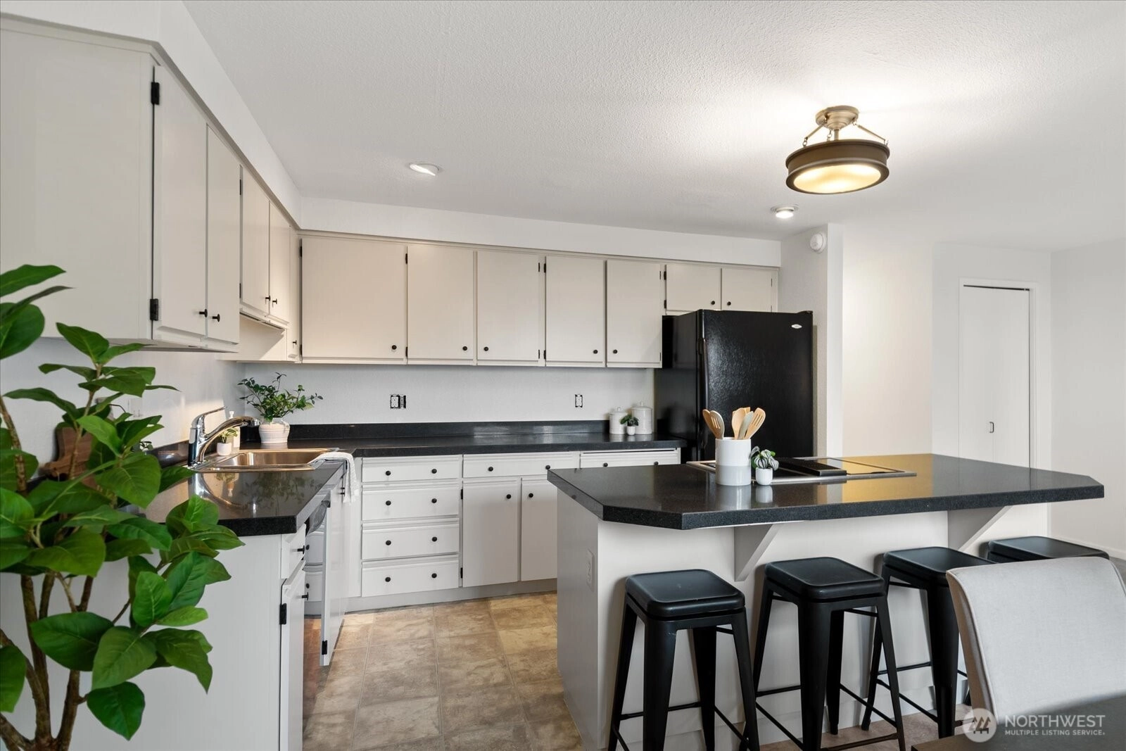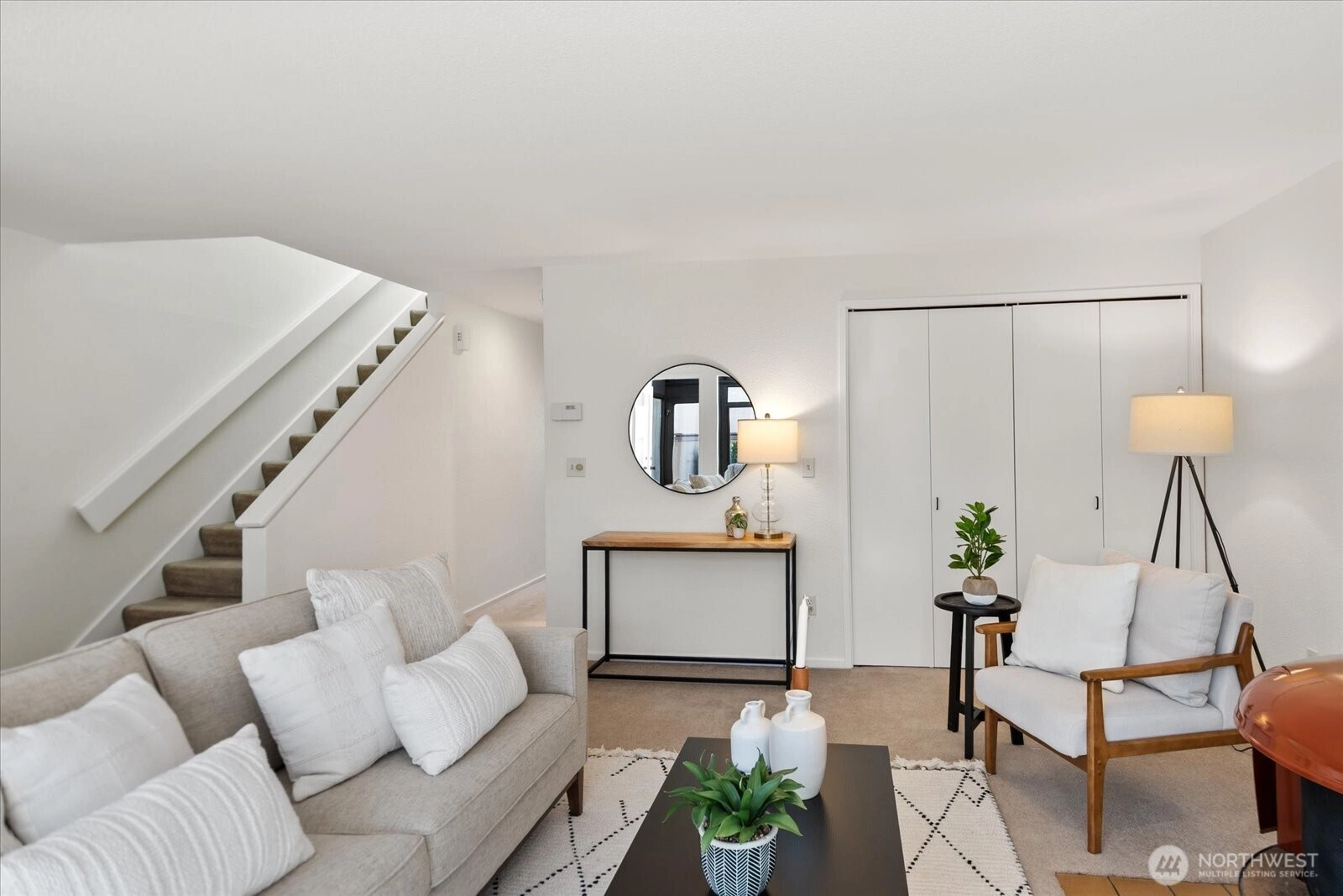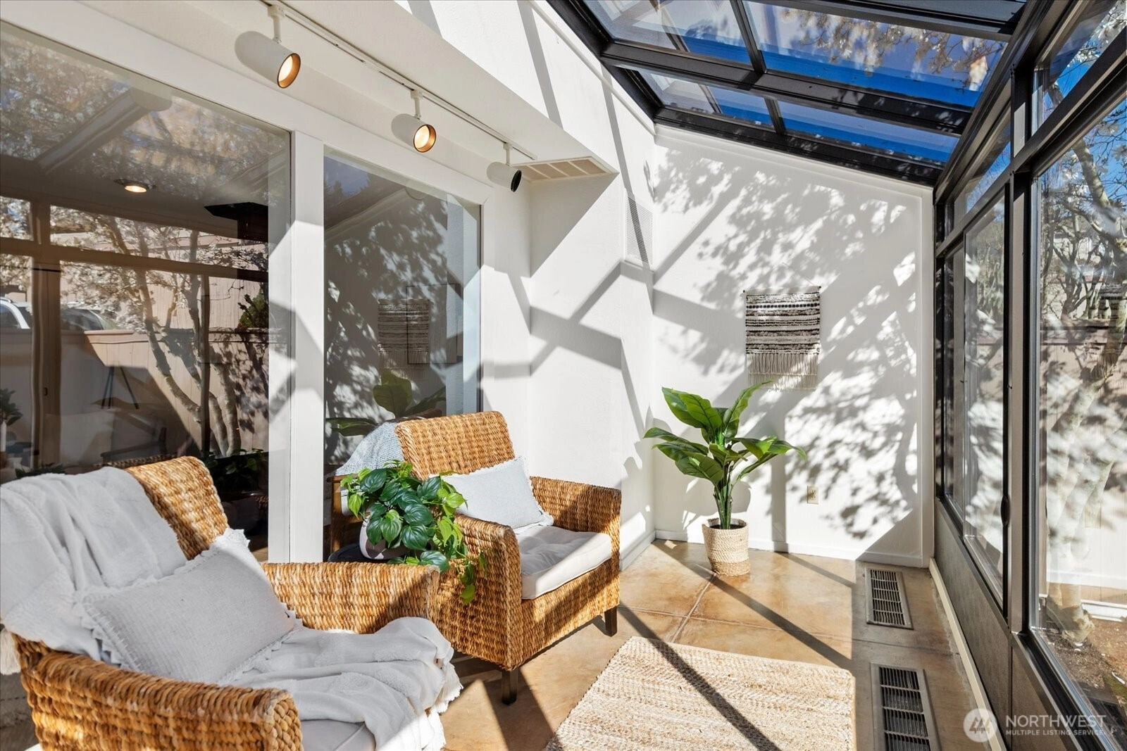 Welcome to this spacious Solaire One townhome in Edmonds' popular Five Corners neighborhood! Set off the street in the back of the complex, this bright and inviting 2 bed, 1.5 bath townhome lives like a single family home. Just blocks to popular restaurants, cozy coffee shops, top-rated Edmonds School District schools & Swedish hospital, this location offers the perfect blend of convenience and community. Only a quick five-minute drive West brings you to vibrant downtown Edmonds & the sparkling waterfront. Inside, enjoy a light-filled sunroom with access to a private patio & garden space, a spacious living room, and an open-concept kitchen with adjacent dining area and generous pantry/storage. Main level powder bath adds convenience. Relax or entertain on the fenced back deck—your own serene outdoor retreat! Upstairs features a large primary suite with private balcony, desk nook, and oversized closet. One other large bedroom and full bath, plus in-unit laundry for easy living. One car garage and one assigned parking space. Pets allowed up to 40 lbs. Investor opportunity as it is under the rental cap. Pre-inspected for your peace of mind. Prime commuter location with quick access to freeways, Light Rail, bus lines and Sounder train. Amazing value!