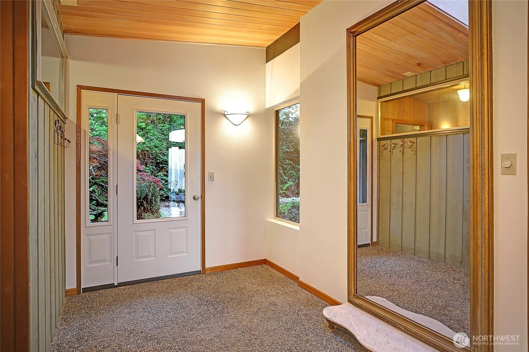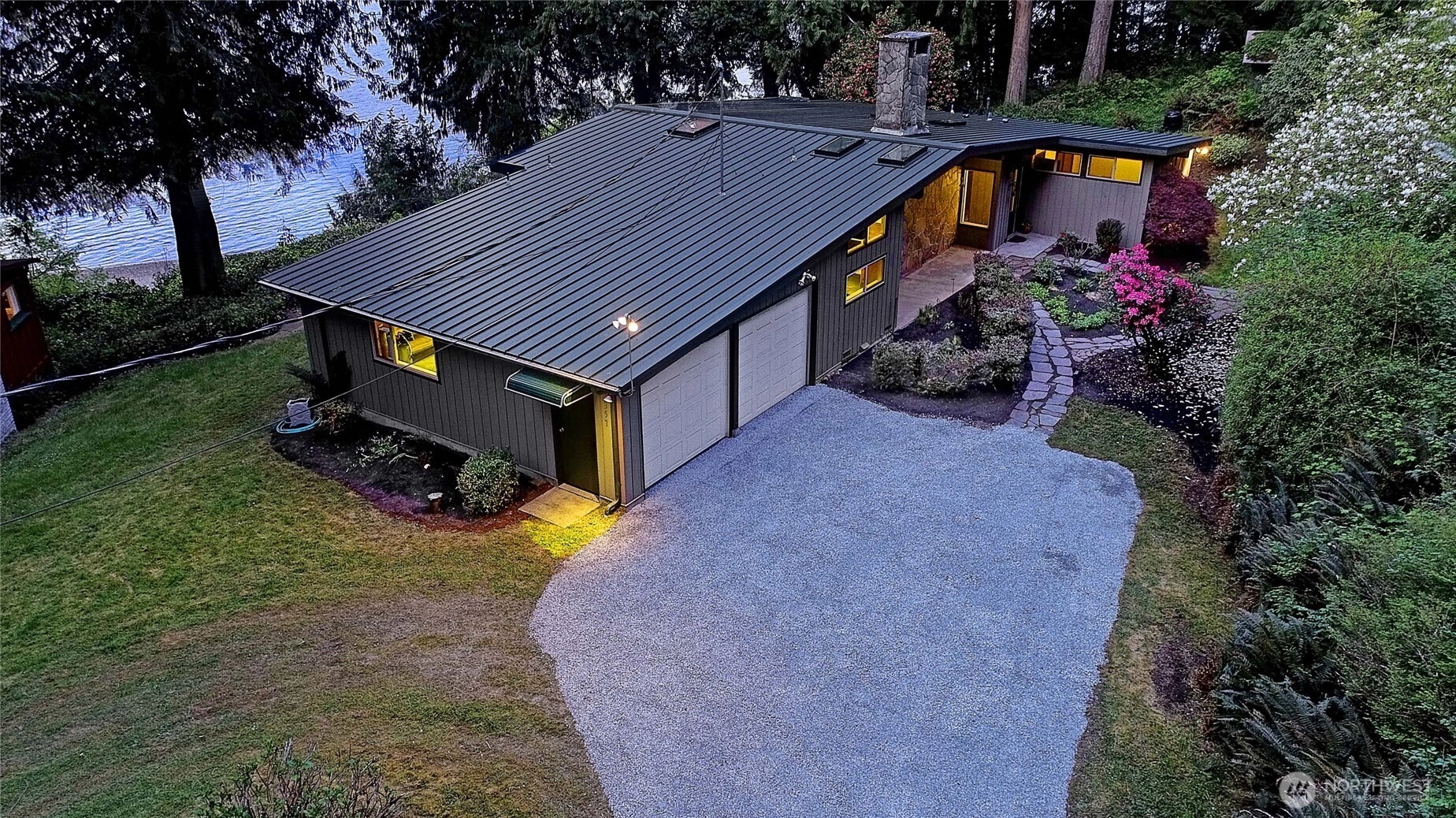 This mid-century modern retreat sits on a rare double lot at the water’s edge, offering 200 feet of private, medium-bank waterfront with exceptionally easy access to your own PRIVATE sandy beach. Designed to frame the surrounding natural beauty, the home captures sweeping mountain and sound views from nearly every room through expansive windows, creating a seamless connection between indoor comfort and the outdoors. Set on more than 6 acres, the property delivers a remarkable sense of privacy and space. Mature landscaping surrounds the home, enhancing the feeling of seclusion while keeping the shoreline just steps away. An immaculate 608 sq ft fully equipped cabin provides ideal overflow accommodations or a peaceful guest hideaway. Open living spaces flow effortlessly to expansive outdoor areas, including a generous patio perfect for gathering around the fire and taking in the ever-changing coastal scenery. Whether you’re whale watching, beachcombing, kayaking, or birding, the best of island living unfolds right in your backyard. A rare combination of modern design, acreage, and truly effortless beach access—this is a waterfront lifestyle that’s hard to match.