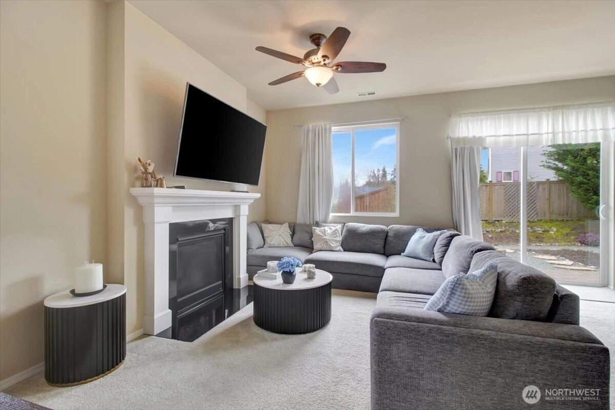 1 YEAR HOME WARRANTY PROVIDED! Nestled in the heart of the sought-after Skagit Highlands neighborhood, this stunning home offers a perfect mix of modern comfort and PNW beauty. From the moment you arrive, the curb appeal is matched only by the breathtaking front-yard views of Mount Baker towering in the distance. Step inside to find a light-filled, open-concept main floor w/durable & stylish luxury vinyl plank flooring that flows seamlessly through the living areas. The heart of the home centers around a spacious kitchen with stainless steel appliances and ample counter space, perfectly positioned for entertaining. You'll love the huge dining room & cozy fireplace. Practicality meets design with a dedicated mudroom located just off the garage, providing the ideal transition space to keep the home organized. The second floor is a true retreat, featuring a family room that separates the primary suite from the other 2 bedrooms. In the primary suite you'll find a gorgeous 5-piece bath and a huge walk-in closet. Enjoy crisp comfort in the summer with air conditioning! You'll love the fully fenced and low maintenance backyard, where you can host gatherings against a serene backdrop of the Cascade foothills. The vibrant neighborhood beckons with scenic walking trails, community parks and playgrounds. This is more than just a house; it is the gateway to the best of Mount Vernon living.